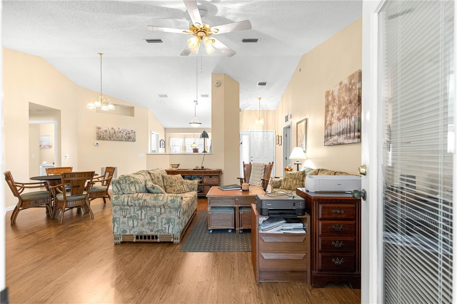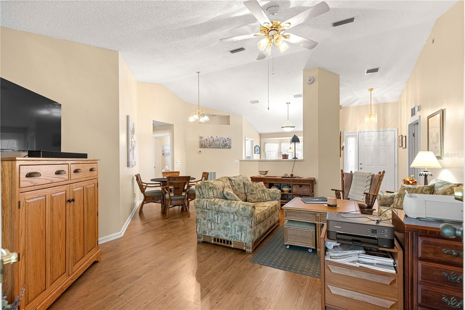 - Ceiling Fan(s), Eat-in Kitchen, Living/Dining Room, Main Level Primary, Thermostat, Walk-In Closet(s)