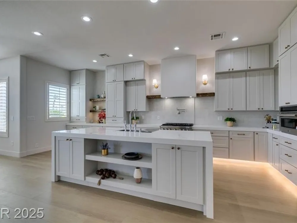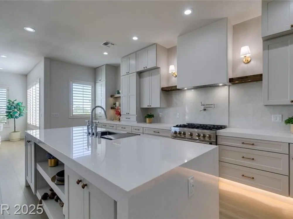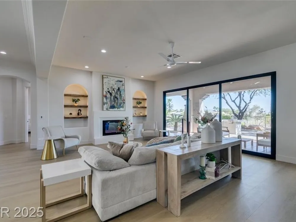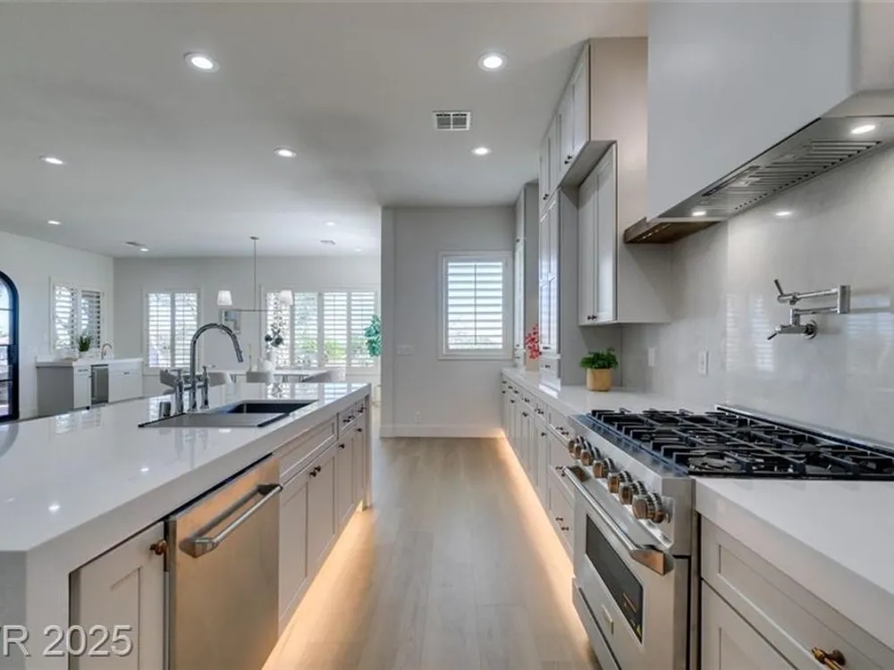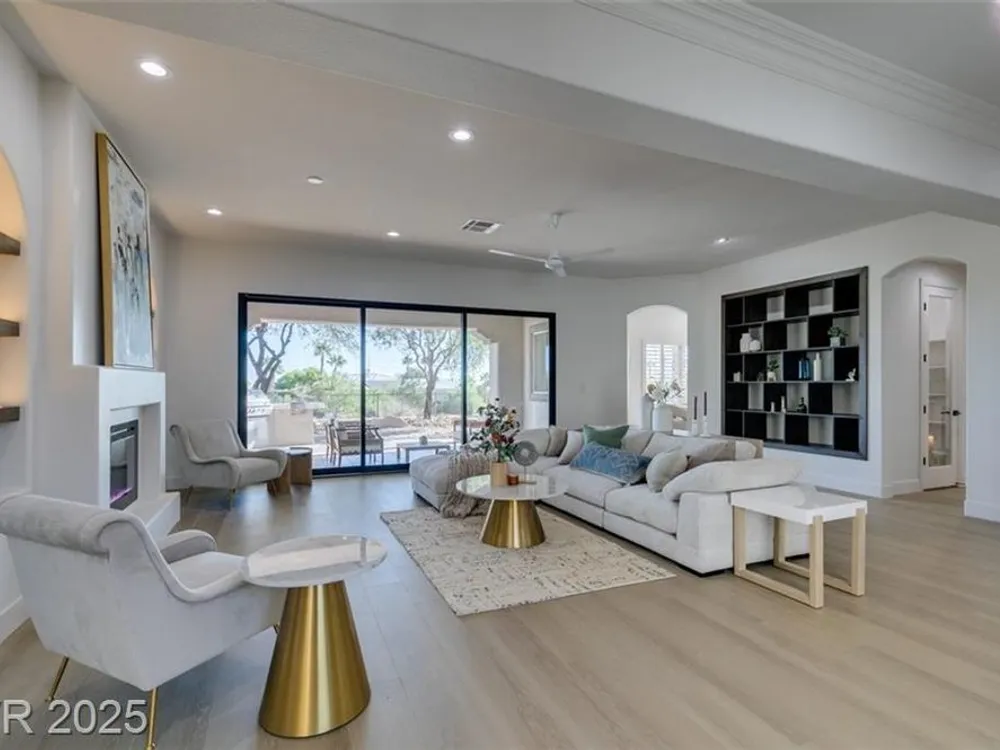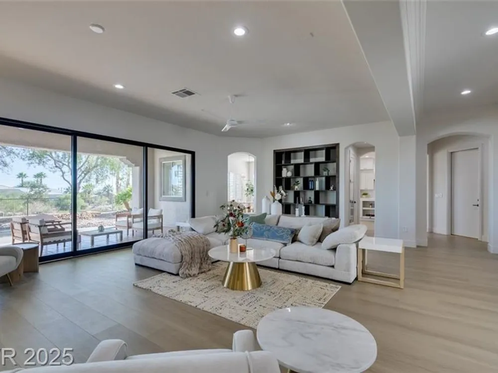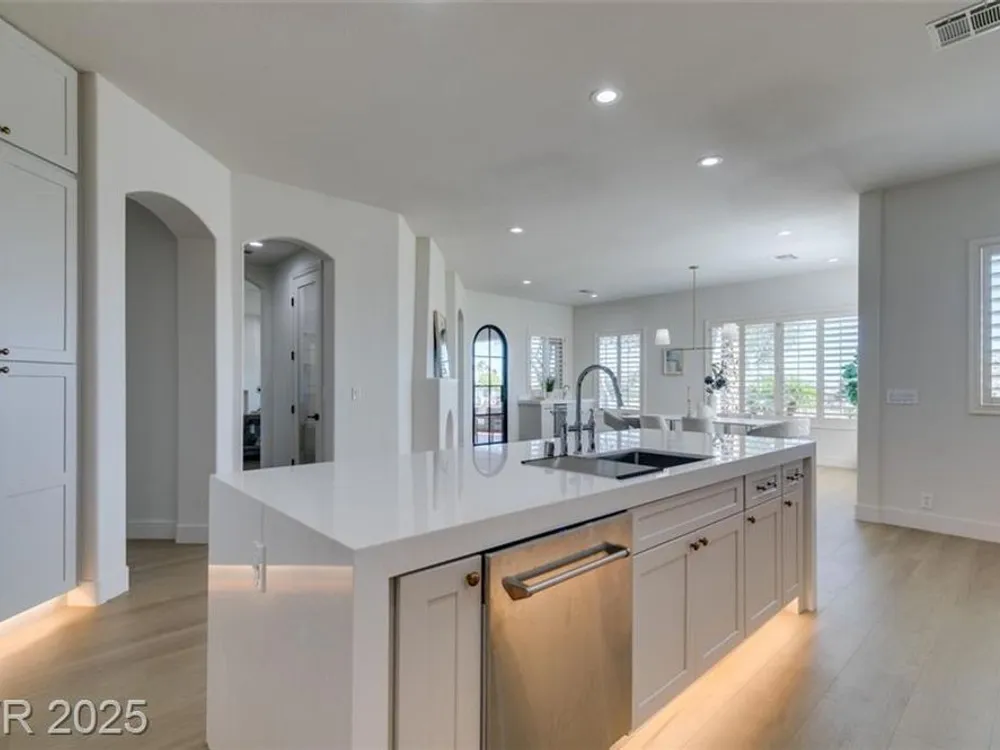 BEAUTIFUL, FULLY RENOVATED HOME IN SIENA, NESTLED IN THE GUARD GATED COMMUNITY IN SUMMERLIN. ONE OF A KIND LOT OVERLOOKING THE 15TH HOLE TEE BOX AND WATER VIEWS. THIS CAPTIVATING SINGLE STORY RESIDENCE HAS UNDERGONE A COMPREHENSIVE TOP-TO-BOTTOM REMODEL, SHOWCASING A FLAWLESS TURNKEY DESIGN. BOASTING 3 BEDROOMS, 3 BATHROOMS, A 3-CAR GARAGE, AND SPANNING 2,994 SQFT, THIS HOME IS A TRUE GEM. IMMERSE YOURSELF IN THE ALLURE OF BRAND-NEW FEATURES, INCLUDING A FRESH INTERIOR & EXTERIOR PAINT, 15' CUSTOM SLIDER, ELEGANT QUARTZ & NATURAL STONE COUNTERTOPS, AN IMPRESSIVE 6' FRONT PIVOT DOOR, CUSTOM SHAKER CABINETRY, 5" SQUARE BASEBOARDS, STATE-OF-THE-ART STAINLESS STEEL KITCHEN APPLIANCES, WOOD-LOOK LUXURY VINYL FLOORING, AND CONTEMPORARY LIGHTING AND PLUMBING FIXTURES.