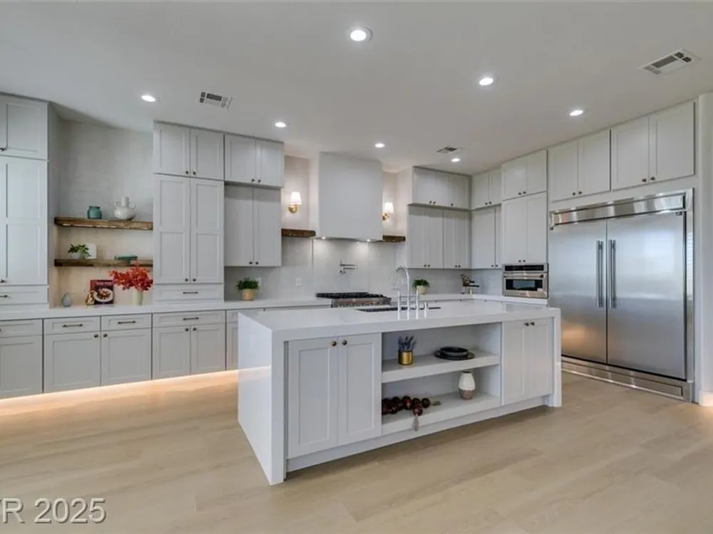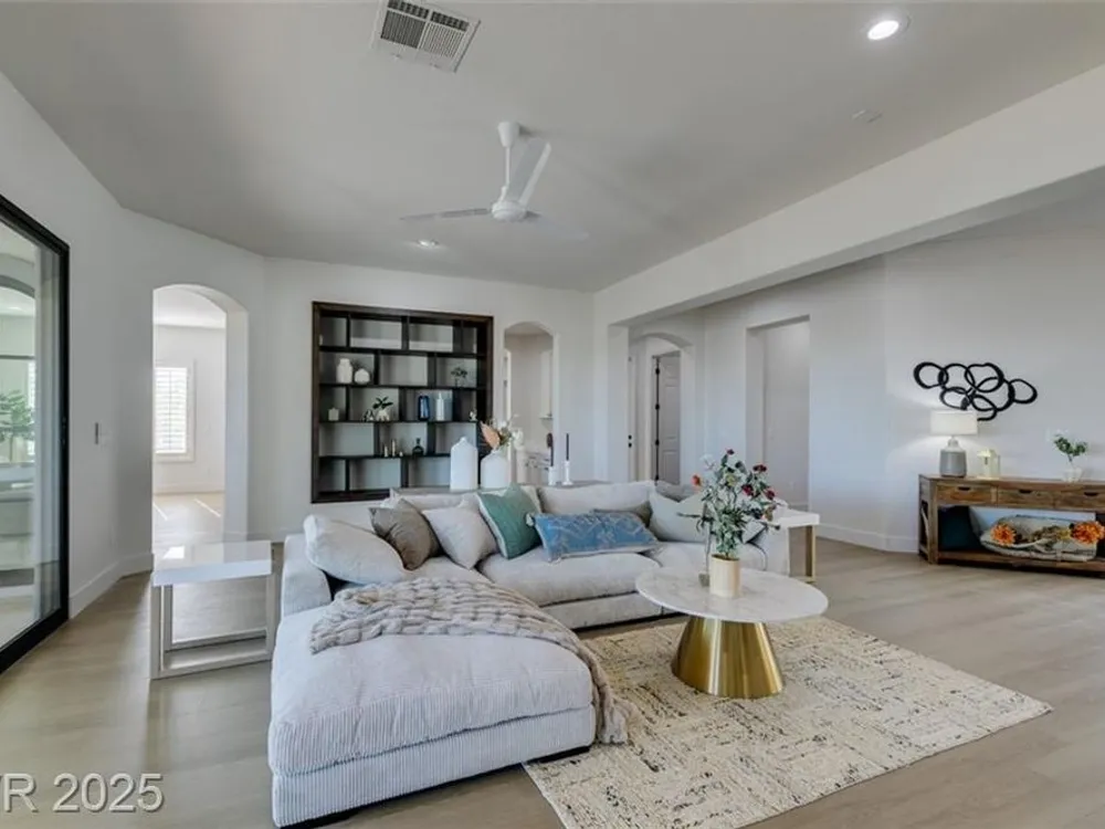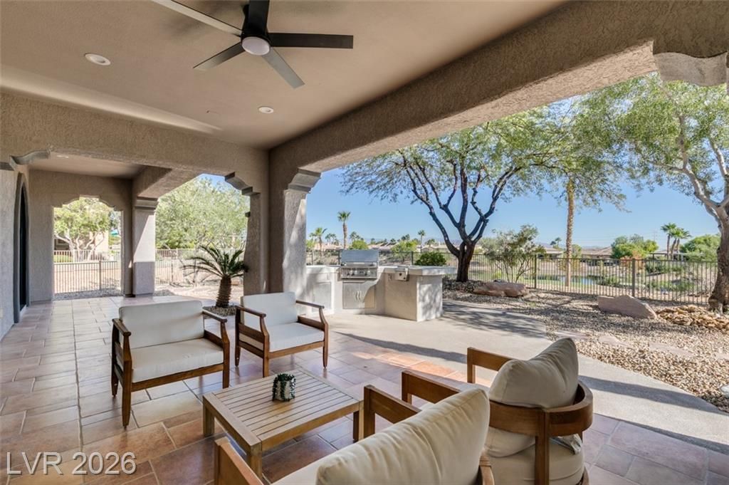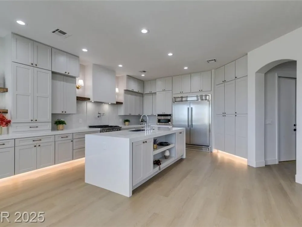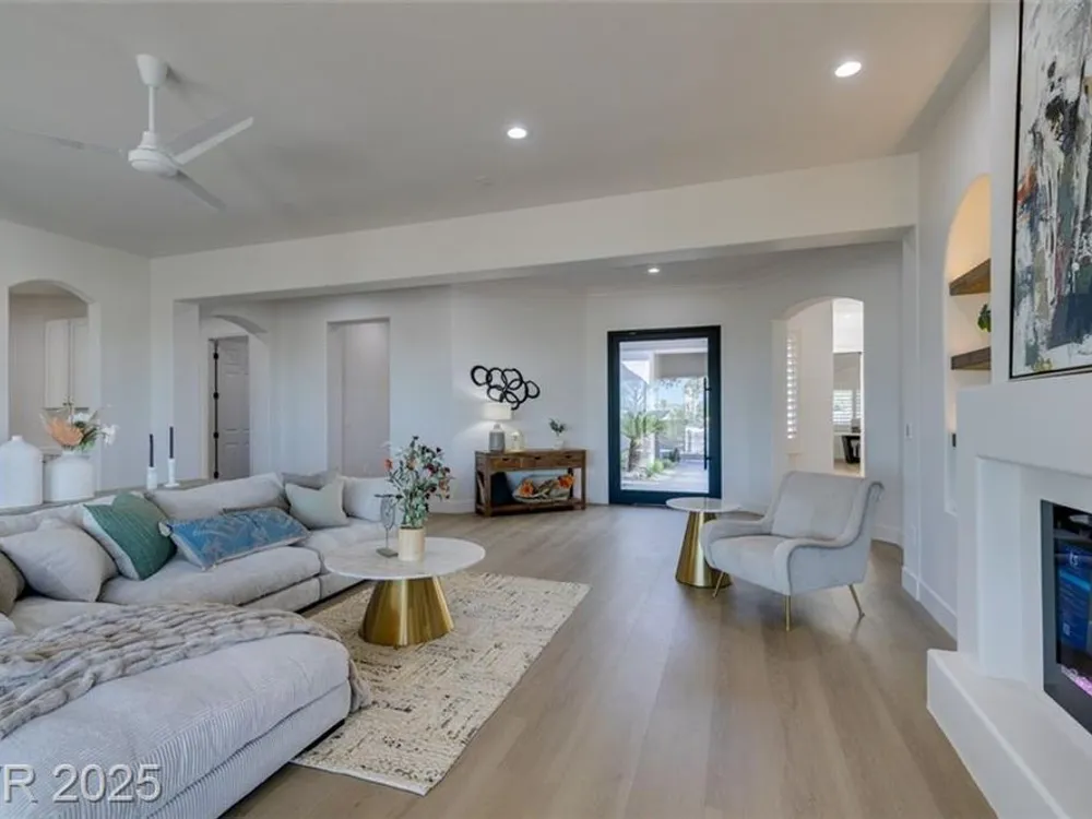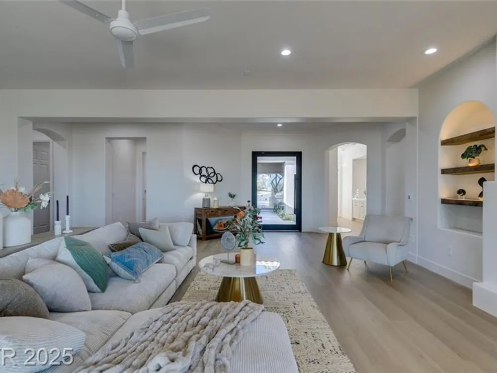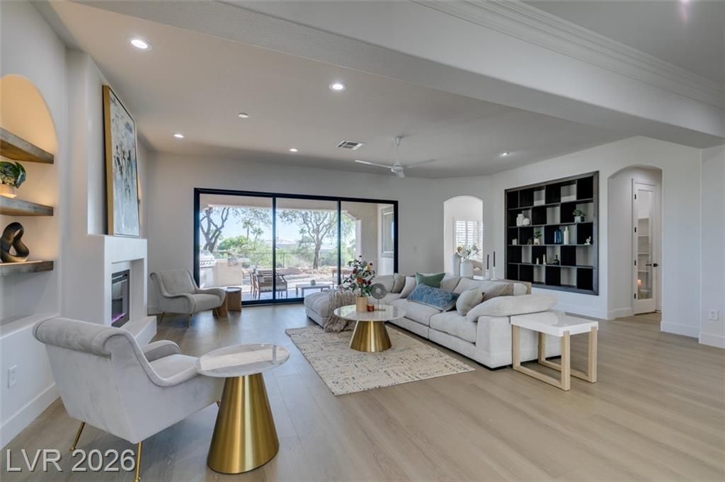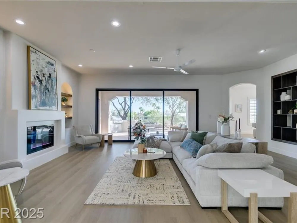 BEAUTIFUL, FULLY RENOVATED HOME IN SIENA, NESTLED IN THE GUARD GATED COMMUNITY IN SUMMERLIN. ONE OF A KIND LOT OVERLOOKING THE 15TH HOLE TEE BOX AND WATER VIEWS. THIS CAPTIVATING SINGLE STORY RESIDENCE HAS UNDERGONE A COMPREHENSIVE TOP-TO-BOTTOM REMODEL, SHOWCASING A FLAWLESS TURNKEY DESIGN. BOASTING 3 BEDROOMS, 3 BATHROOMS, A 3-CAR GARAGE, AND SPANNING 2,994 SQFT, THIS HOME IS A TRUE GEM. IMMERSE YOURSELF IN THE ALLURE OF BRAND-NEW FEATURES, INCLUDING A FRESH INTERIOR & EXTERIOR PAINT, 15' CUSTOM SLIDER, ELEGANT QUARTZ & NATURAL STONE COUNTERTOPS, AN IMPRESSIVE 6' FRONT PIVOT DOOR, CUSTOM SHAKER CABINETRY, 5" SQUARE BASEBOARDS, STATE-OF-THE-ART STAINLESS STEEL KITCHEN APPLIANCES, WOOD-LOOK LUXURY VINYL FLOORING, AND CONTEMPORARY LIGHTING AND PLUMBING FIXTURES.