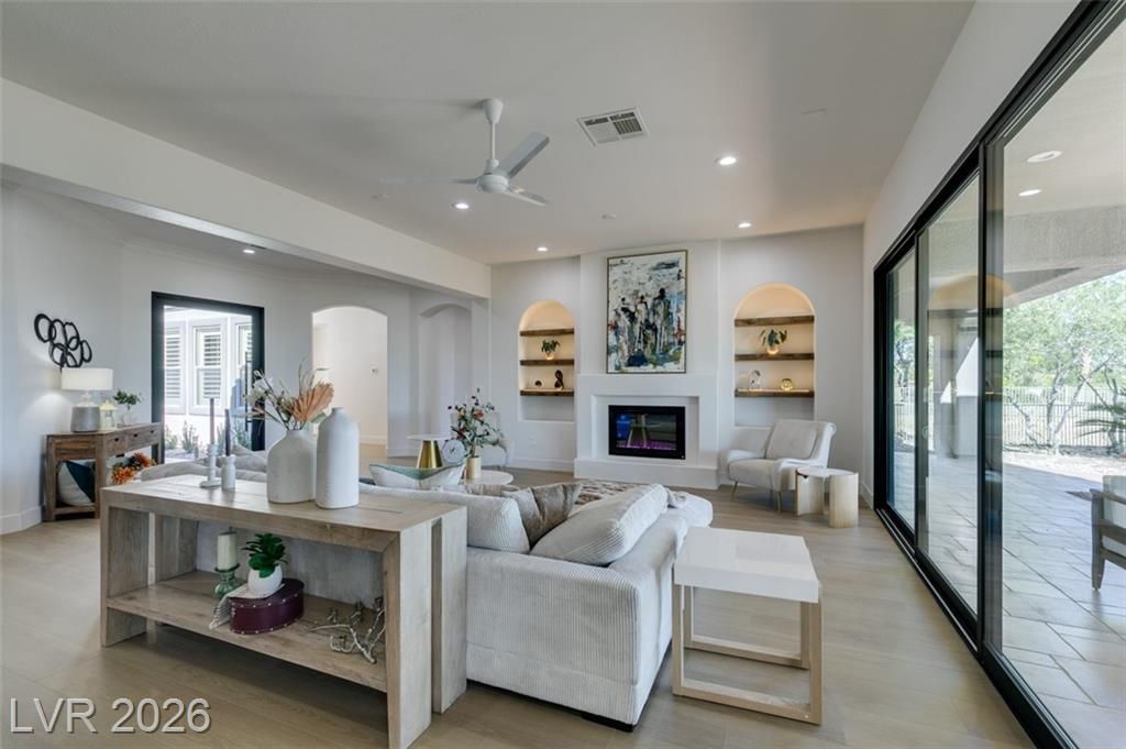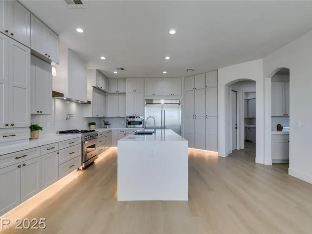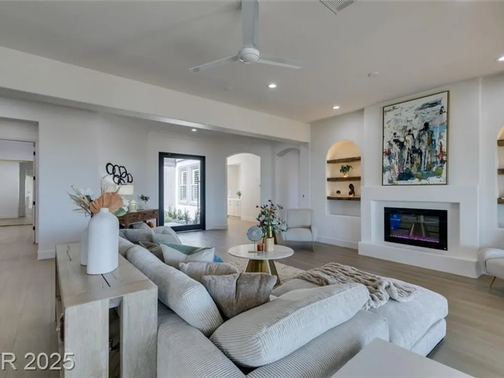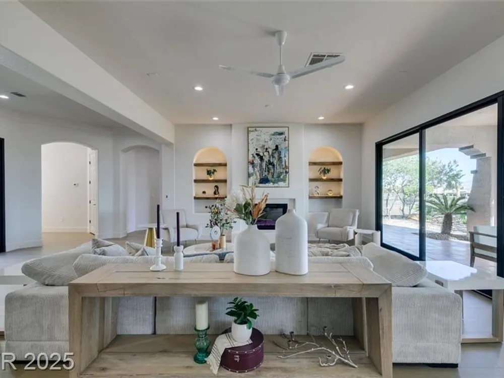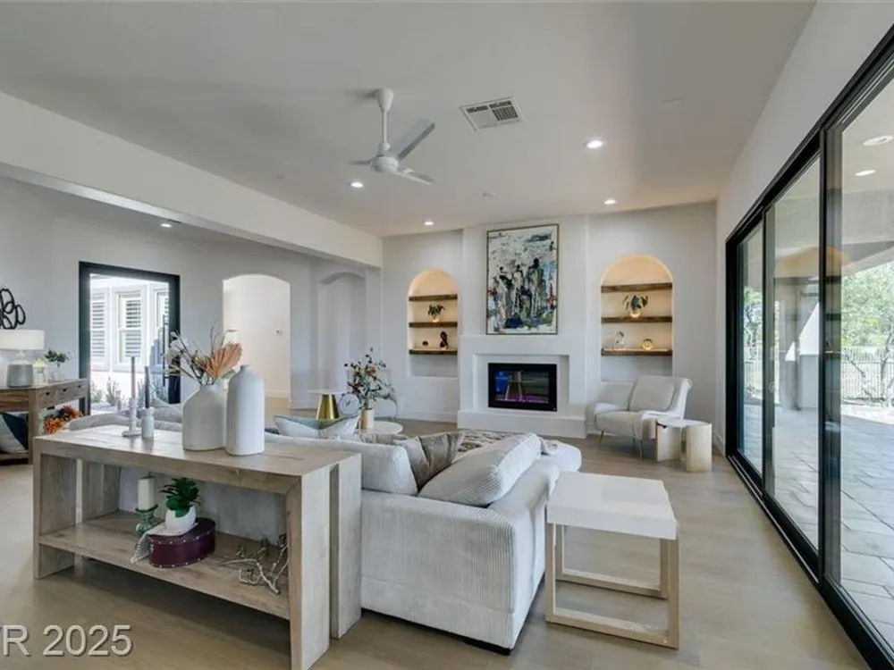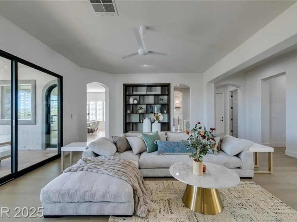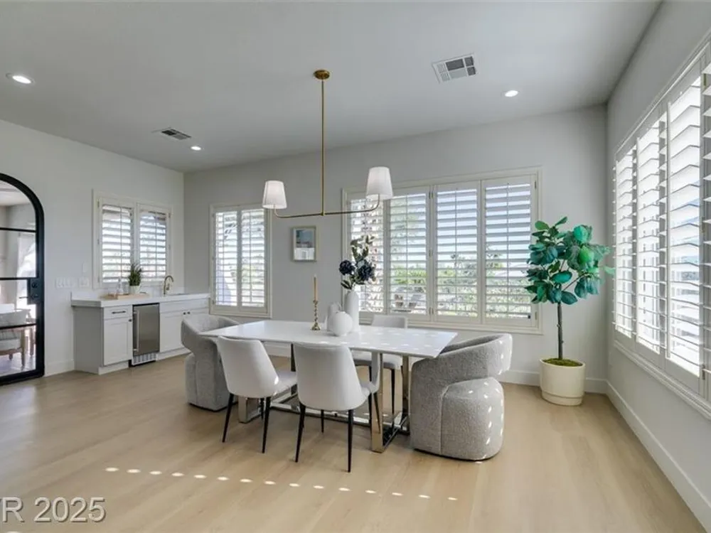BEAUTIFUL, FULLY RENOVATED HOME IN SIENA, NESTLED IN THE GUARD GATED COMMUNITY IN SUMMERLIN. ONE OF A KIND LOT OVERLOOKING THE 15TH HOLE TEE BOX AND WATER VIEWS. THIS CAPTIVATING SINGLE STORY RESIDENCE HAS UNDERGONE A COMPREHENSIVE TOP-TO-BOTTOM REMODEL, SHOWCASING A FLAWLESS TURNKEY DESIGN. BOASTING 3 BEDROOMS, 3 BATHROOMS, A 3-CAR GARAGE, AND SPANNING 2,994 SQFT, THIS HOME IS A TRUE GEM. IMMERSE YOURSELF IN THE ALLURE OF BRAND-NEW FEATURES, INCLUDING A FRESH INTERIOR & EXTERIOR PAINT, 15' CUSTOM SLIDER, ELEGANT QUARTZ & NATURAL STONE COUNTERTOPS, AN IMPRESSIVE 6' FRONT PIVOT DOOR, CUSTOM SHAKER CABINETRY, 5" SQUARE BASEBOARDS, STATE-OF-THE-ART STAINLESS STEEL KITCHEN APPLIANCES, WOOD-LOOK LUXURY VINYL FLOORING, AND CONTEMPORARY LIGHTING AND PLUMBING FIXTURES.