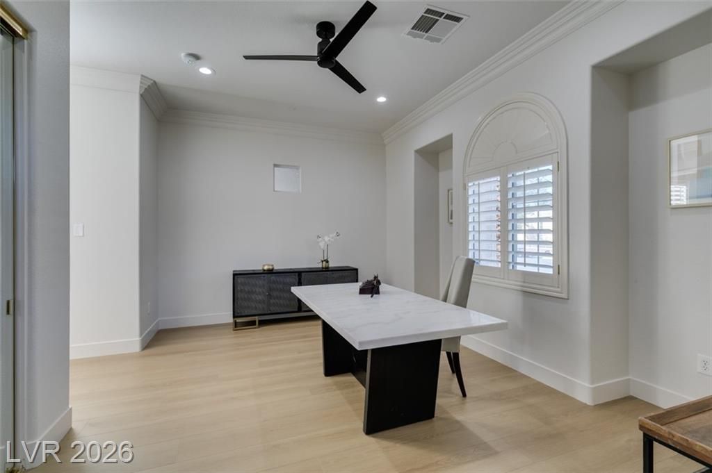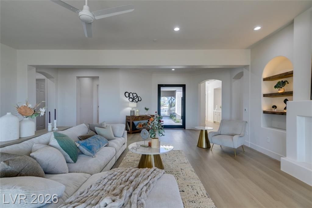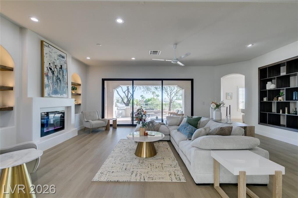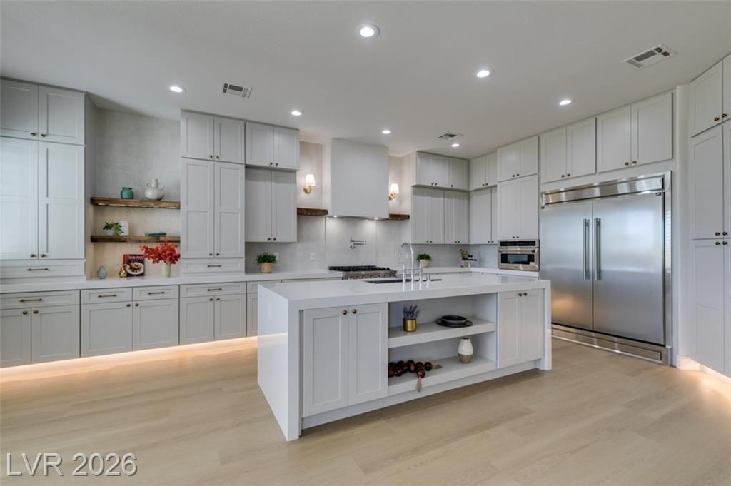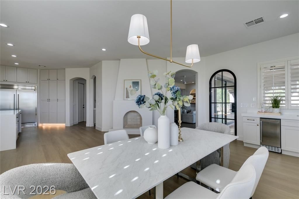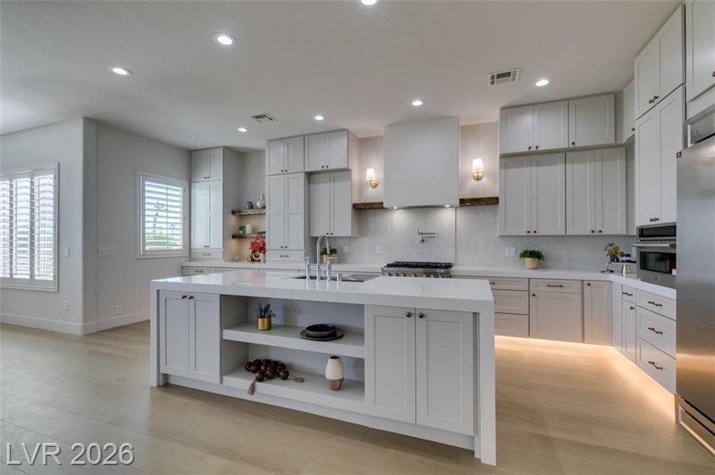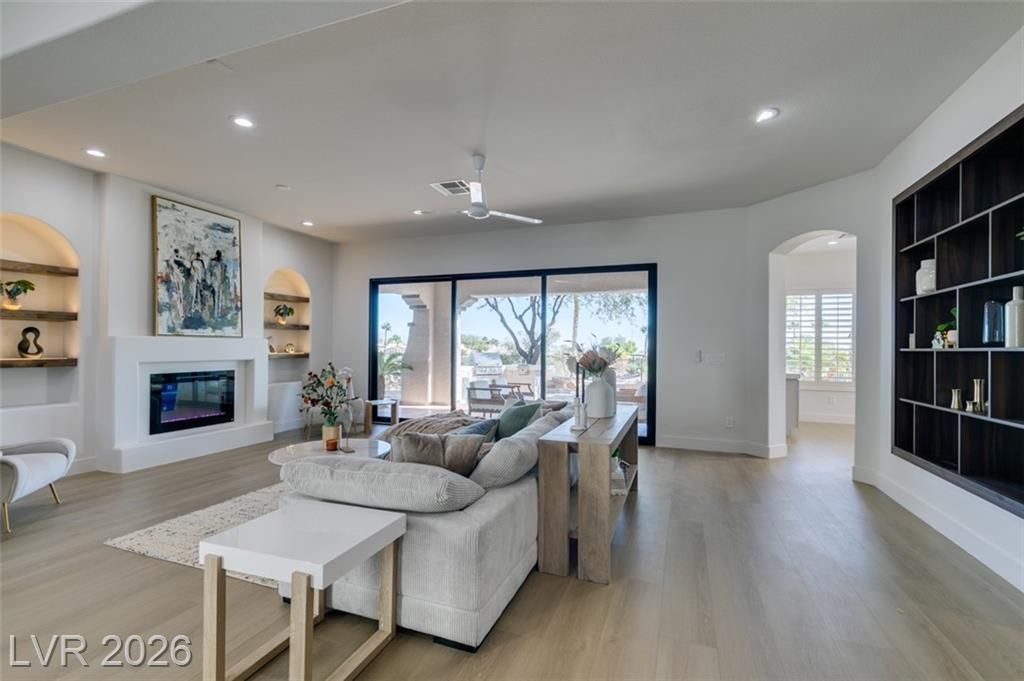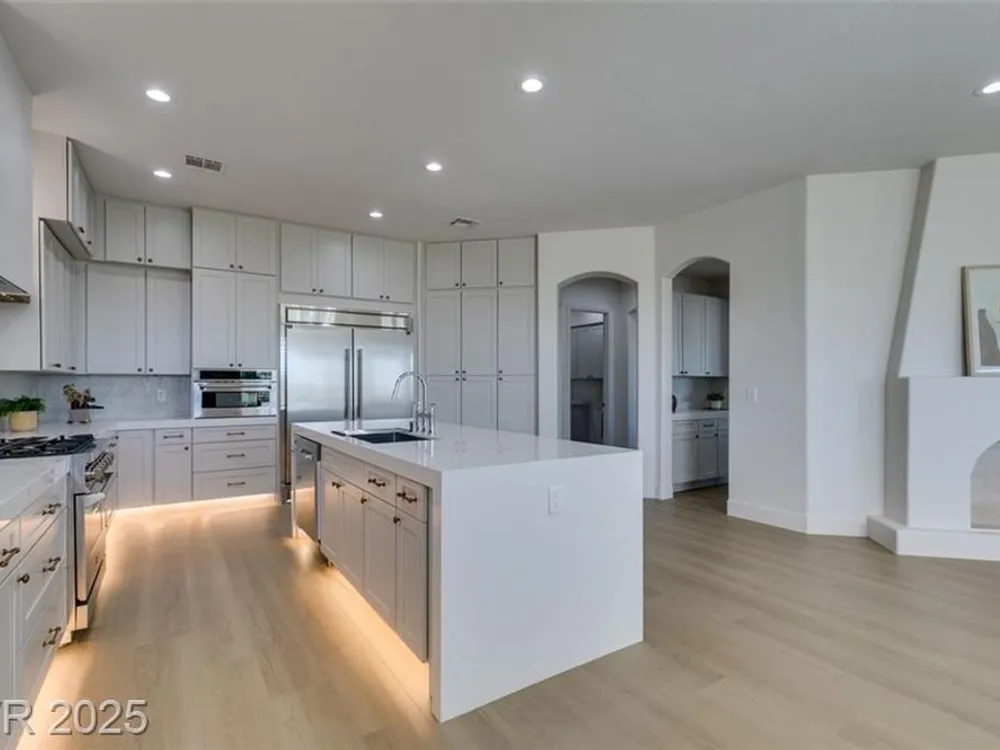 BEAUTIFUL, FULLY RENOVATED HOME IN SIENA, NESTLED IN THE GUARD GATED COMMUNITY IN SUMMERLIN. ONE OF A KIND LOT OVERLOOKING THE 15TH HOLE TEE BOX AND WATER VIEWS. THIS CAPTIVATING SINGLE STORY RESIDENCE HAS UNDERGONE A COMPREHENSIVE TOP-TO-BOTTOM REMODEL, SHOWCASING A FLAWLESS TURNKEY DESIGN. BOASTING 3 BEDROOMS, 3 BATHROOMS, A 3-CAR GARAGE, AND SPANNING 2,994 SQFT, THIS HOME IS A TRUE GEM. IMMERSE YOURSELF IN THE ALLURE OF BRAND-NEW FEATURES, INCLUDING A FRESH INTERIOR & EXTERIOR PAINT, 15' CUSTOM SLIDER, ELEGANT QUARTZ & NATURAL STONE COUNTERTOPS, AN IMPRESSIVE 6' FRONT PIVOT DOOR, CUSTOM SHAKER CABINETRY, 5" SQUARE BASEBOARDS, STATE-OF-THE-ART STAINLESS STEEL KITCHEN APPLIANCES, WOOD-LOOK LUXURY VINYL FLOORING, AND CONTEMPORARY LIGHTING AND PLUMBING FIXTURES.