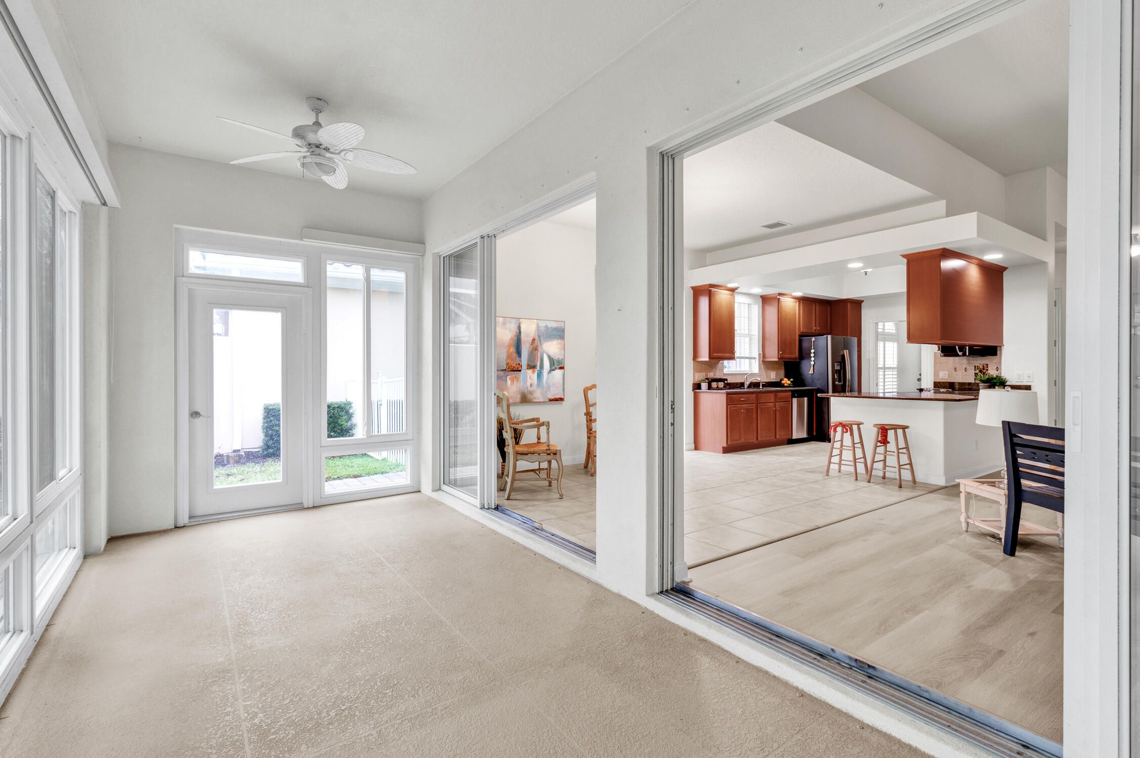 The Isles at Waterway Village; DiVosta built Oakmont model 3BR/3BA+den on the lake w/ southeast exposure. Home features: whole house generator w/ buried propane tank; enclosed porch w/ impact windows; primary bedroom w/ impact slider; accordion shutters everywhere else. Lovely built-ins; 12' ceilings w/ 8' doors; great room concept + separate bonus room/office; the kitchen has granite & stainless steel appliances; even a nice, small fenced in area for Fido! Plus you can move right in: fresh paint & new LVP flooring to accompany the existing tile. Gated; community pool & amenities.