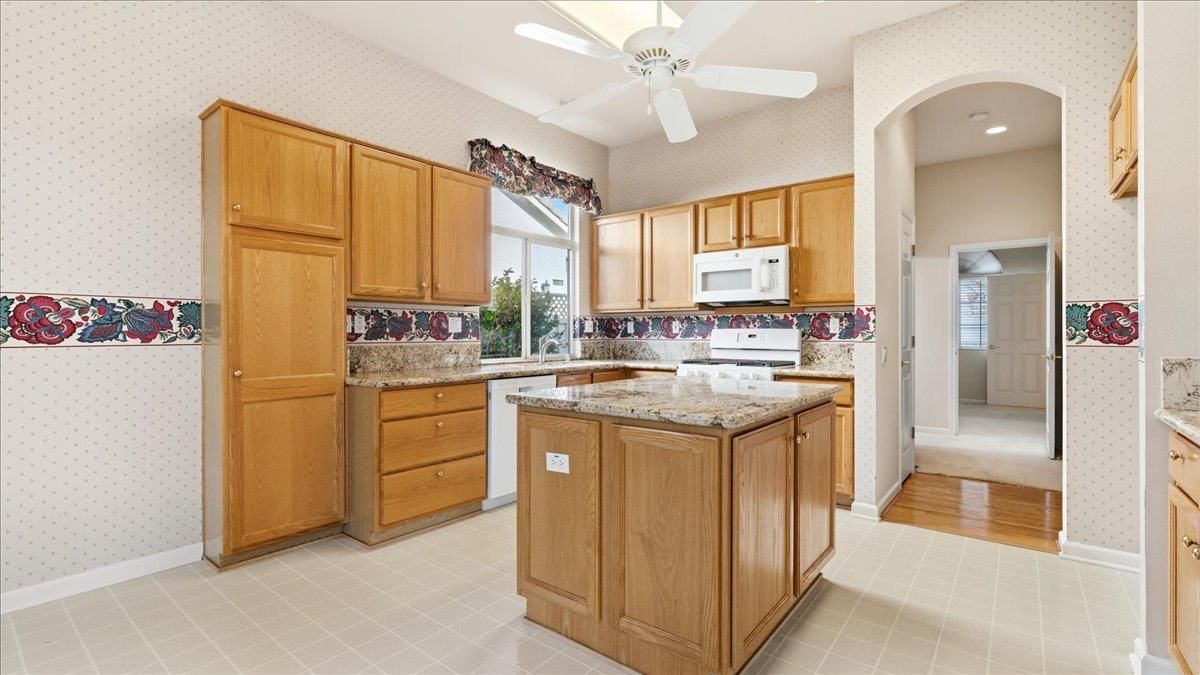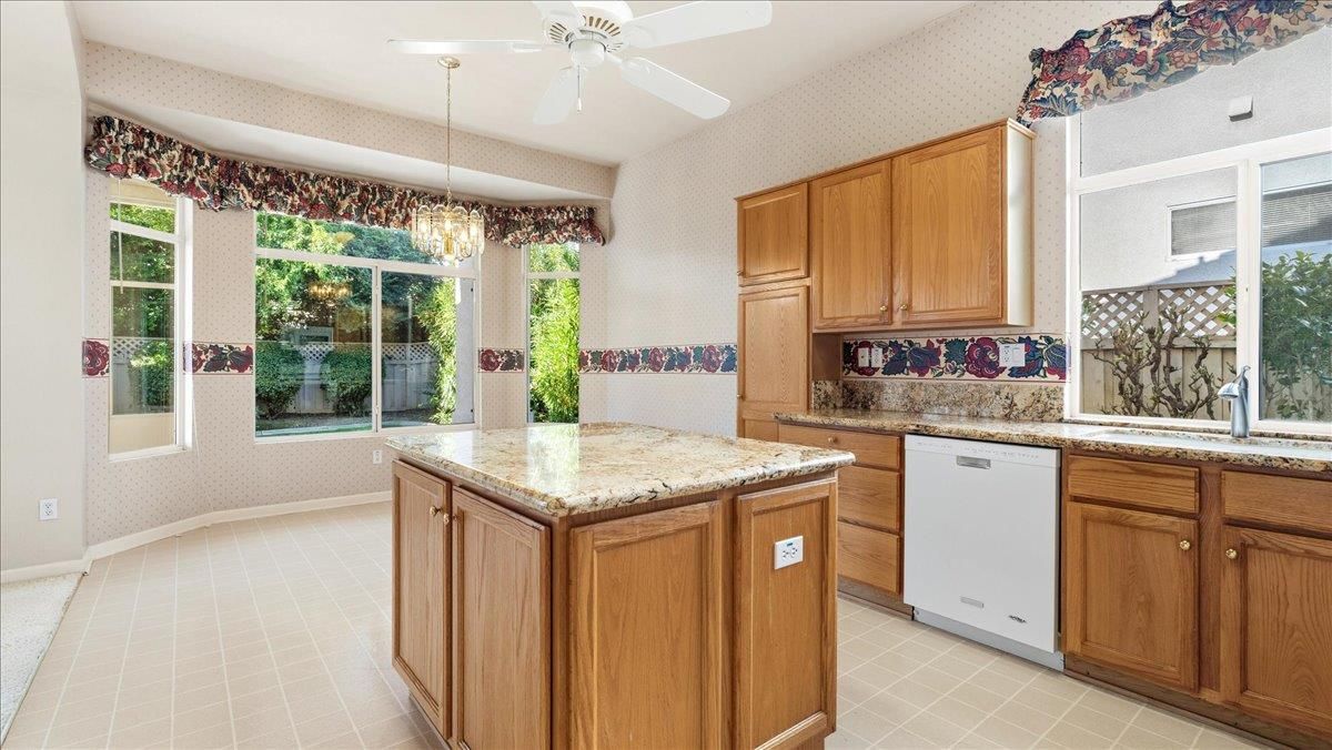 Beautiful Shasta floor plan in Sun City Roseville featuring approximately 1,547 sq. ft. with 2 bedrooms, 2 baths, and formal dining. Bright, open living spaces connect seamlessly to the kitchen with center island, breakfast nook, and ample cabinetryperfect for comfortable daily living and entertaining. The private primary suite offers a walk-in closet and en-suite bath, while the guest bedroom is thoughtfully positioned for privacy. Enjoy a serene backyard with mature landscaping and enclosed patio, creating a peaceful outdoor retreat. Additional features include an indoor laundry room and a two-car garage with space for a golf cart. Conveniently located near the clubhouse, the golf course, and an array of amenities, this home offers comfort, functionality, and access to Sun City Roseville's vibrant 55+ lifestyle.