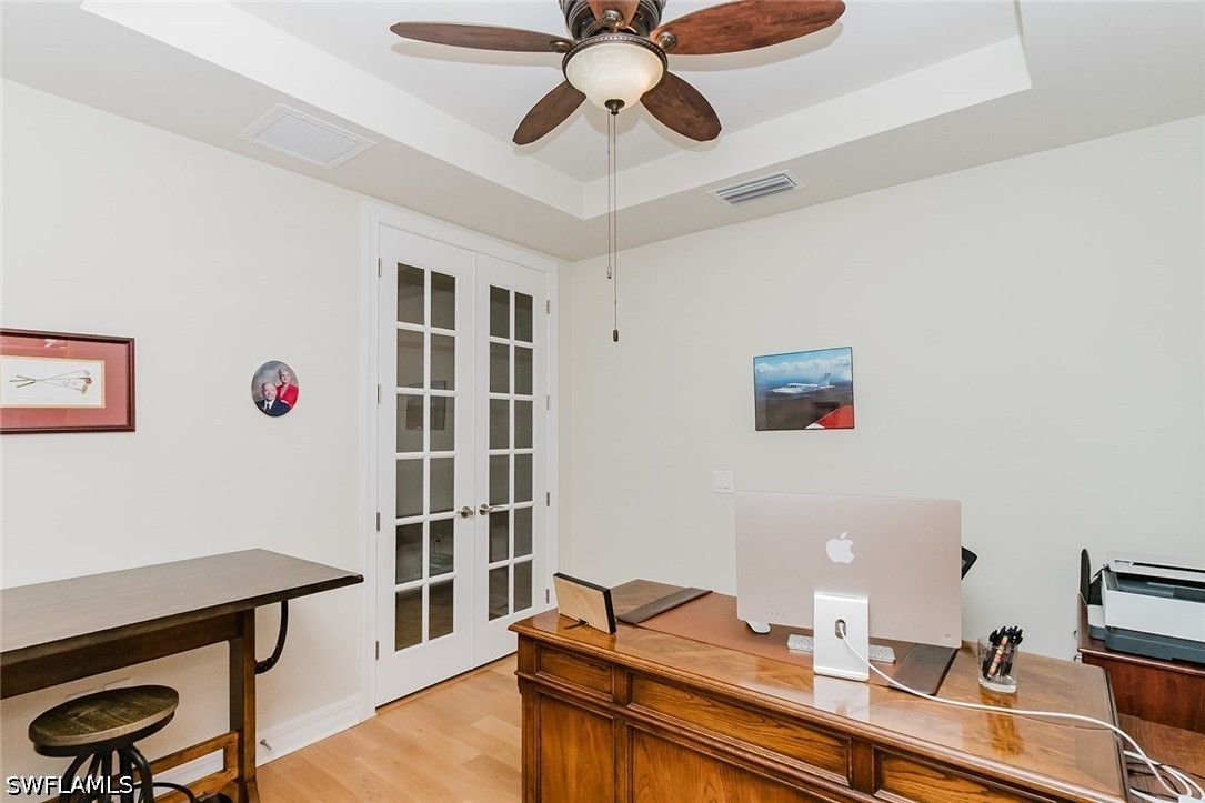 - Breakfast Bar, Tray Ceiling(s), Dual Sinks, Entrance Foyer, Family/Dining Room, French Door(s)/Atrium Door(s), Kitchen Island, Living/Dining Room, Main Level Primary, Pantry, Separate Shower, Cable TV, Walk-In Pantry, Walk-In Closet(s), High Speed Internet, Home Office, Split Bedrooms