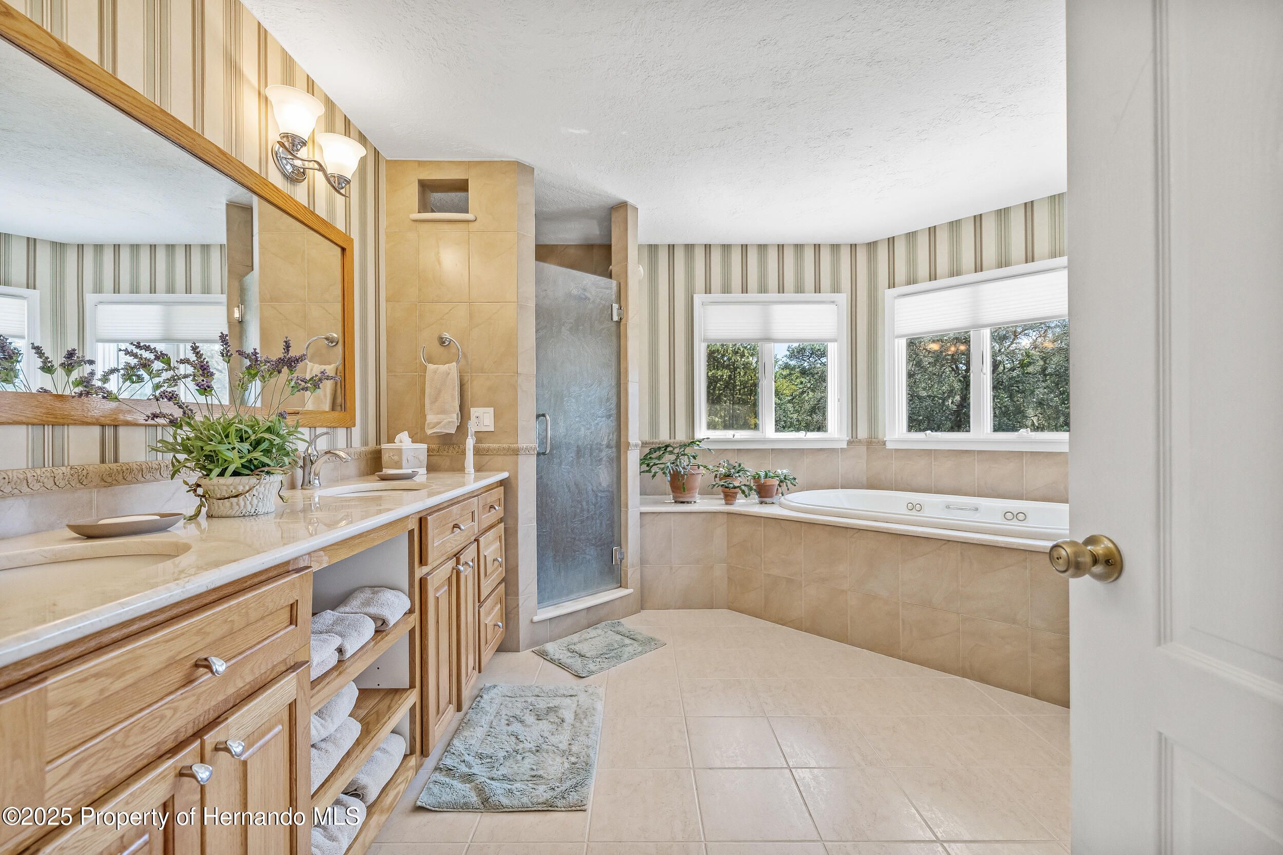- Breakfast Bar, Ceiling Fan(s), Double Vanity, Eat-in Kitchen, Entrance Foyer, His and Hers Closets, Kitchen Island, Pantry, Primary Bathroom -Tub with Separate Shower, Vaulted Ceiling(s), Split Plan