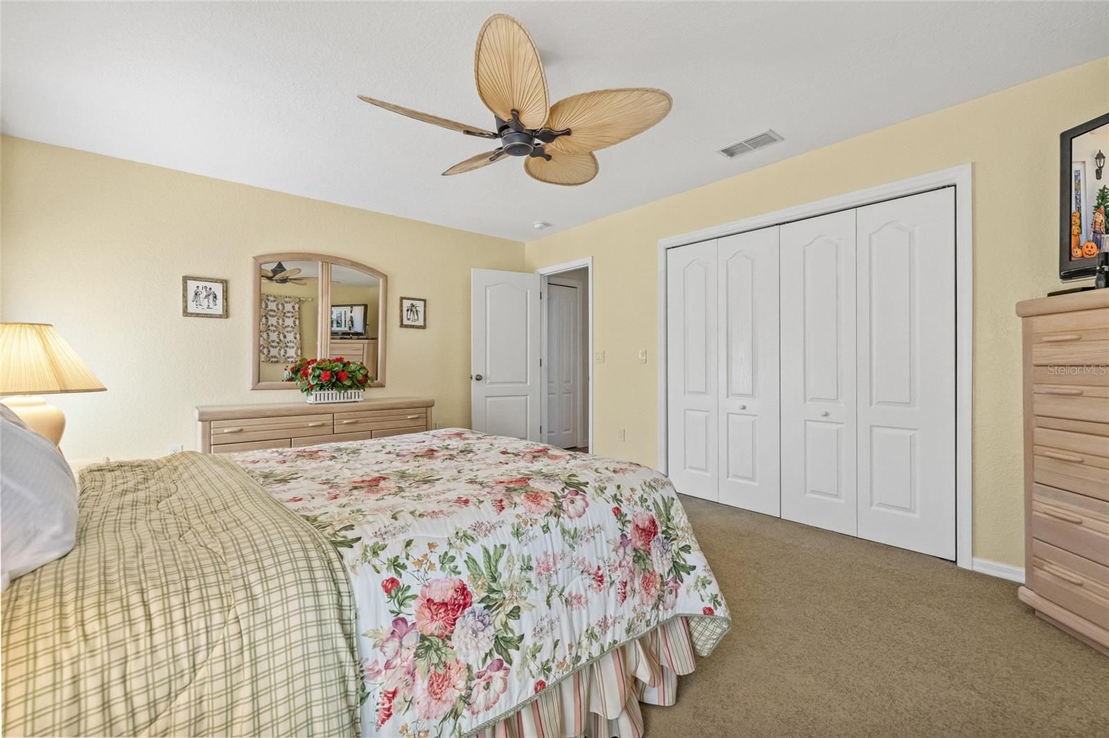 - Cathedral Ceiling(s), Ceiling Fan(s), Eat-in Kitchen, High Ceilings, Upper Level Primary, Solid Surface Counters, Solid-Wood Cabinets, Split Bedrooms, Stone Counters, Thermostat, Walk-In Closet(s)