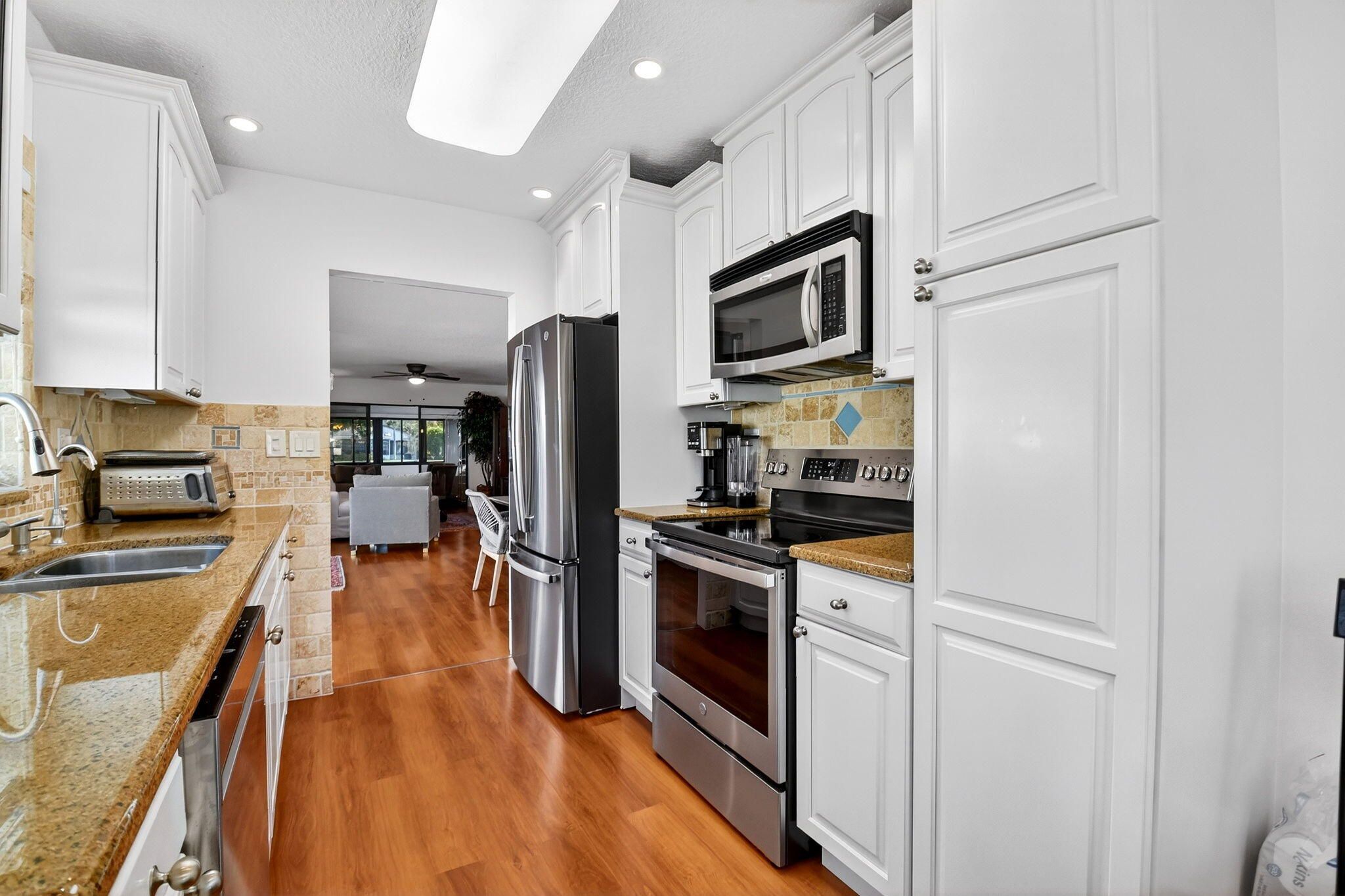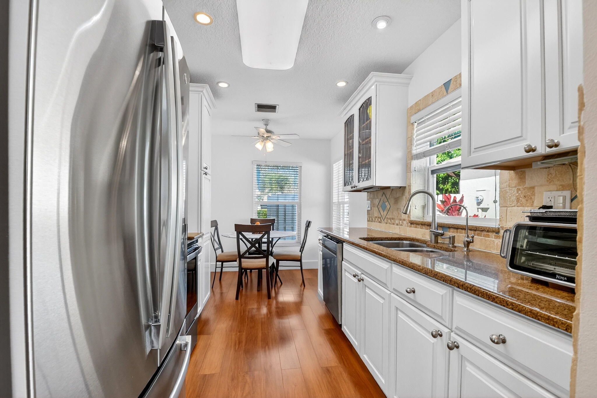 Beautifully updated lakefront home in the desirable community of Mirror Lakes! This move-in ready 2-bedroom, 2-bath residence offers the perfect blend of comfort and Florida charm. The renovated kitchen features white shaker cabinetry, granite countertops, 2025 stainless appliances, and a cozy eat-in area. Both bathrooms are tastefully updated for modern living. The bright Florida room overlooks the lake and is ideal for a home office, sitting area, or peaceful retreat. Enjoy outdoor entertaining on the patio, perfect for BBQs with friends and family. Sip your morning coffee under the mango tree while watching serene lake views and local wildlife. Mirror Lakes is a friendly, active adult community offering a pool, pickleball, game room, and scenic walking and biking paths. This is conveniently located near shopping, dining, airports, and I-95