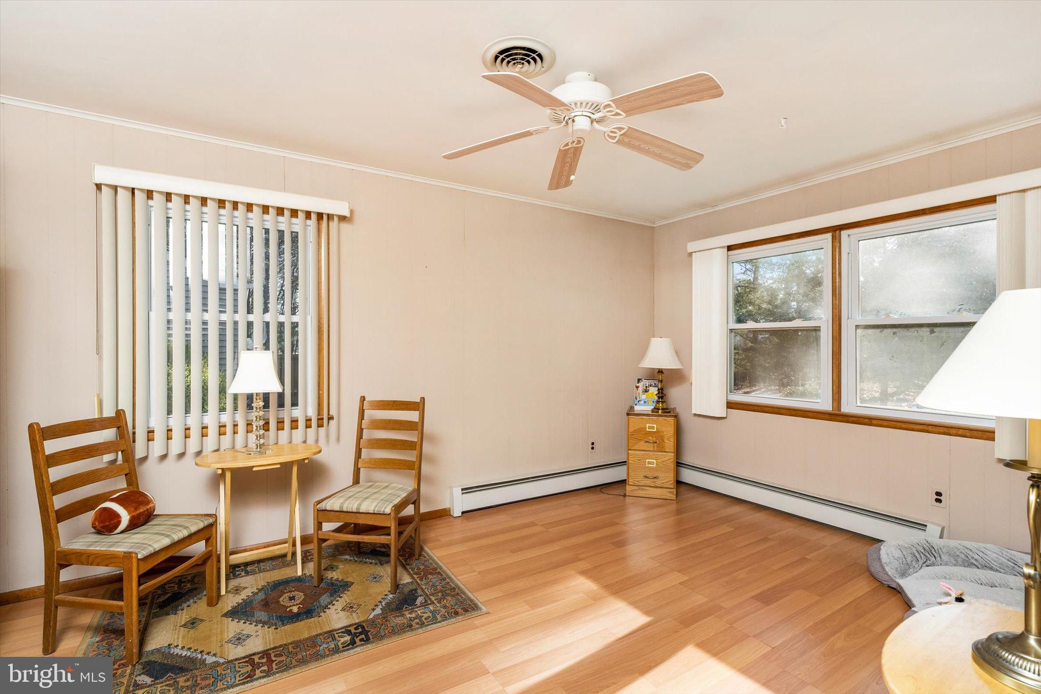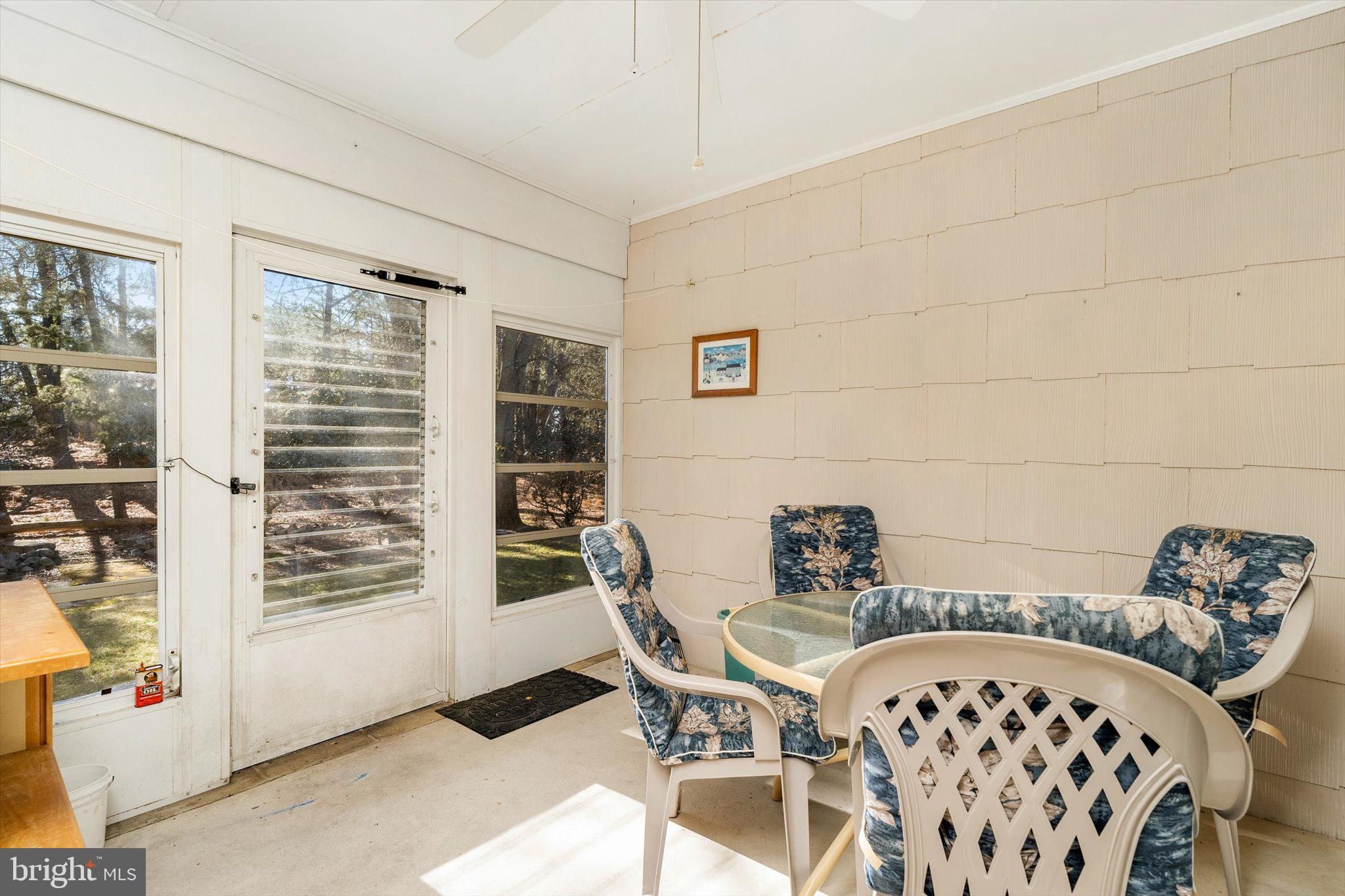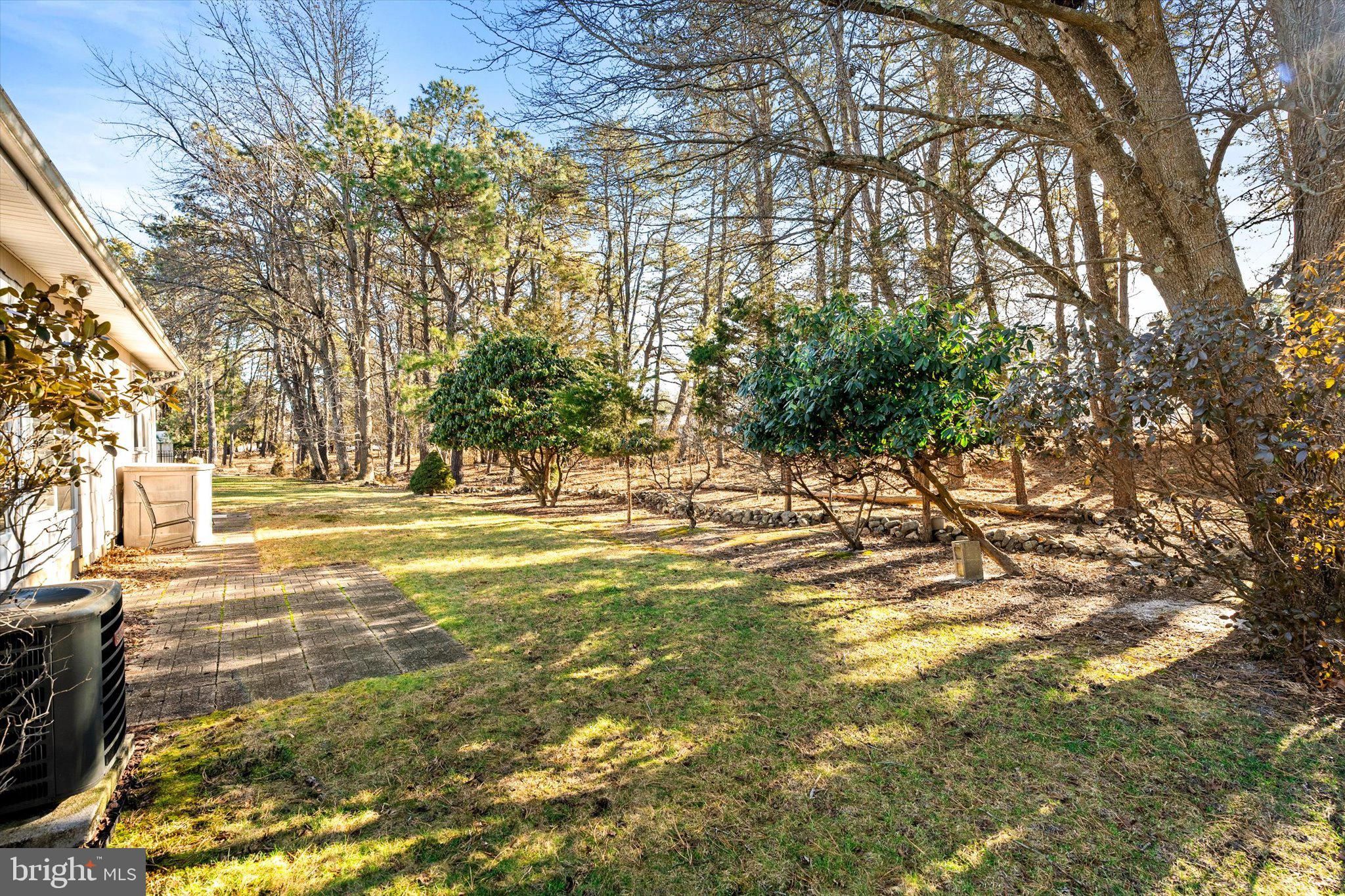Glen Ridge model offering 1,404 sq ft of pristine living space, backing to mature woods for rare privacy. Major systems provide peace of mind with the HVAC, furnace, and water heater all just 6 years old. This beautifully maintained ranch welcomes you into a spacious living room with bay windows flowing into the dining area at the rear of the home. To the left is an eat-in kitchen with wood cabinetry that opens to a bright, sunny den, while the right side of the home features the primary bedroom with en-suite bath, a second bedroom, and a full hall bath. Additional highlights include a 3-season room overlooking the private backyard, pull-down attic storage, and a one-car garage. Located in a very active community offering a pool, pickleball, bocce, clubs, and social events, all just minutes from the Jersey Shore, shopping, and major highways—perfect for a low-maintenance lifestyle.