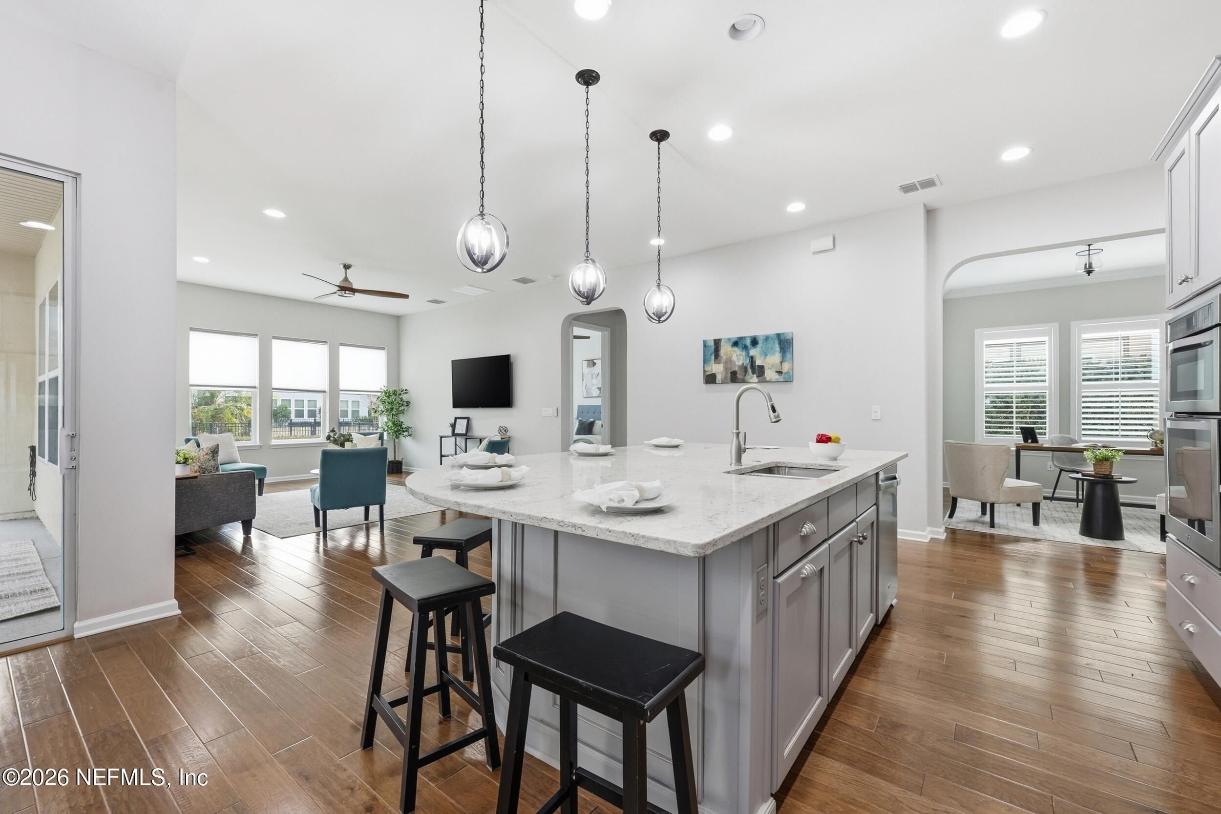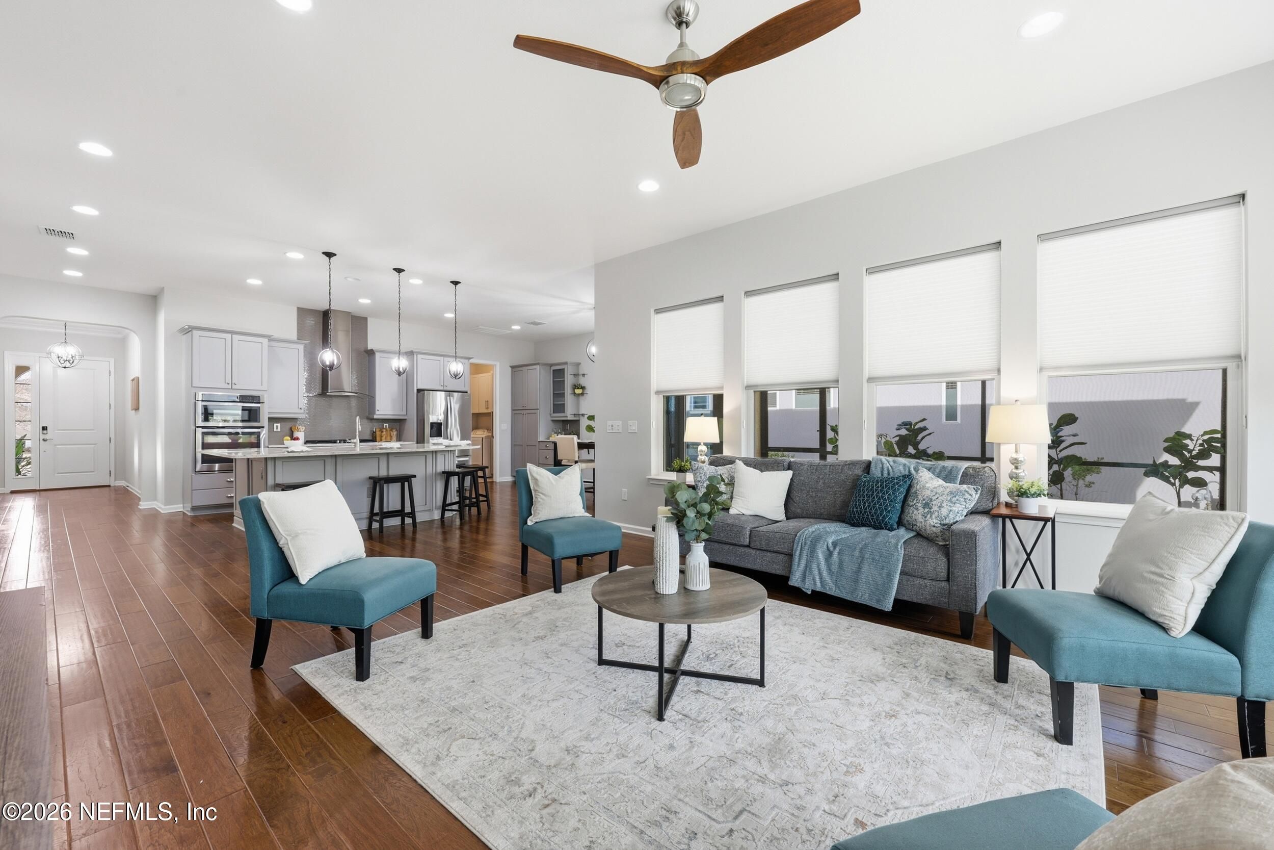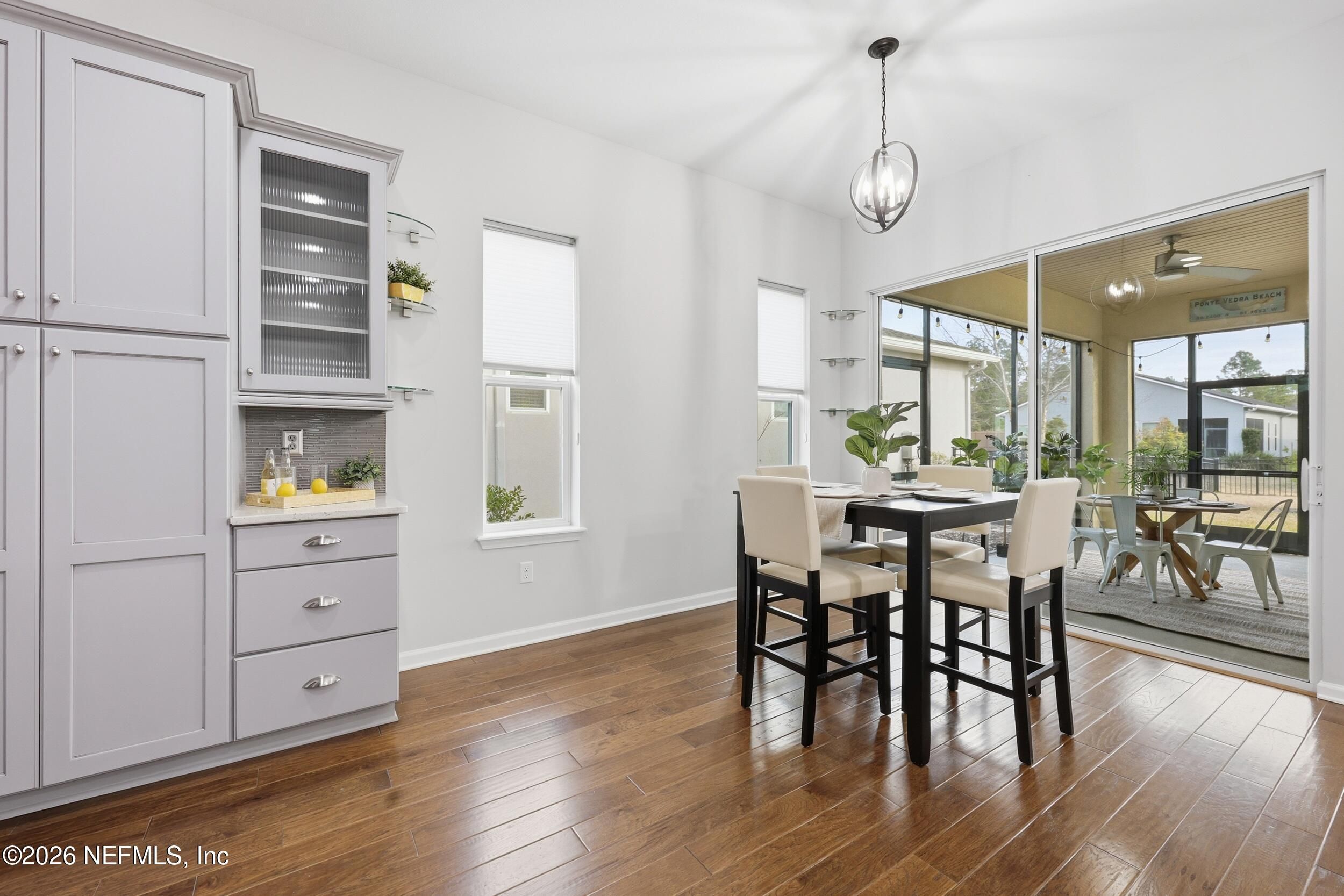 **OPEN HOUSE SAT. JAN. 31ST 1-3 P.M.** Discover your perfect, vibrant 55+ RETREAT in the gated community of Artisan Lakes, Nocatee! This charming 2-bed, 2-bath home is nestled on a peaceful cul-de-sac and features an inviting open floor plan with beautiful hardwood floors. The gourmet chef's kitchen is the heart of the home, boasting a state-of-the-art gas range, designer soft-close cabinets, and a stunning quartz island. Unwind in the spacious master suite, complete with double vanities, a luxurious walk-in shower with decorative backsplash, and custom closet organizers. This gorgeous home is the ideal combination of comfort and luxury. Plus, QUALIFIED BUYERS can receive an additional 1% toward a rate buy-down with preferred Lender. Don't miss your chance to make this exceptional property yours! **Beautifully maintained and being offered AS-IS.'' Private, spacious fully fenced backyard. Extra tandem area for storage plus 2-car garage. Water softener. Beautiful private Artisan Lakes Amenities include private zero entry pool, cabanas, fitness room, clubhouse and outdoor gathering area. Also includes all Nocatee Amenities of Splash and Spray waterparks, pools, pickleball & basketball courts, Fitness center and MORE! Enjoy Resort-style living at its best!