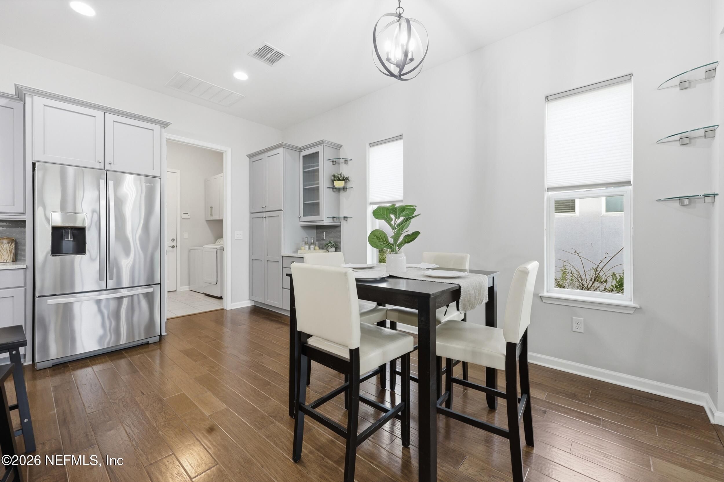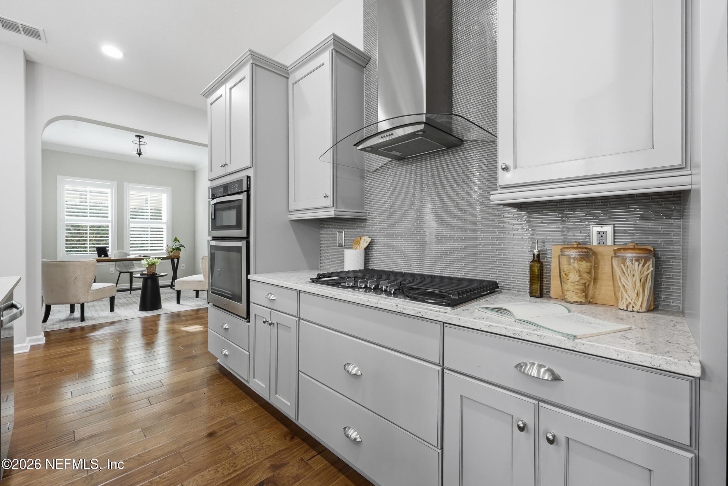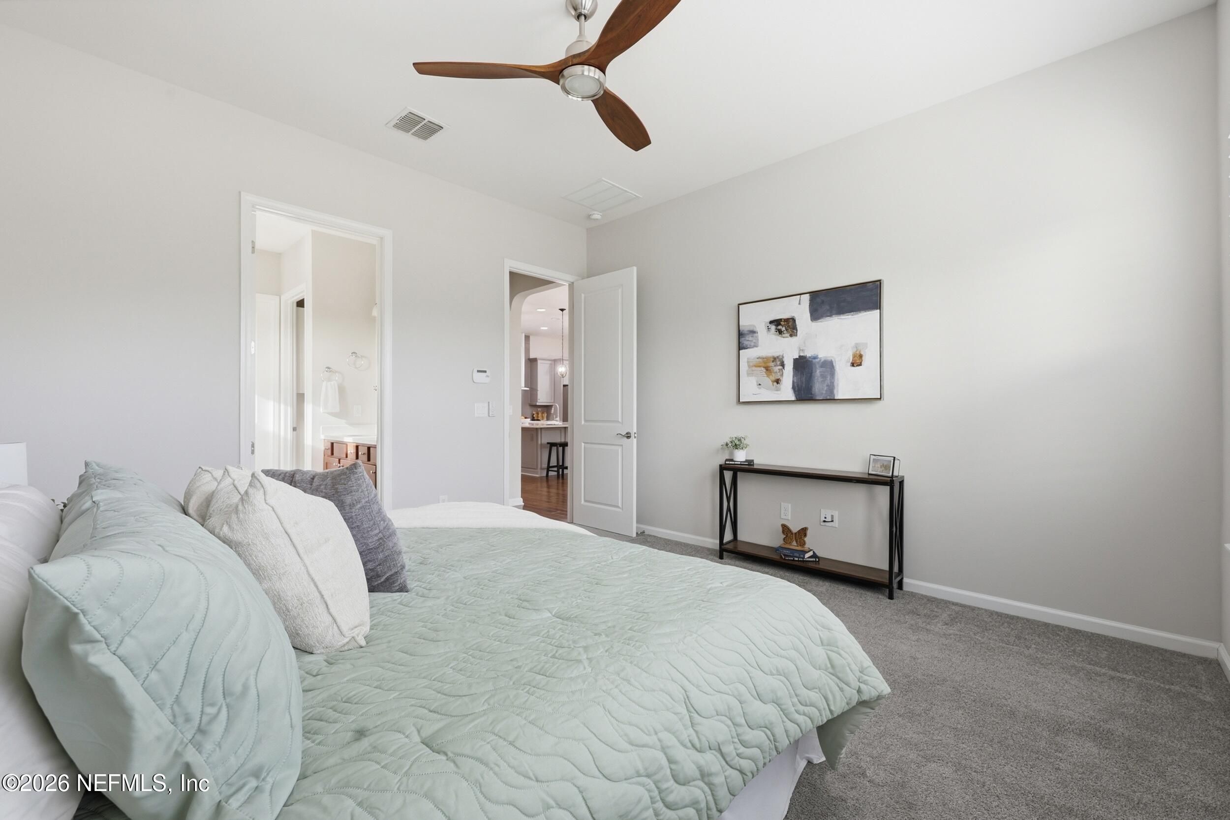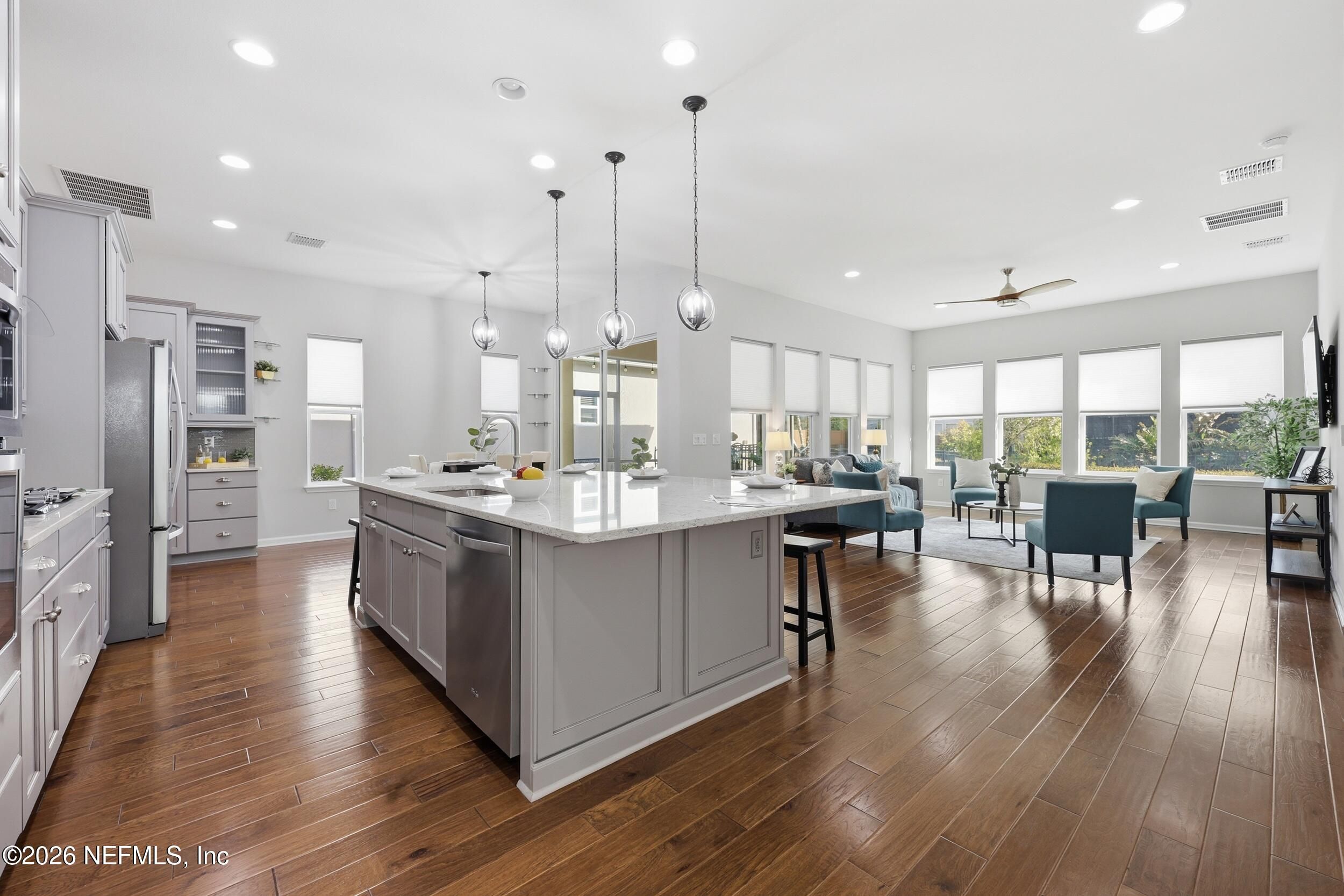 **OPEN HOUSE SAT. JAN. 31ST 1-3 P.M.** Discover your perfect, vibrant 55+ RETREAT in the gated community of Artisan Lakes, Nocatee! This charming 2-bed, 2-bath home is nestled on a peaceful cul-de-sac and features an inviting open floor plan with beautiful hardwood floors. The gourmet chef's kitchen is the heart of the home, boasting a state-of-the-art gas range, designer soft-close cabinets, and a stunning quartz island. Unwind in the spacious master suite, complete with double vanities, a luxurious walk-in shower with decorative backsplash, and custom closet organizers. This gorgeous home is the ideal combination of comfort and luxury. Plus, QUALIFIED BUYERS can receive an additional 1% toward a rate buy-down with preferred Lender. Don't miss your chance to make this exceptional property yours! **Beautifully maintained and being offered AS-IS.'' Private, spacious fully fenced backyard. Extra tandem area for storage plus 2-car garage. Water softener. Beautiful private Artisan Lakes Amenities include private zero entry pool, cabanas, fitness room, clubhouse and outdoor gathering area. Also includes all Nocatee Amenities of Splash and Spray waterparks, pools, pickleball & basketball courts, Fitness center and MORE! Enjoy Resort-style living at its best!