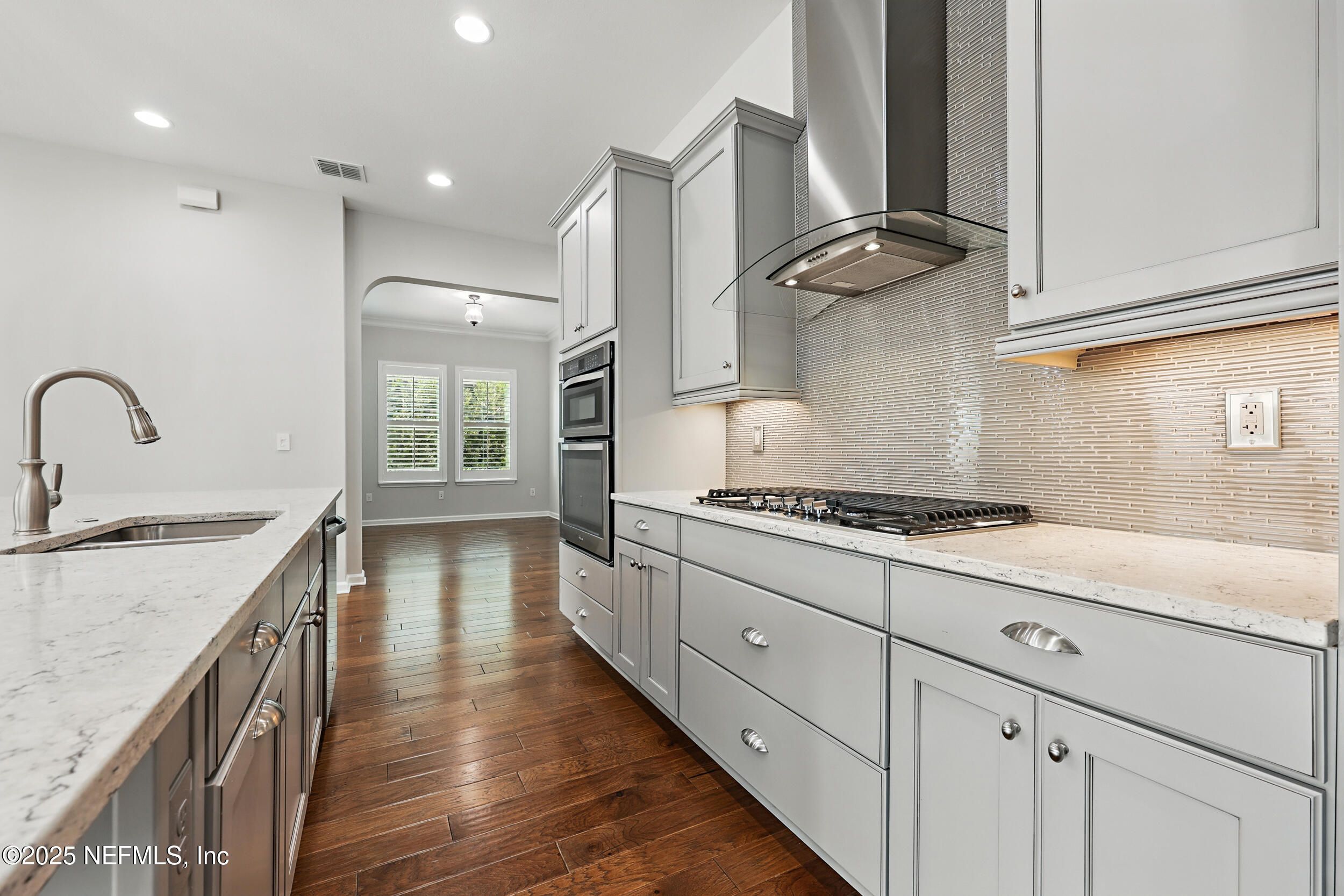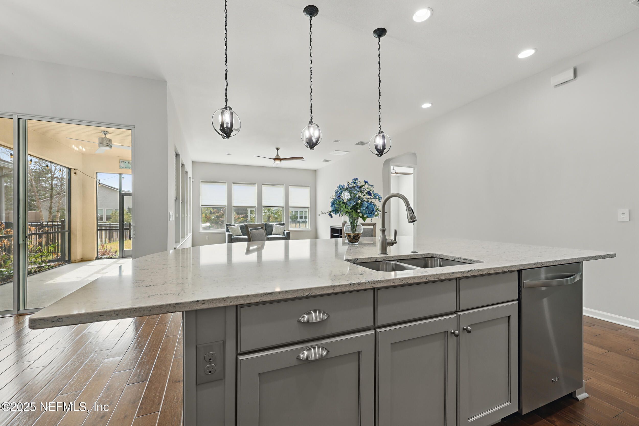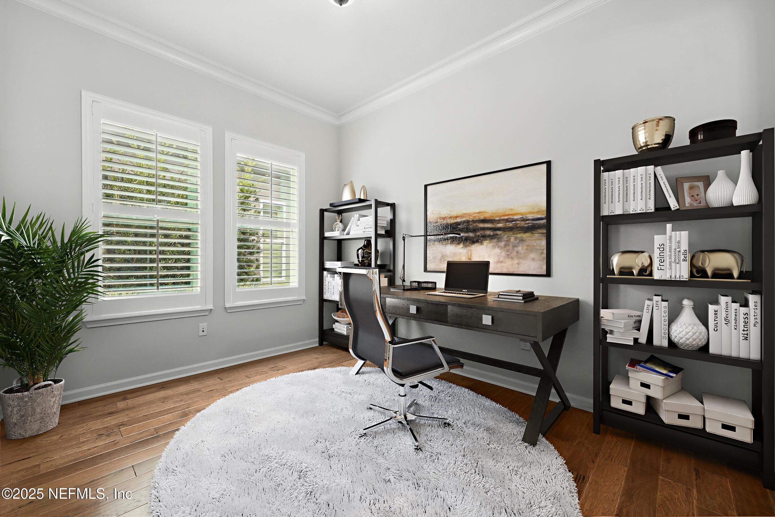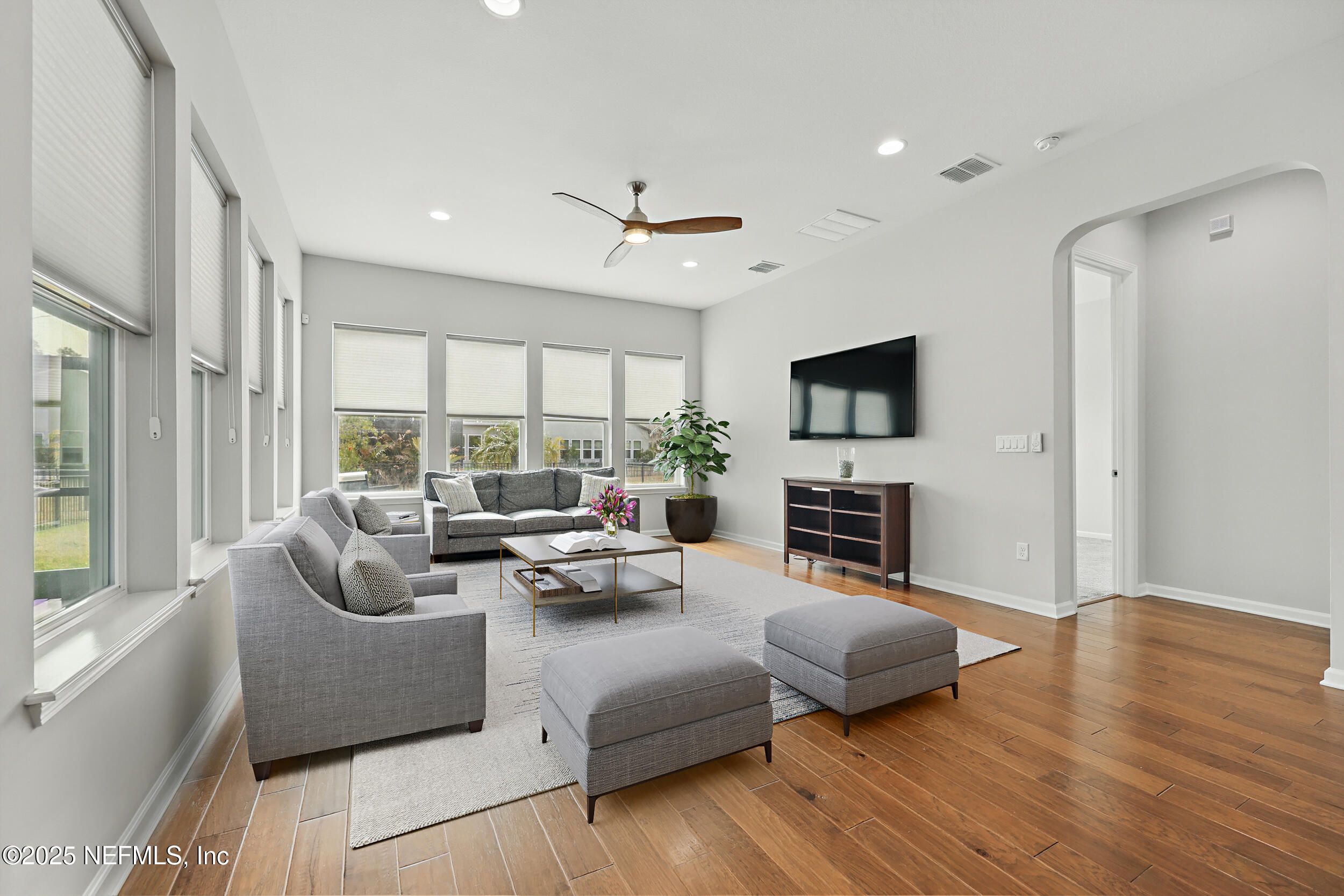 ***Discover your perfect RETREAT in the gated 55+ Artisan Lakes Community of Nocatee!!*** WELCOME to this charming 2-bed, 2-bath home offering warmth and sophistication for the vibrant 55+ lifestyle. Located on a peaceful cul-de-sac, imagine cooking in your chef's kitchen with a state-of-the-art gas range, designer cabinets, and a quartz island. The spacious master suite features double vanities, a luxurious walk-in shower with a decorative backsplash, and custom closet organizers. The open floor plan, with beautiful hardwood floors, creates an inviting atmosphere for relaxing or entertaining. **QUALIFIED BUYERS enjoy an additional 1% toward a rate buy-down with preferred Lender. This gorgeous home combines comfort, luxury, and value—don't miss your chance to make it yours! Step outside to your screened lanai overlooking a fully fenced backyard...an ideal private oasis. Artisan Lakes offers a vibrant clubhouse with a fitness center, multi-purpose rooms, and a demonstration kitchen for social gatherings and events. An extraordinary outdoor area includes a zero-entry infinity swimming pool, separate spa, multiple cabanas, and recreational facilities such as two pickleball courts, two bocce ball courts and a putting green. Beautfully designed patio areas complete with a pool table and fire pit, perfect for enjoying evenings with neighbors and friends. Situated just 25 miles south of downtown Jacksonville and five miles west of the stunning Atlantic Ocean, Artisan Lakes offers Gated security and is part of the master-planned, golf cart-friendly community of Nocatee. Residents enjoy easy access (just 6 minutes) to shopping, dining and recreational activities lcoated in the Nocatee Town Center. Come embrace a fulfilling lifestyle in this exceptional 55+ community. Schedule your showing today and discover the joys of living in Artisan Lakes!
