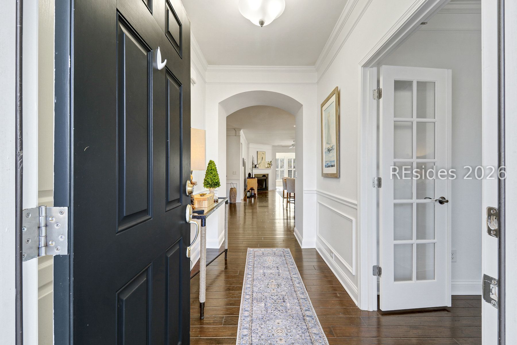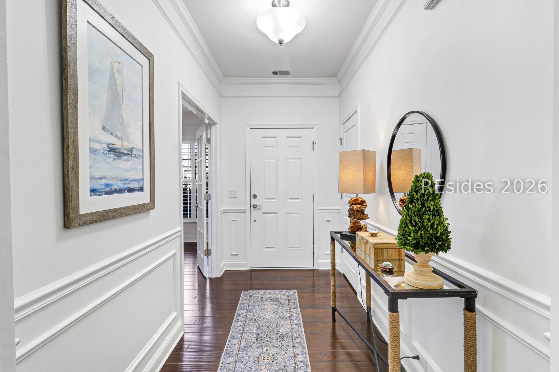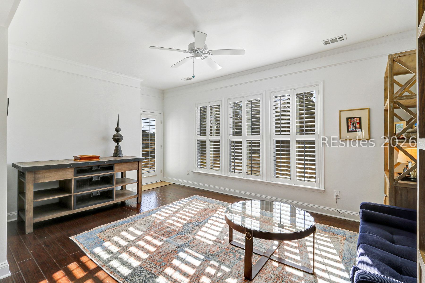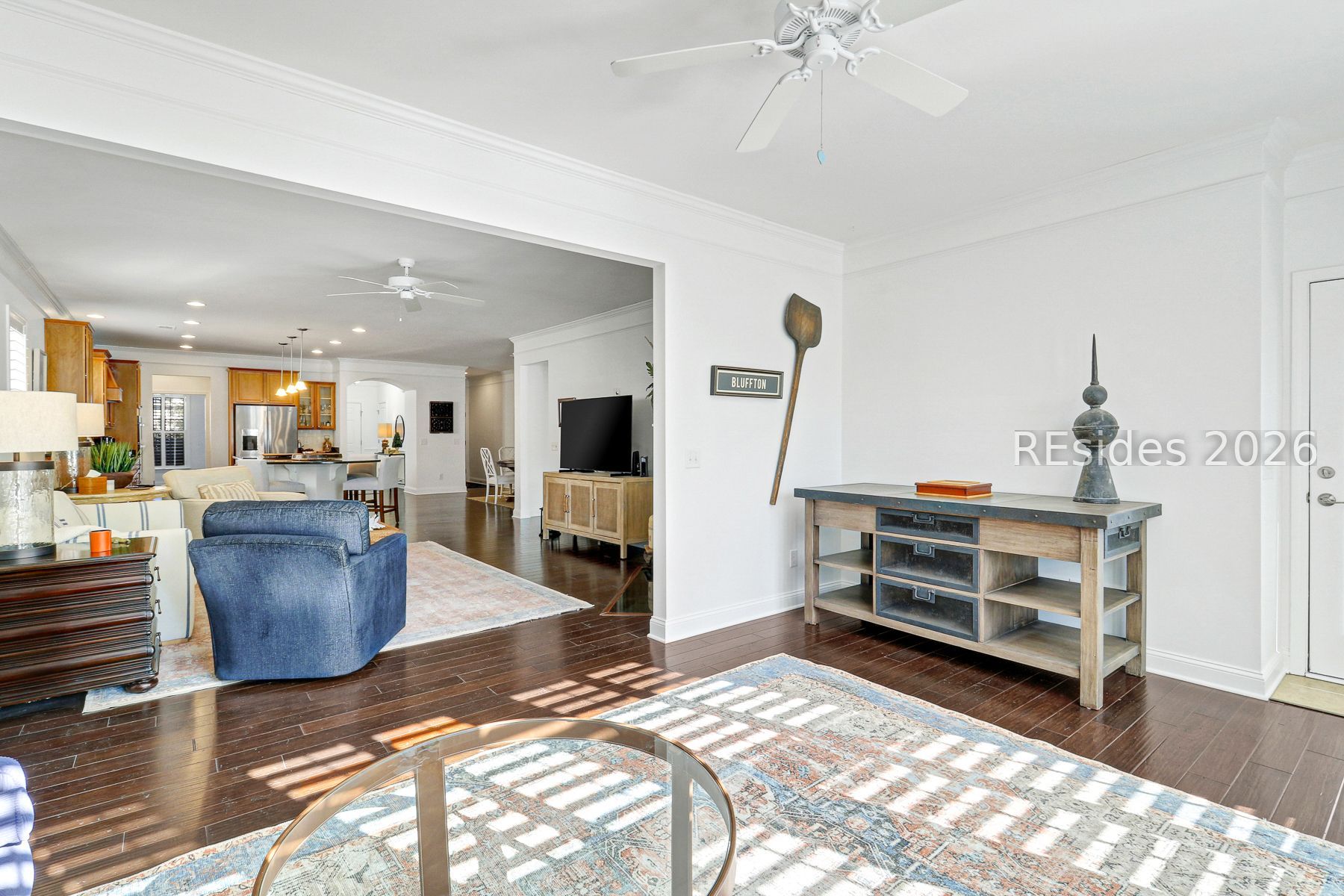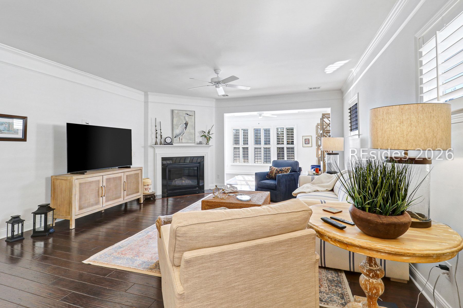 Enjoy Lowcountry charm in this beautifully maintained 2-bed/2-bath home located in the sought-after Village Green neighborhood of Sun City North. The light-filled interior features engineered hardwood floors, plantation shutters, neutral paint, wainscoting and multi-piece crown molding for an elegant finish. A well-appointed kitchen boasts maple cabinets and a gas range, while the sunroom and cozy fireplace invite relaxation. The primary suite includes an en-suite bath, and the second bedroom offers versatility for guests or office use. Step outside to a private, wooded backyard with serene lagoon views. The 2-car garage has an extra tandem bay ideal for a golf cart or additional storage. Sun City Hilton Head is the Lowcountry's premier active-adult community, spanning more than 5,725 acres with over 7.5 miles of trails. Residents enjoy three golf courses-Hidden Cypress, Okatie Creek and Argent Lakes-providing 54 holes and 230 tee placements, along with six pools (two indoor, four outdoor), three fitness centers, tennis courts, pickleball courts, bocce courts, a softball field, croquet, and community gardens. Sun City North adds eight pickleball and two tennis courts, the executive Argent Lakes course and the Lakehouse amenity center with indoor and outdoor pools, a state-of-the-art fitness center and meeting rooms. A performing arts center, crafts center, woodshop and more than 100 clubs and social groups make this 55+ community a vibrant place to live.This turnkey home offers a move-in-ready retreat and a gateway to the resort-style lifestyle of Sun City North, just minutes from Hilton Head Island and Bluffton.