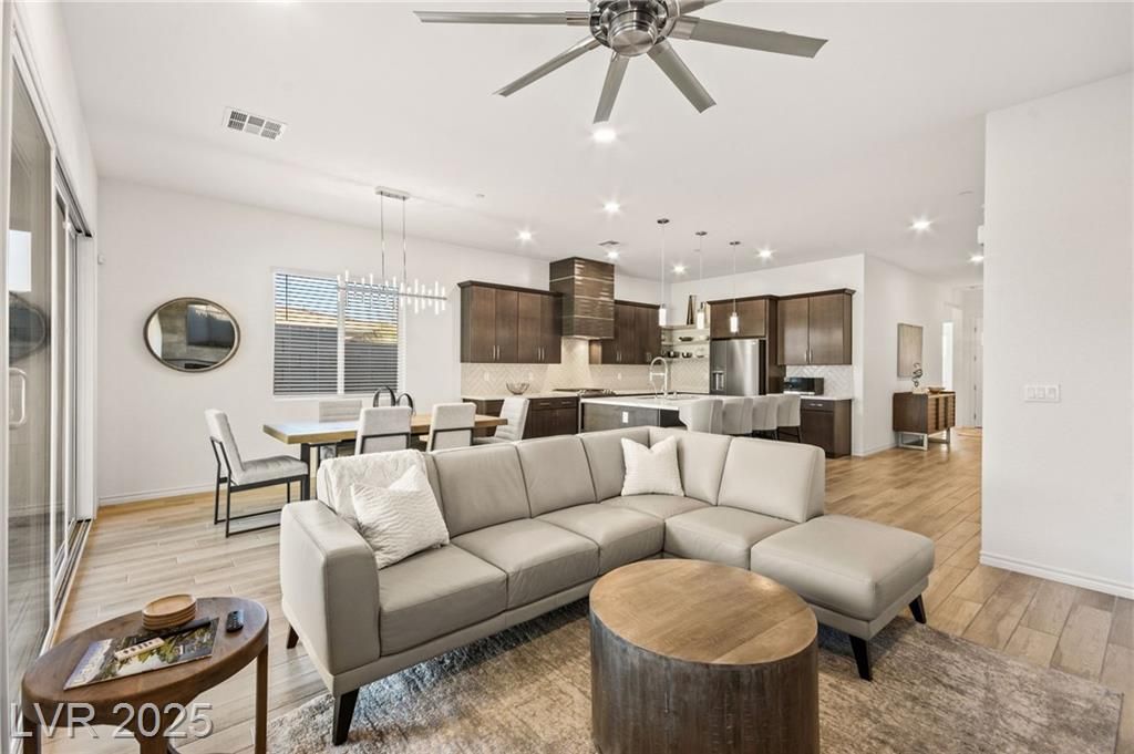 Discover 52 Reverie Heights Ave, a stunning modern home in the desirable Lake Las Vegas community. Completed in 2022, this 4-bed, 3-bath property offers 2,281 sqft, including an attached casita! Inside the main home, enjoy a warm family room centered around an elegant electric fireplace—ideal for cozy nights in. Both the main and casita kitchens are outfitted with striking quartz countertops and stylish backsplashes. The private casita has its own entrance and garage, making it perfect for guests, multi-gen living, or rental use. The seller also has $3,500 worth of pool renderings, should the next owner wish to add a custom pool to enhance the property further. LLV residents enjoy exclusive amenities: pools, tennis, a fitness center, and golf membership access. Plus, the buyer will receive a waived $25,000 LLV Sports Club fee—a rare advantage! Don’t miss this opportunity to own a move-in-ready retreat in one of Vegas' premier resort-style communities.