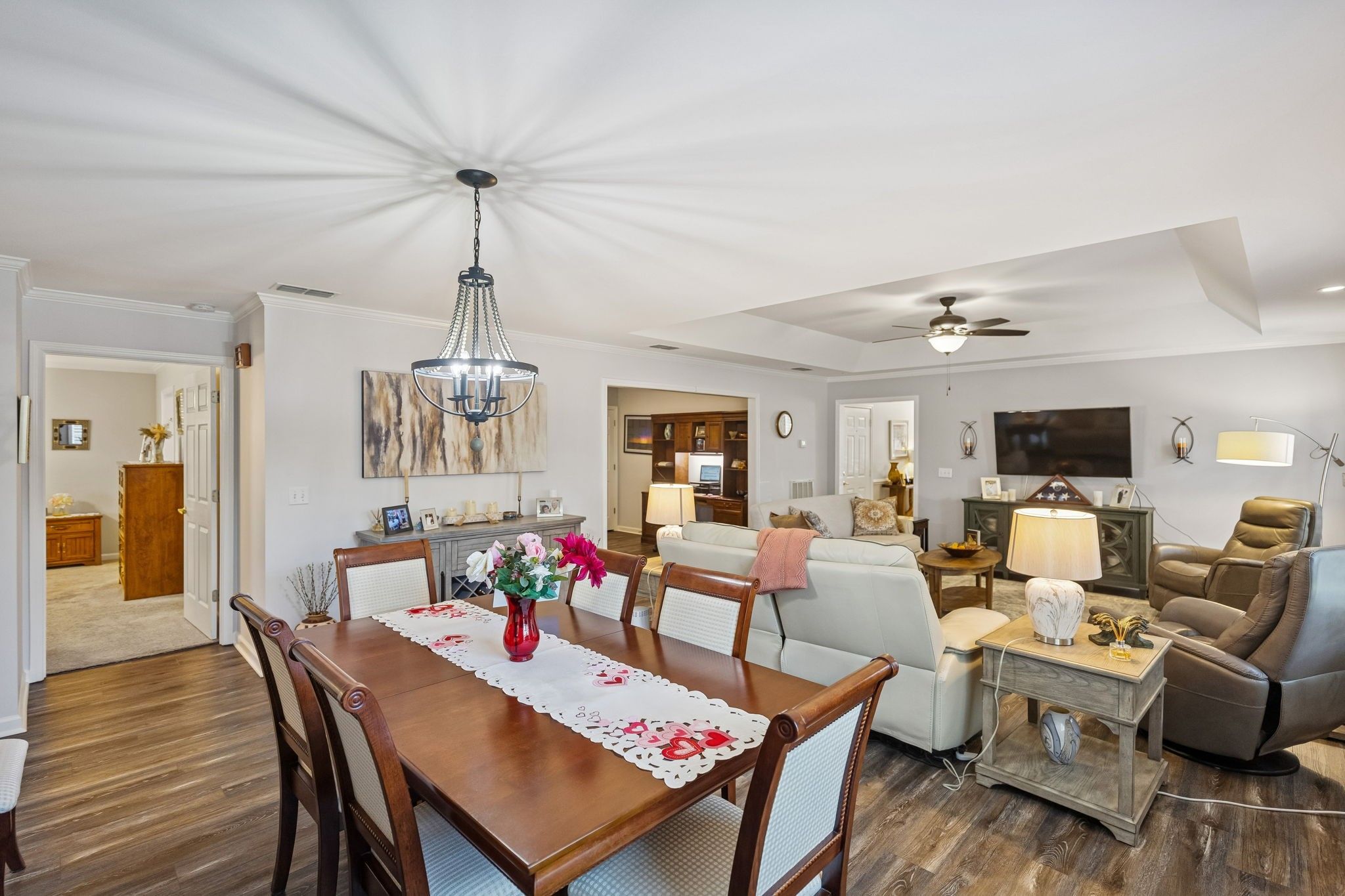 Located in The Cottages at Innsbrooke in the 'Boro - a wonderful 55+ community complete w/community pool, clubhouse (w/event area, library and exercise area)! This GORGEOUS 2 bedroom, 2 bath home with 2-car garage, all on one level with NO stairs, has updates from top to bottom and is meticulously cared for! Home features a covered front porch and a rear private patio area to entertain friends or enjoy a cup of coffee in the morning! The inside of this home has a large Living/Dining area complete with natural gas fireplace, a bedroom in the front of the home next to the guest bath, a flex room that is currently used as an office, but could be used for anything such as a bedroom, den/tv room, media room, craft room or keep it as an office! The Primary Suite has a trey ceiling, walk-in closets as well as an area for your washer & dryer (1.5 yrs old and will remain with home!), and an adjoining Bath with beautiful cabinetry, walk-in tile shower, and double vanities! All appliances will remain in this cheerful and well appointed Kitchen including Refrigerator, and it has a great pantry and Eat-In area in the Kitchen too! Park your vehicles in the 2-car garage complete with a nice 2-part epoxy floor, space for extra storage, including a pull-down attic for additional storage. The Cottages at Innsbrooke is convenient to grocery stores, banks, restaurants and shopping nearby, with medical facilities only 10-15 min away! Come see this BEAUTY which could be YOURS! All offers to be on TAR Forms!