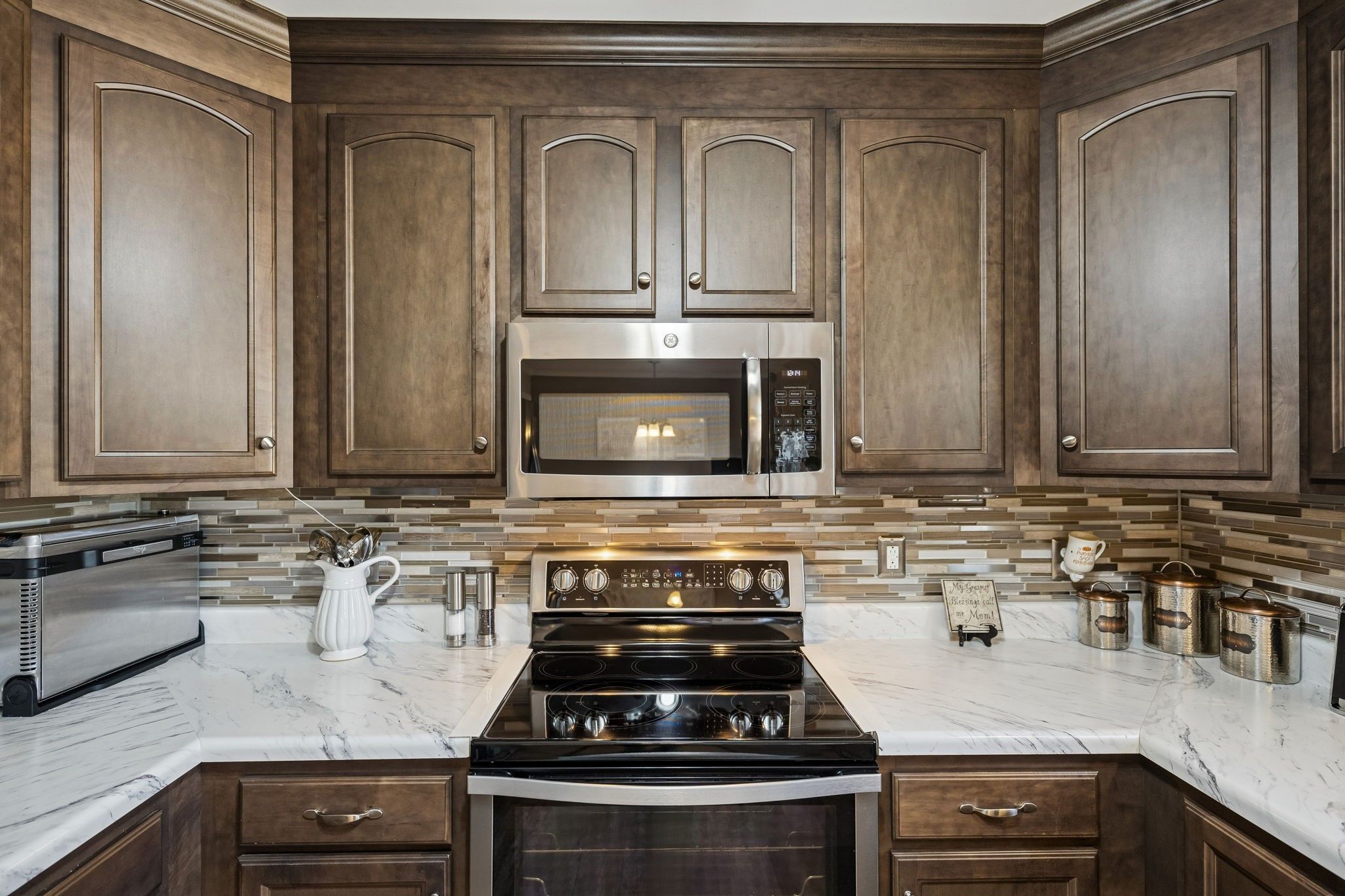 - Electric Range, Dishwasher, Disposal, Dryer, Ice Maker, Microwave, Refrigerator, Stainless Steel Appliance(s), Washer
