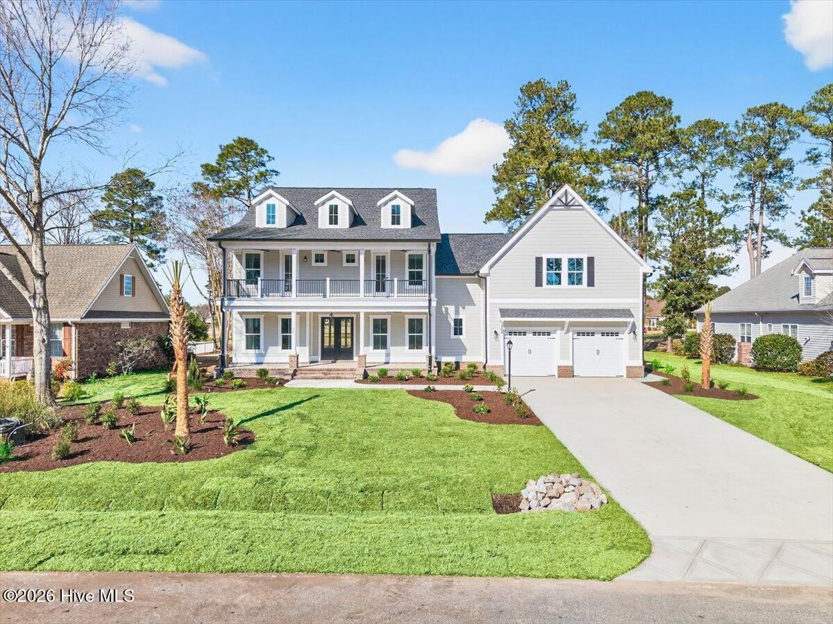Another exceptional signature residence by Blue Turtle Holdings, this breathtaking Charleston-style new construction is set within the highly coveted Brunswick Plantation and offers sweeping fairway views from dual rear verandas. Designed with an open-concept layout, the home features a dramatic 20+ foot vaulted ceiling in the great room, an abundance of oversized windows, and a 12-foot sliding glass door that floods the space with natural light. The chef-inspired kitchen is a true showpiece, outfitted with premium THOR appliances, and complemented by a beautifully appointed Butler's pantry—perfect for both everyday living and entertaining. Thoughtful luxury details abound, from the gas fireplace with marble surround and custom built-ins, to quartz countertops throughout, and an array of high-end finishes too extensive to list. The primary suite is a private retreat, featuring a spa-like en suite with an indulgent wet room, complete with a freestanding soaking tub and two rainfall shower heads — a truly serene escape. Brunswick Plantation is conveniently located to pristine local beaches, dining, entertainment, and shopping. Myrtle Beach is 30-40 mins to the south, and Wilmington is 45-60 mins to the north.