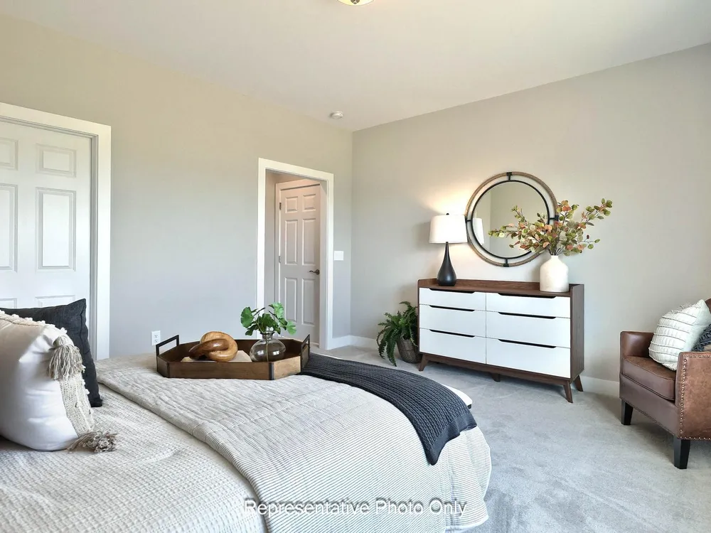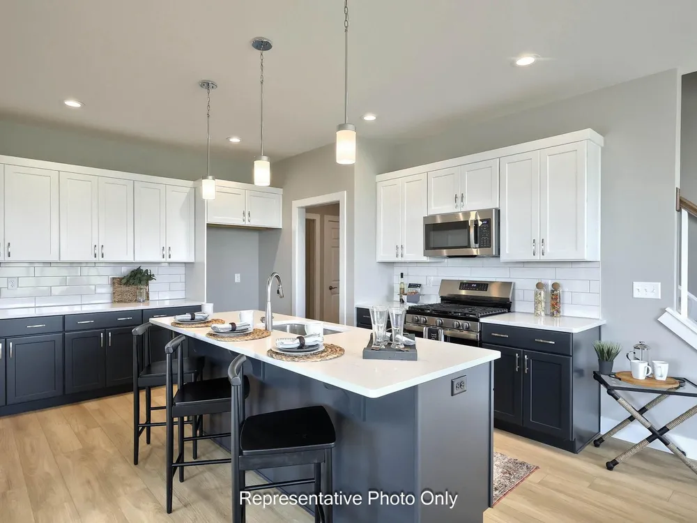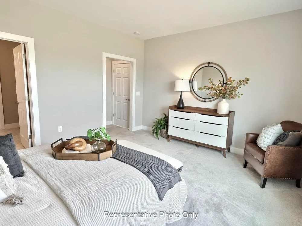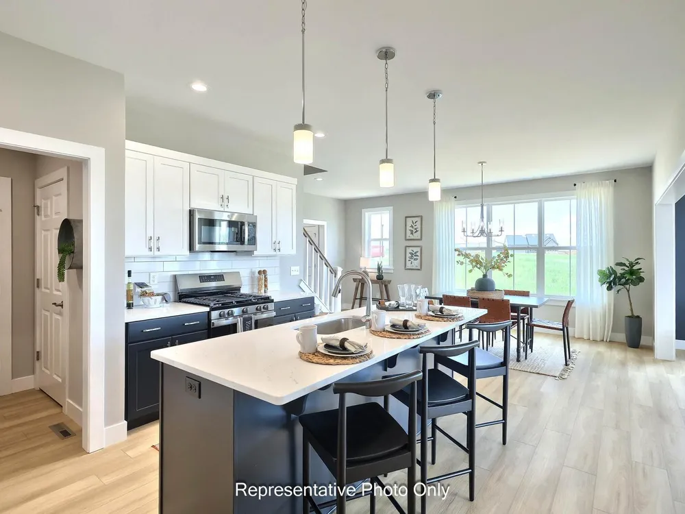UNDER CONSTRUCTION – AVAILABLE THIS WINTER: This charming new duplex at Winding Creek 55+ is a thoughtfully designed 2-story home with 3 bedrooms, 3 full baths, and a 2-car garage with mudroom entry. The front entry opens to the foyer, secondary bedroom and bathroom, perfect for guests. Stylish vinyl plank flooring flows throughout the main living areas. The kitchen, well-appointed with quartz countertops, a tile backsplash, stainless steel appliances and a large pantry, is adjacent to the dining area and great room to create an open plan. The great room makes a grand impression with its cathedral ceiling and beautiful fireplace with floor-to-ceiling stone. Sliding glass door access in the great room leads to a composite deck, perfect for outdoor relaxation. Tucked quietly to the back of the home, the owner’s suite features an oversized closet and a private bathroom with a tile shower and double bowl vanity. A third bedroom, full bathroom, loft, and finished storage area are located on the second floor.