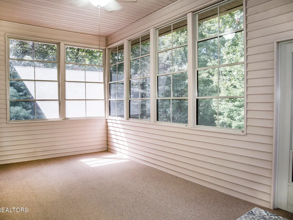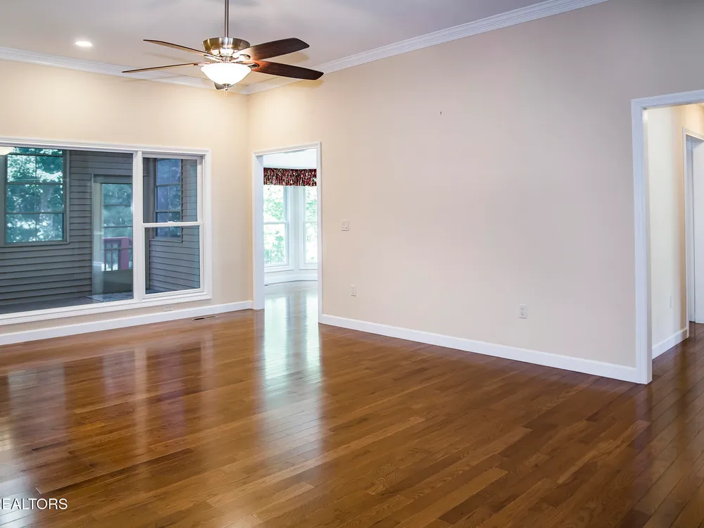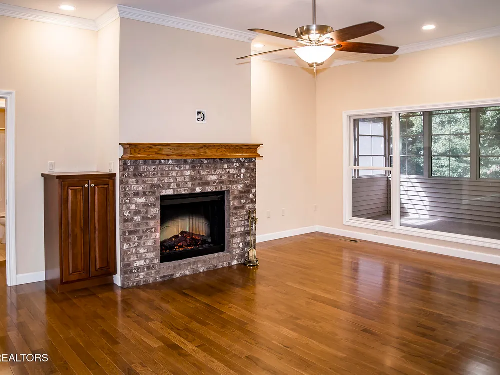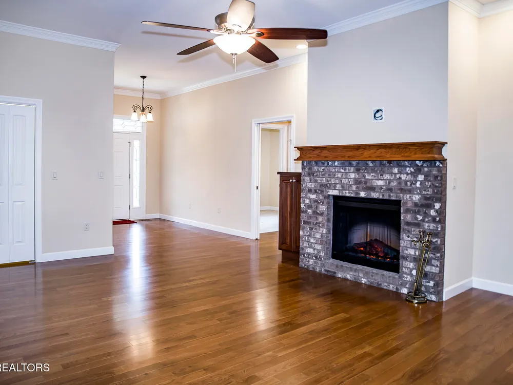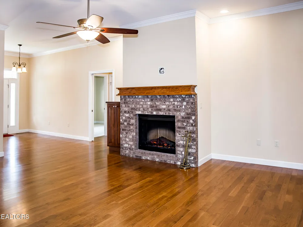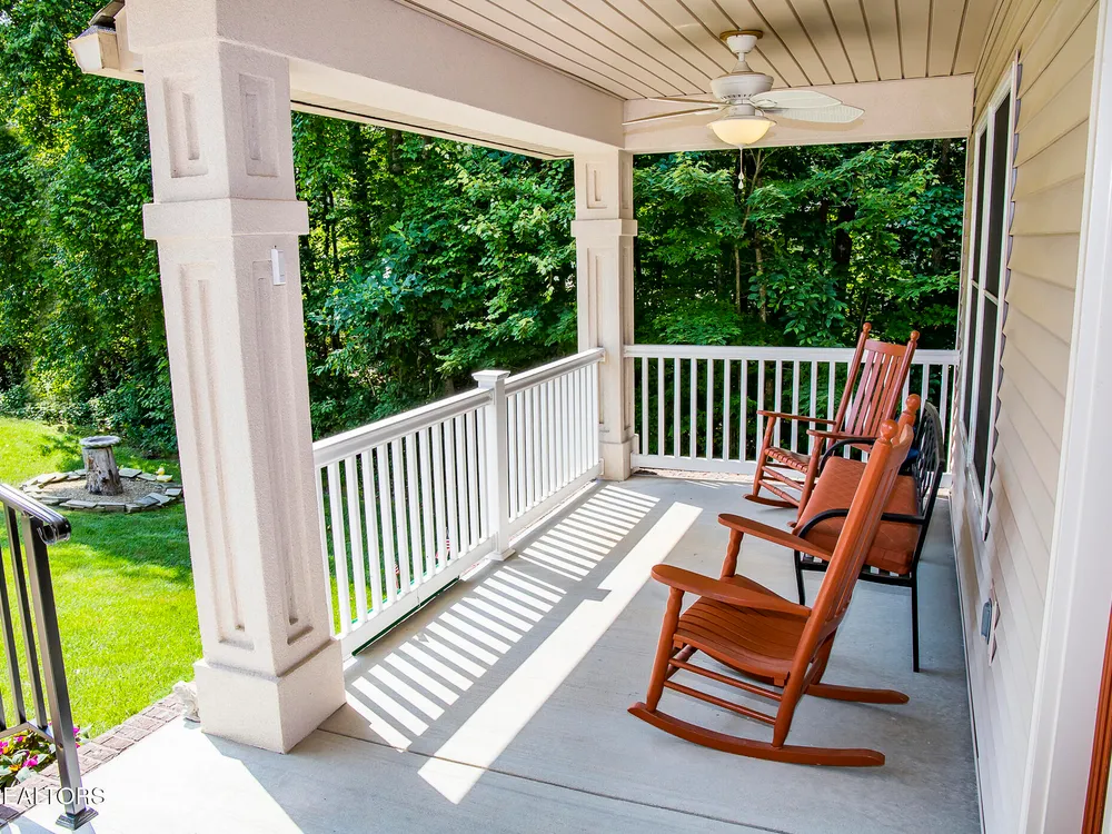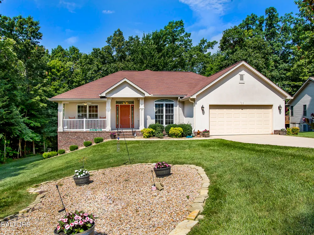 EXCEPTIONAL VALUE-ONE OWNER-WELL MAINTAINED-LOADED WITH EXTRAS!!! This 1,756 SqFt 3 bedroom, 2 Bath, 2014 split bedroom home is in a very quiet section of the Fairfield Glade Resort Community & backs up to a 4 acre section of common property that can not be built on. The front of the home greets you with a 20'x 7.5' covered sitting porch with ceiling fan. You enter the home via the 8'x 11' hardwood floor entryway with 10' ceiling & crown molding. The 10' ceiling with crown molding & hardwood flooring continues into the 20'x 16.25' living room that features a brick fire place with wooden mantel. The 22'x 11.3' eat-in kitchen features a breakfast bar, a eat-in area with windows that look out into the wooded private backyard . This area also offers access to the 17.5'x 9.5' three season room with 10' ceiling & ceiling fan - & access to the back yard. Back in the kitchen you will find solid surface countertops, soft close doors & drawers on all the cabinets, a pantry, Whirlpool stainless steel appliances including, dishwasher, electric range, microwave, & refrigerator. Plus a disposal & under cabinet lighting. The Dinning room features a 9' ceiling with crown molding, chair railing & hardwood flooring. The Master suite offers plenty of room in it's 16'x 12' bedroom, 11.5'x 9.5' bathroom with walk-in 2 head tiled shower, 36 inch high double sink comfort height vanity & a 9.66'x 5.75' walk-in closet. The guest side of the home can be closed off for privacy by a pocket door located in the wall between the living-room & the guest room hallway. The front guest room is 11.66'x 10.5'. The back guestroom/office/den is a roomy 12.5'x 11.66'. In between the two guest rooms is the guest bathroom with a tub shower & a 37 inch high comfort height vanity. The laundry room comes with both washer & dryer and is situated just off of the oversized 21'W x 21.25'D garage with 9' ceiling & insulated garage door with opener. Under the home is the standup & dehumidified crawlspace basement. This is a great dry space for extra storage or a workshop area. This area also offers easy access to the homes infrastructure. The indoor comfort of this home is enhanced by the whole house Honeywell humidifier & the whole home Carrier electrostatic air filtration system. This Beautiful & well maintained original owner home is ready for you to write it's second chapter. Buyer to verify all measurements and information prior to making an offer.