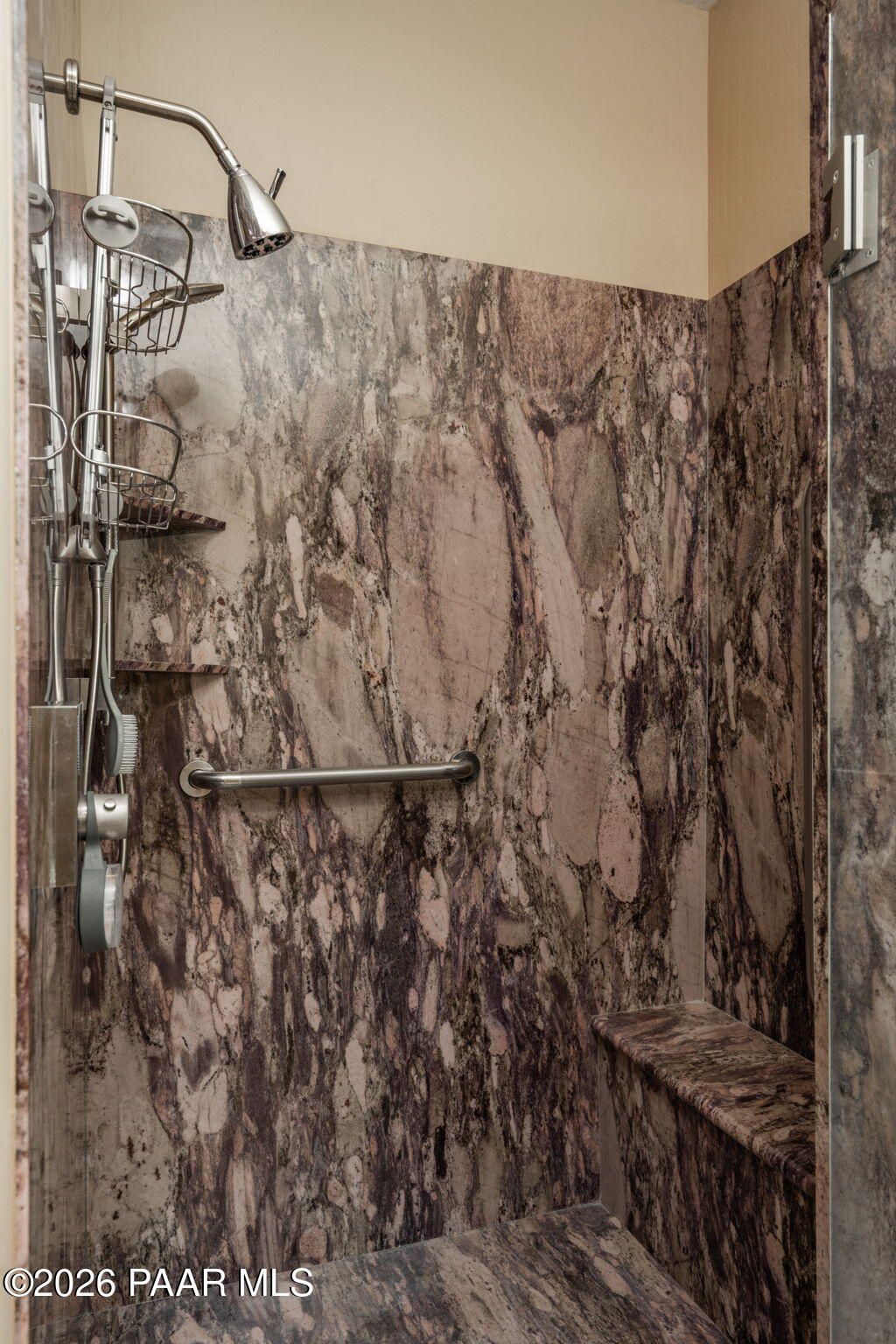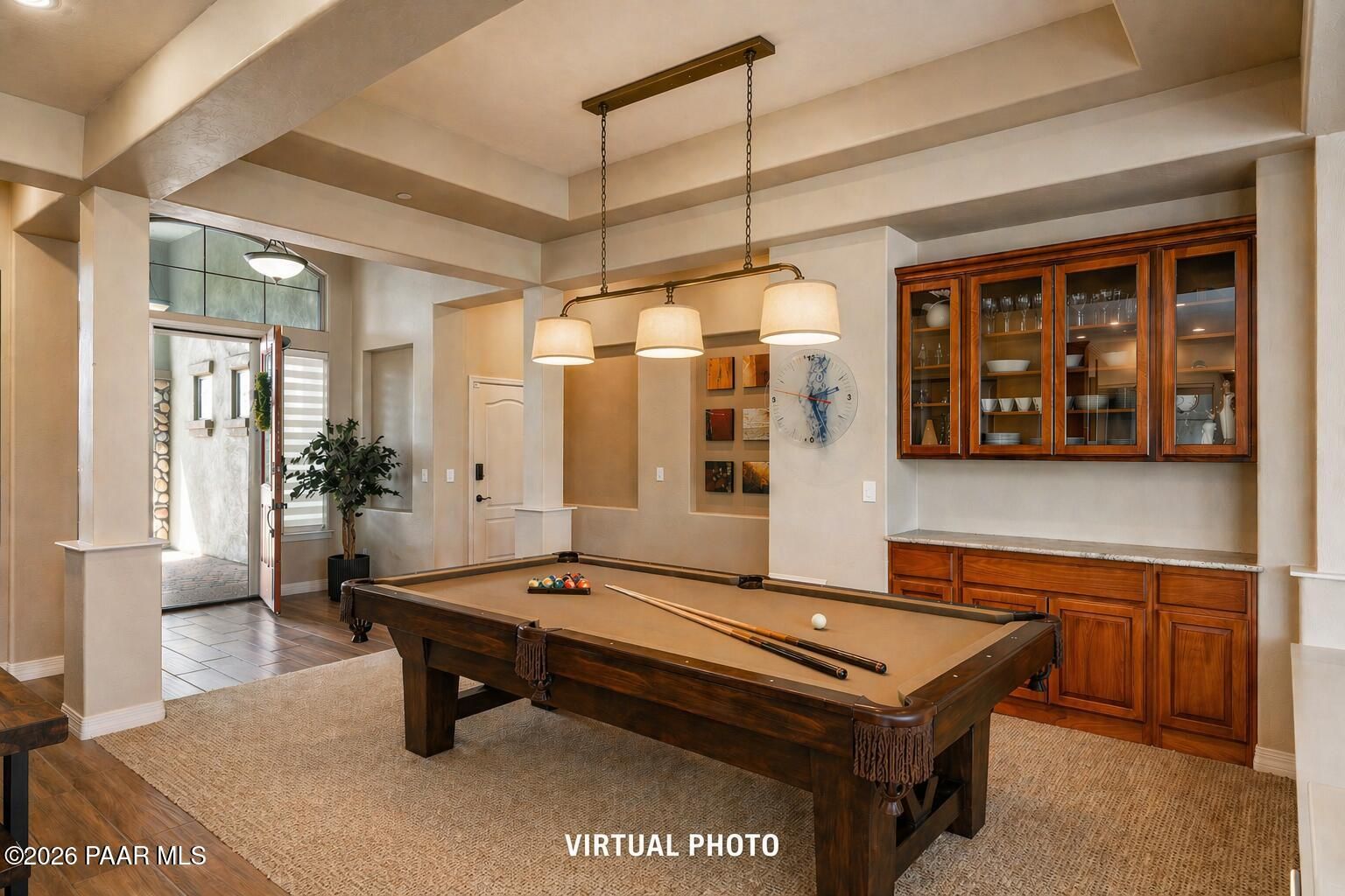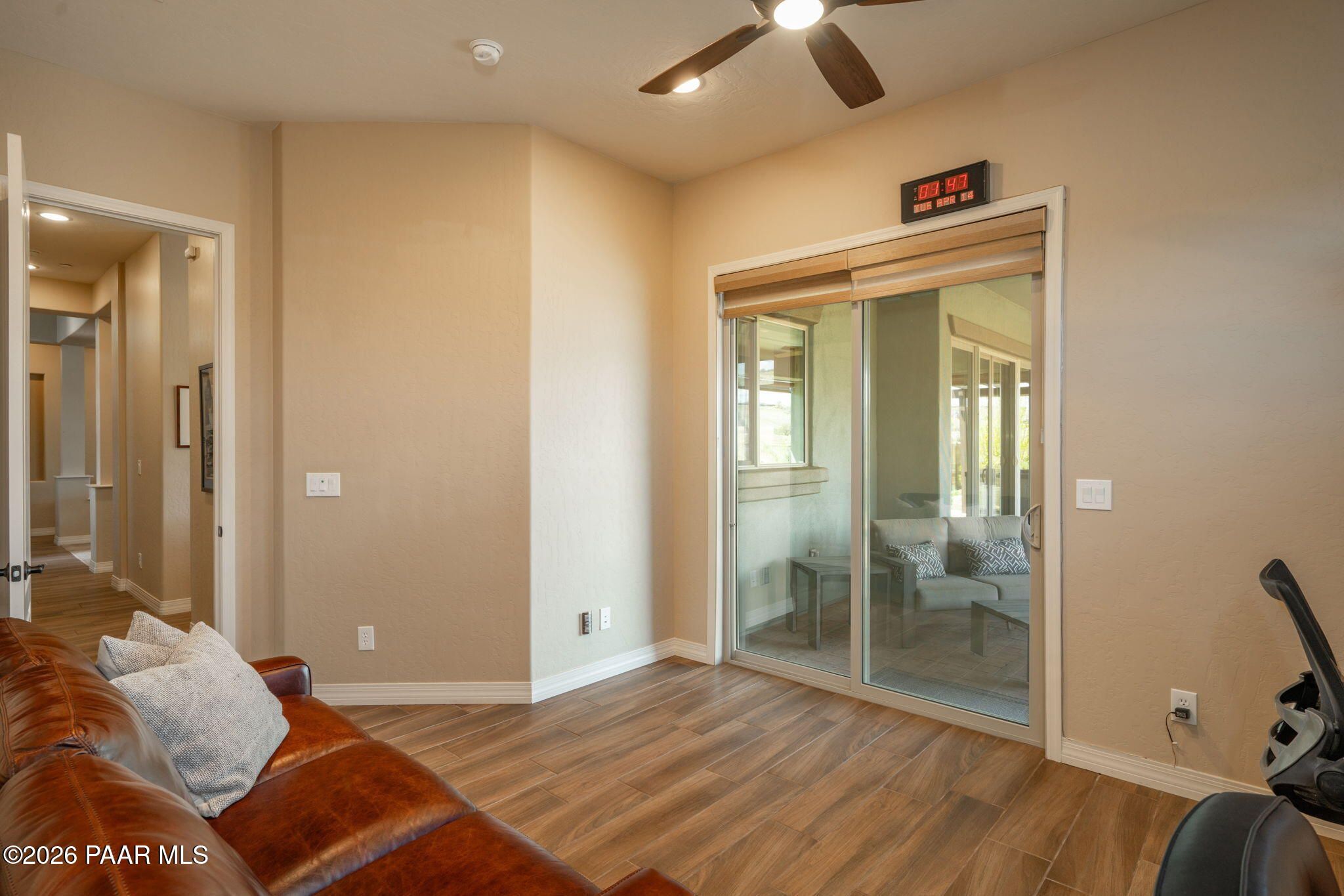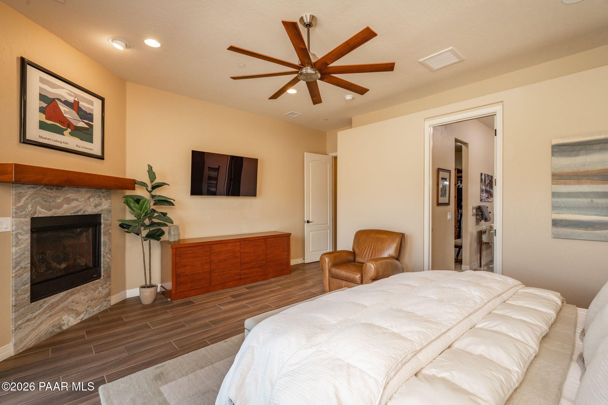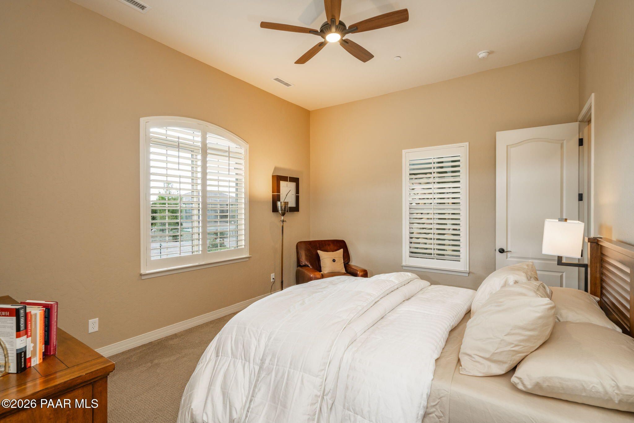 Refined single-level luxury living in the highly desirable Granite Dells Estates, set on a premium 0.49-acre cul-de-sac view lot with neighborhood access to the Peavine Recreation Trail. This highly upgraded Carrington semi-custom home offers 3,132 square feet of thoughtfully designed living space with 4 bedrooms, 3 bathrooms and an extended 3-car garage. A desirable split floor plan provides both privacy and functionality, while expansive hideaway sliding doors create seamless indoor-outdoor flow. Move-in ready with no construction delays or cost uncertainty, this residence is ideal for full-time living, a second home or a lock-and-leave lifestyle in the heart of Prescott. Outdoor living is elevated with approximately 360 square feet of covered patio space designed for year-round enjoyment. The backyard is an entertainer's dream, featuring a spacious outdoor kitchen prep island, large stainless steel natural gas grill, stamped concrete patio with a 14x20 wood-grain aluminum pergola, gas outdoor fireplace, retractable privacy sun screens and a private putting green. Professionally designed landscaping includes raised flower beds, low-voltage lighting, and a timed drip irrigation system, all enclosed by a privacy block wall.Inside, the gourmet kitchen is designed to impress with a professional-grade appliance suite including Wolf, Sub-Zero, and Cove, complemented by quartz countertops, a full backsplash and a large island with prep sink and bistro seating. Custom European Beechwood cabinetry with soft-close features, dual Blanco sinks, a walk-in pantry with motion lighting, and designer accents elevate both form and function. The adjacent formal dining room with built-in buffet and china cabinetry, along with a sunlit breakfast nook, offers versatile spaces for both casual and formal entertaining.The primary suite serves as a private retreat with a gas fireplace, spa-inspired bath featuring a walk-in shower with bench seating, in-wall heater, dual vanities and an oversized custom walk-in closet with built-ins. A private patio entrance enhances the suite's tranquil feel. An additional ensuite bedroom provides comfort for guests or multigenerational living, while another bedroom and a dedicated office or fourth bedroom includes custom built-ins and private patio access, offering flexibility for today's lifestyle. Extensive interior upgrades include wood-look ceramic tile flooring, pre-wired surround sound, raised counters, gas fireplaces, whole-house water softener, Hunter Douglas automated blinds with shutters, tinted upper windows and retractable patio screens. The extended 3-car garage is just as impressive, featuring epoxy flooring, built-in cabinetry, heavy-duty shelving and a remote drop-down storage lift all while easily accommodating a full-size pickup truck. Additional features include a tankless water heater with recirculation pump, whole-house sprinkler system and a 240V outlet for EV charging. Residents enjoy access to exceptional community amenities including a clubhouse, pool, spa, fitness center and pickleball courts set against the iconic Granite Dells backdrop. Conveniently located near shopping, dining, medical services and historic downtown Prescott, with easy highway access to Phoenix and Flagstaff. This home combines Carrington build quality, premium upgrades, exceptional outdoor living, views and a prime cul-de-sac location delivering the best of the Prescott lifestyle.