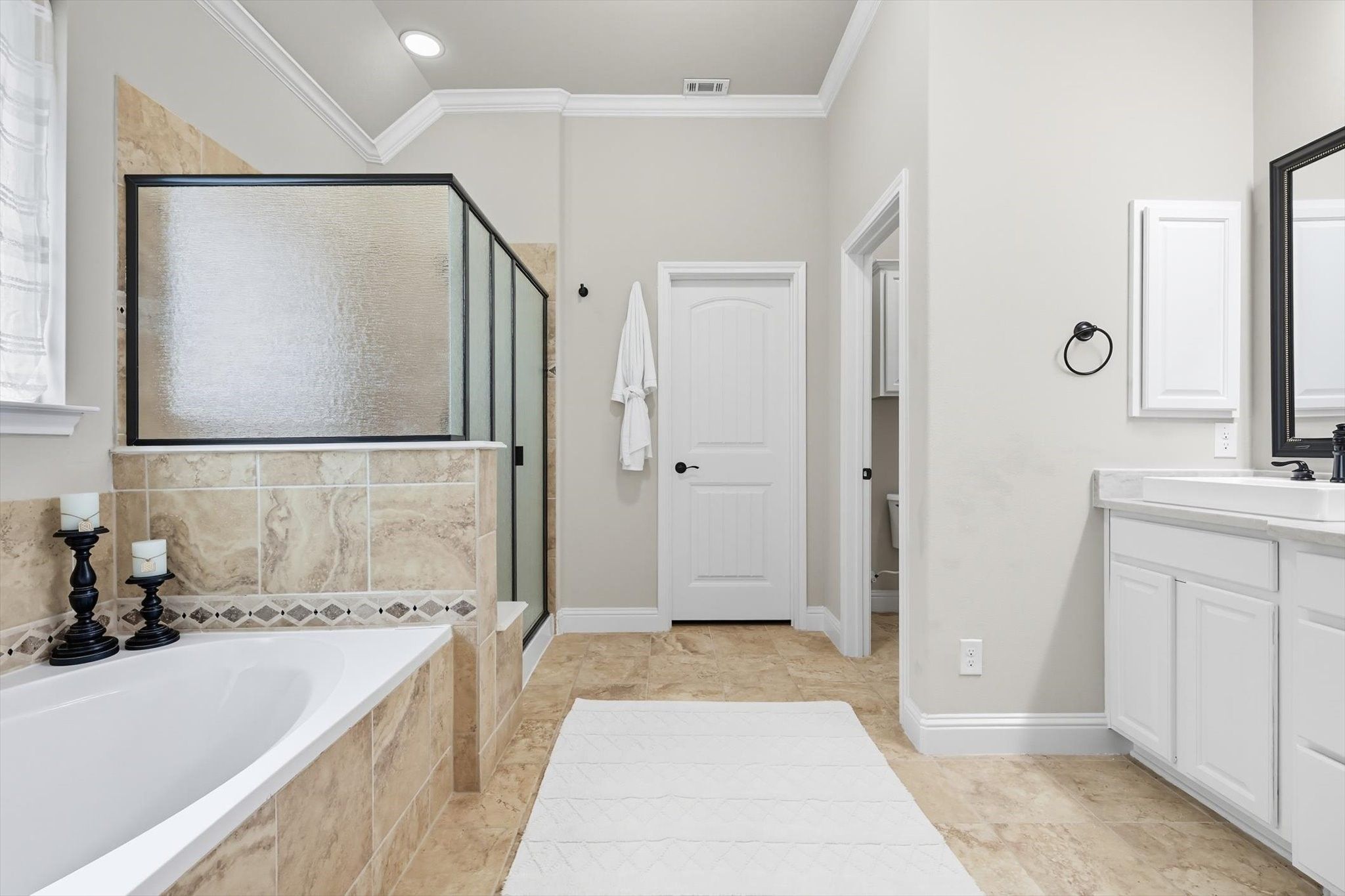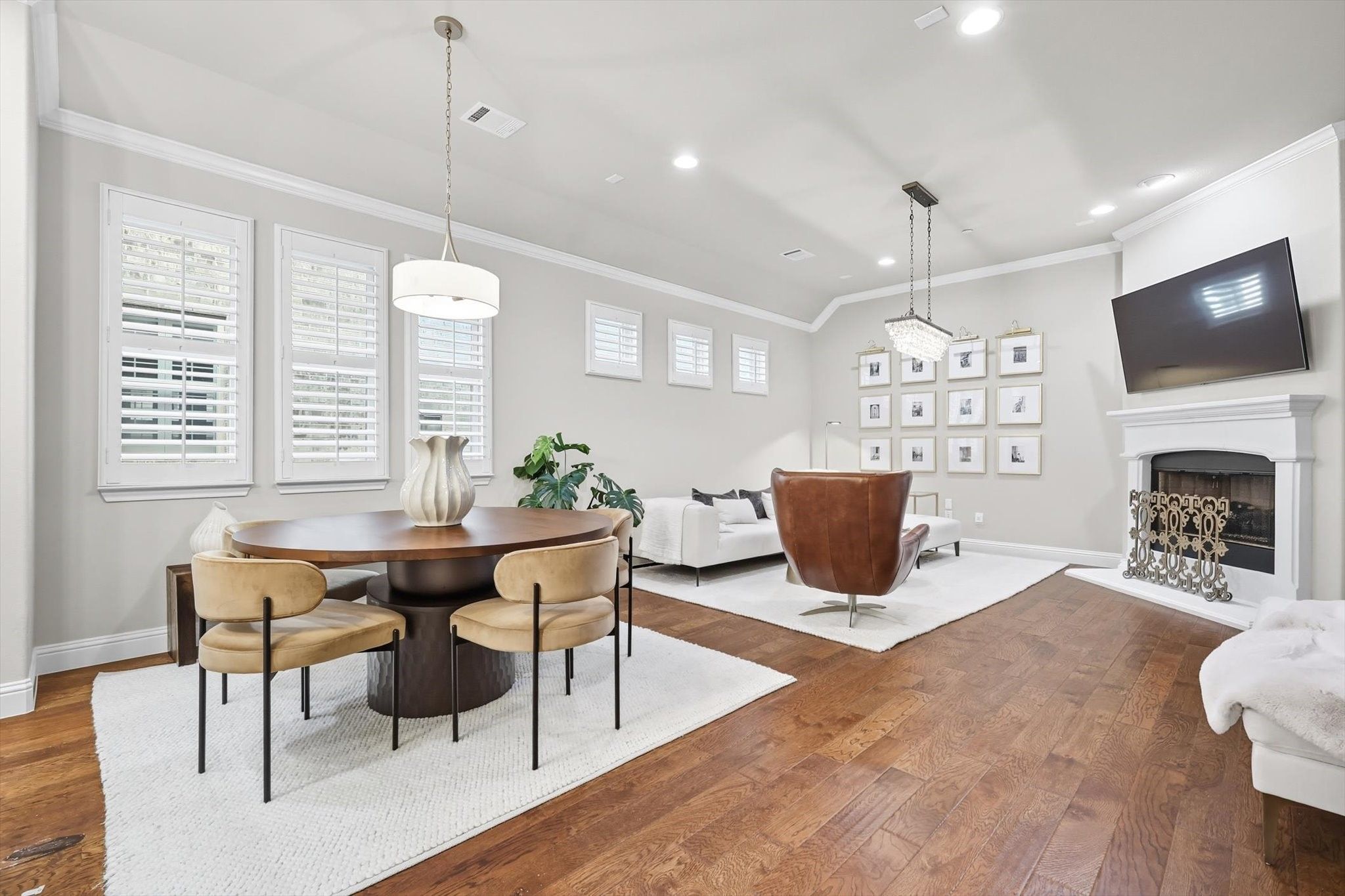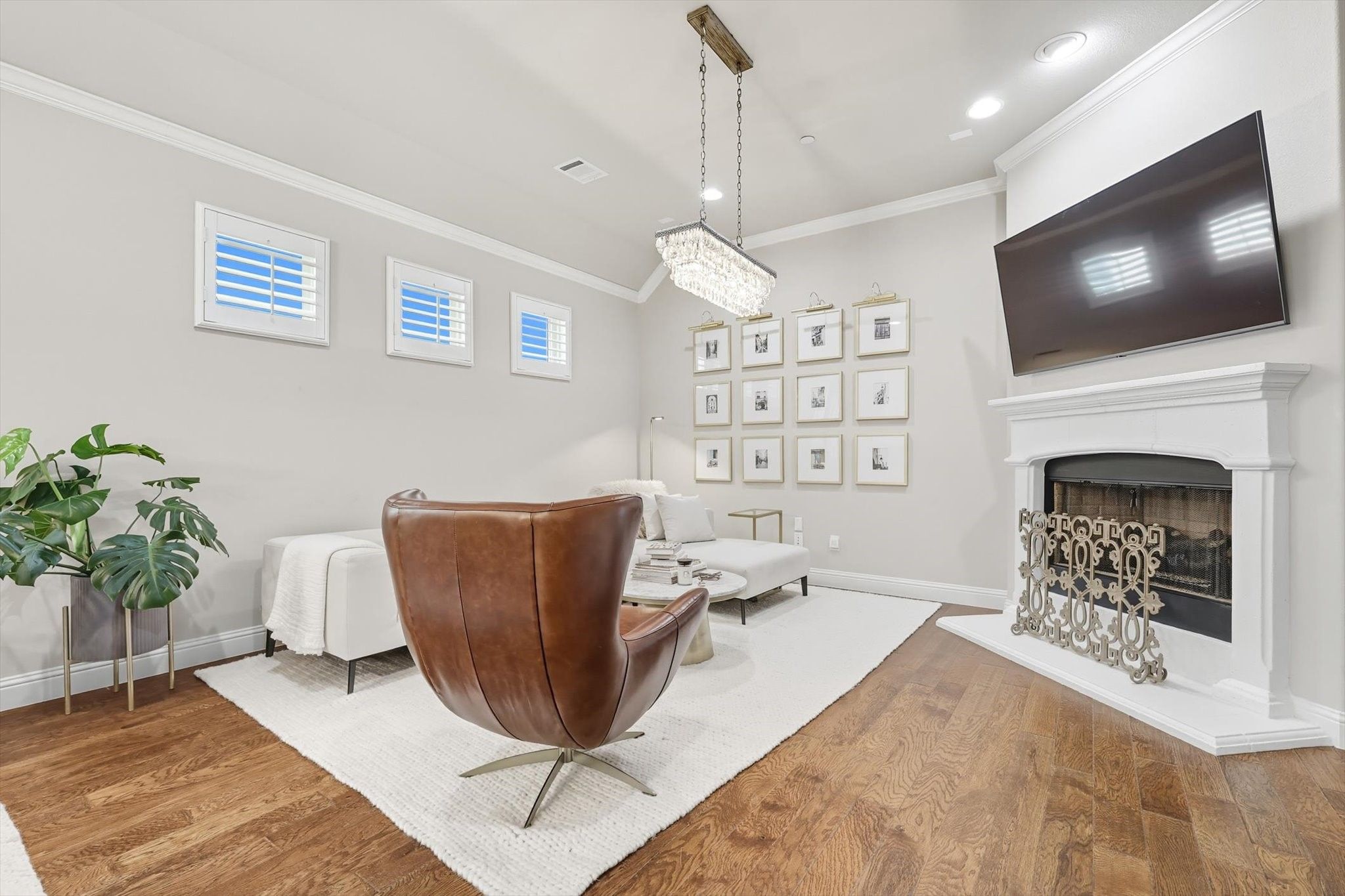 Experience refined living in this beautifully updated 2-bdrm, 2-bath detached condo + an office & 2-car garage, nestled in the prestigious Retreat at Craig Ranch. This elegant residence offers the ultimate lock-and-leave lifestyle, with all lawn care & exterior maintenance covered by the HOA—freeing you to enjoy the finer things in life. Step inside to a thoughtfully designed interior, where rich engineered wood flooring extends through the main living spaces & into both bedrooms, creating a cohesive & inviting ambiance. The gourmet kitchen is a culinary masterpiece, featuring quartz countertops, crisp white cabinetry, designer gold fixtures & stainless steel appliances. A new gas hook-up & range elevate the cooking experience, while a striking designer backsplash adds visual flair. The oversized center island with bar seating opens gracefully to the dining area & spacious family room—perfect for entertaining or relaxing by the fireplace with a new gas starter & high-end finishes throughout. A set of French doors reveals a private home office—ideal for remote work or quiet study. The primary suite is a sanctuary of style & serenity, offering a spacious bedroom retreat & a spa-inspired en-suite bath with a garden tub, rain-glass walk-in shower, dual quartz vanities & a generous walk-in closet. A thoughtfully designed split guest suite provides comfort & privacy, with an impeccably updated guest bathroom showcasing new tile, lighting, fixtures & flooring. Step outside to a serene covered patio, perfect for morning coffee or intimate evening gatherings. The meticulously landscaped backyard, enclosed with striking wrought iron fencing, provides just the right amount of space—beautifully maintained by the HOA for worry-free enjoyment. Residents also enjoy access to the newly renovated community clubhouse, complete with a state-of-the-art fitness center, inviting club room & sparkling pool with spa. All of this, just moments from premier shopping, dining & major highways.