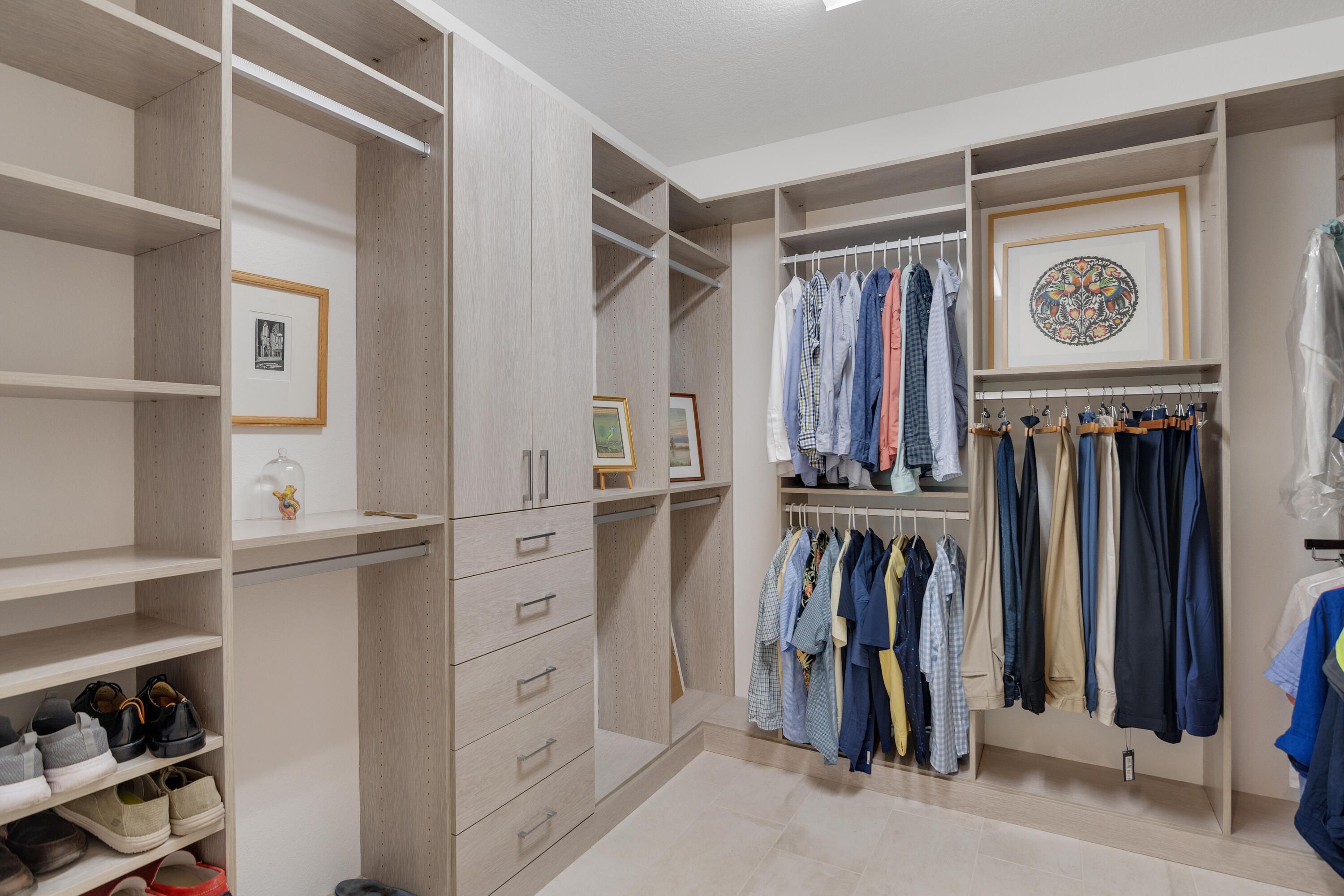 - Built-in Shelving, Kitchen Island, Pantry, Split Bedrooms, Walk-In Closet(s), Living/Dining Room, Eat-in Kitchen, Primary Downstairs