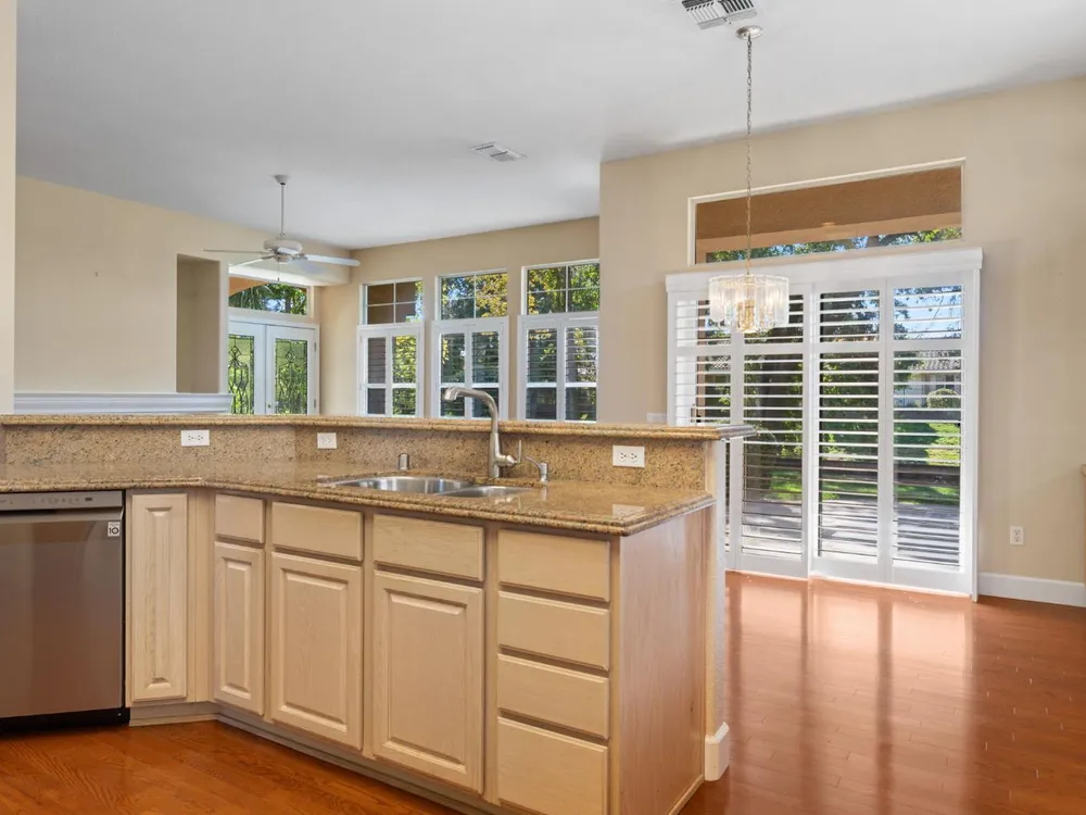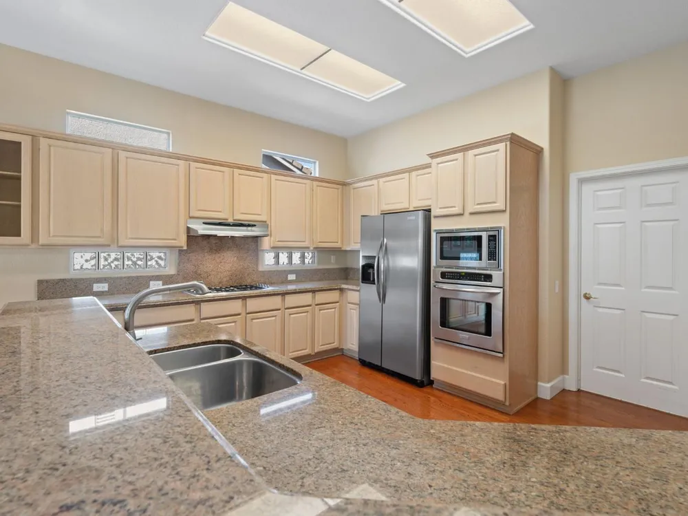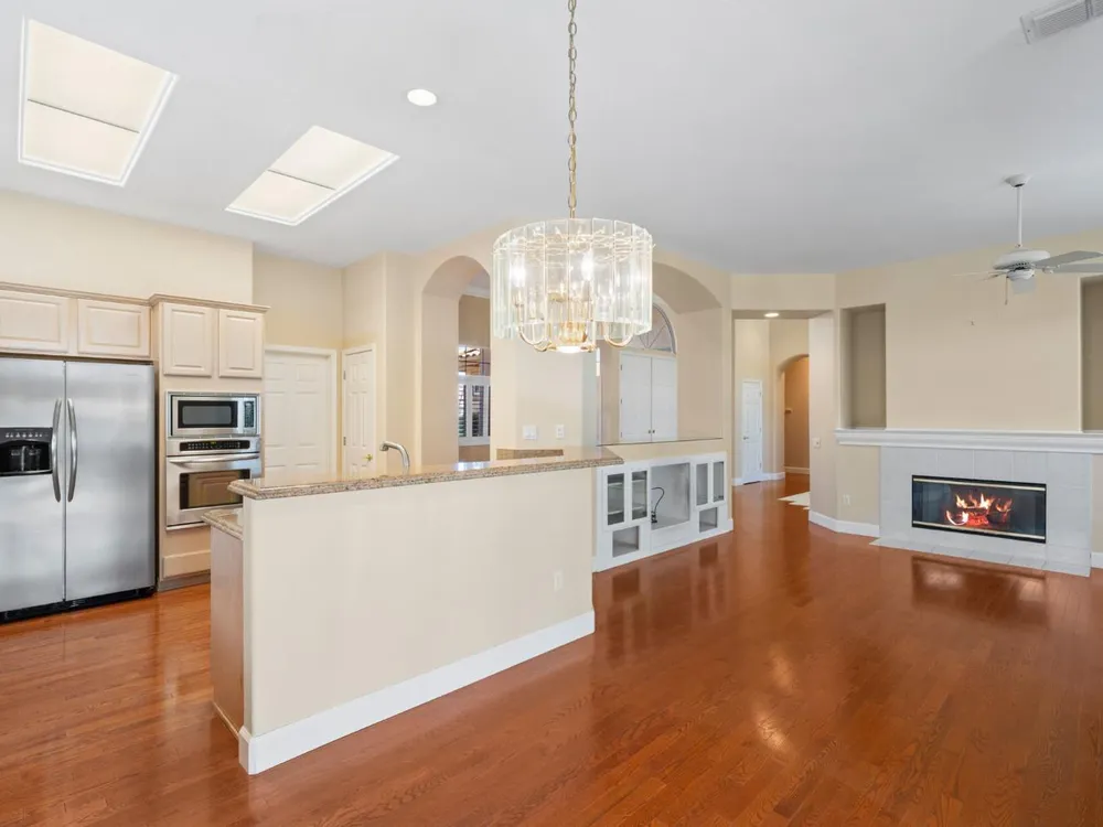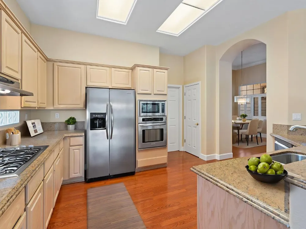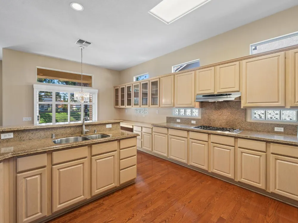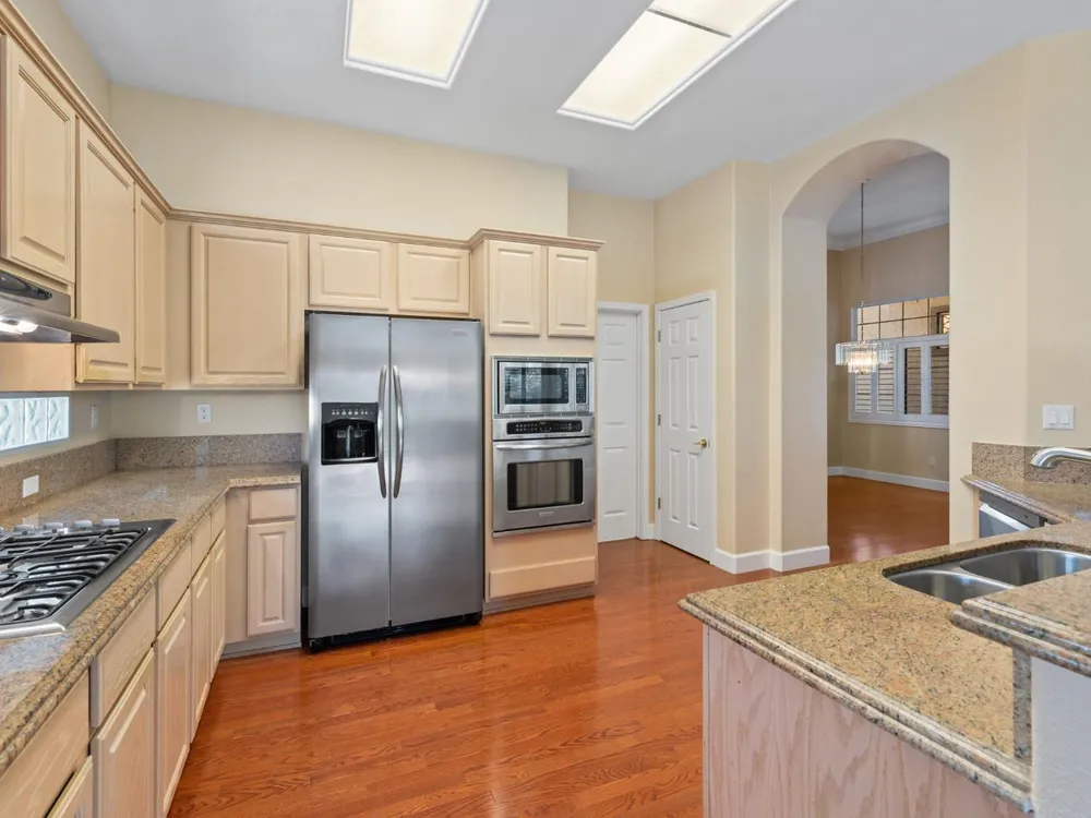 Welcome to Sun City Roseville, a premier 55+ active adult community. This beautifully maintained Hearthwood model offers 3-bedrooms, 2.5 bath home with approximately 2362 square feet of thoughtfully designed living space, perfect for comfort, entertaining, & enjoying the good life. Step inside the kitchen featuring granite counter tops, stainless steel appliances, & ample counter space and cabinetry-ideal for both everyday meals & hosting friends and family. The open-concept layout flows seamlessly into the spacious living & dining area filled with natural light. Enjoy the spacious family room with fireplace, and double glass doors leading into the beautifully landscaped back yard. The primary suite offers a tranquil retreat with a generous en-suite bath, while two additional bedrooms providing flexibility for guests, a home office, or hobbies. Also, located on a greenbelt lot. The privacy of this back yard is sure to please. Additional features newer heat & air, & include a two a half car garage with a dedicated golf cart parking area, perfect for quick rides to the clubhouse, shopping or a round of golf on the championship golf course. Don't miss the opportunity to enjoy the lifestyle you've been dreaming of in one of Northern California's most desirable 55+ communitie