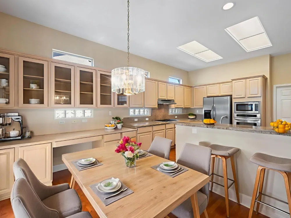 - Gas Cooktop, Gas Water Heater, Range Hood, Ice Maker, Dishwasher, Disposal, Microwave