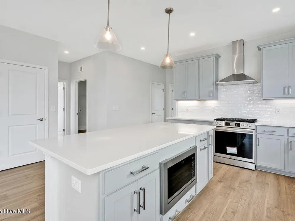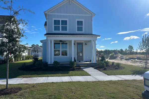 Just a short walk to the new amenities (still under construction), Our Hyde, built by New Leaf Builders, floods your living and dining rooms with an abundance of natural light from windows at the front and sides of your home. The Hyde makes everyday living a pleasure with easy access to your kitchen from your entryway plus an ample walk-in pantry for plenty of storage. With your owner's suite on the main level, climbing stairs to access your retreat at the end of the day is a thing of the past. The laundry room and mudroom are located on the main floor to ensure all the conveniences of main level living with the space and roomy square footage of a two-story home. The upper level gives both you and the kids or your guests privacy with a loft, perfect for a homework nook or 2nd floor arts and crafts spot. You will also find coveted walk-in closets at both guest bedrooms, offering ample storage for kids and out of town guests alike. Riverlights is a new home community surrounded by the coast and Cape Fear River, where nature is part your everyday routine. With easy access to the Cape Fear River, the intercoastal waterways, a family-friendly pool, a new dog park, gym and a 38-acre lake, you can kayak, paddleboard or stroll along the community dock any time of day. Enjoy the three-mile loop around the lake and scenic nature trails that weave throughout Riverlights. Conveniently located minutes to Historic downtown Wilmington, beaches, restaurants and shopping the location of Riverlights is unbeatable.
