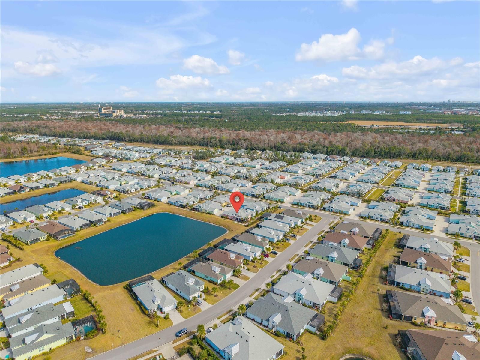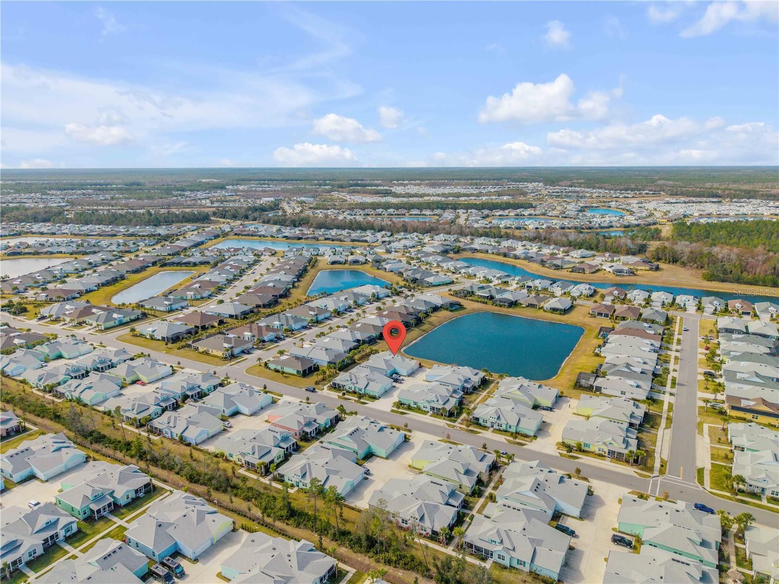 Welcome to this beautifully maintained pond front single-family home in Latitude at Margaritaville, offering 2 bedrooms, a dedicated office, and 2 bathrooms within 1,464 square feet of well-designed living space. Enjoy tranquil water views that enhance the relaxed, coastal feel of the home. Upon entry, you are greeted by soaring vaulted ceilings and an open, airy layout filled with coastal charm. The kitchen serves as a central gathering space, featuring a large center island with breakfast bar seating, stainless steel appliances, and generous counter space. Just off the kitchen, the dining area provides a comfortable setting for everyday meals or entertaining. The primary bedroom offers a peaceful retreat with an en suite bathroom that includes dual sinks and a walk-in shower. An additional bedroom and separate office add flexibility for guests, hobbies, or working from home. Located within the gated and highly sought-after Margaritaville community, residents enjoy a true resort-style lifestyle. Amenities include an on-site restaurant and bar, tennis and pickleball courts, a fitness center, theater, and an oceanfront beach club with a private swimming pool. Ideally positioned near major highways, the home is close to restaurants and shopping, and just minutes from the coast, offering an exceptional blend of convenience, comfort, and coastal living. Mortgage savings may be available for buyers of this listing.