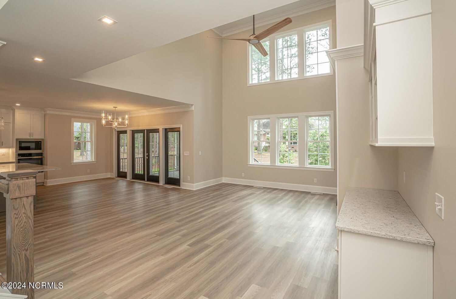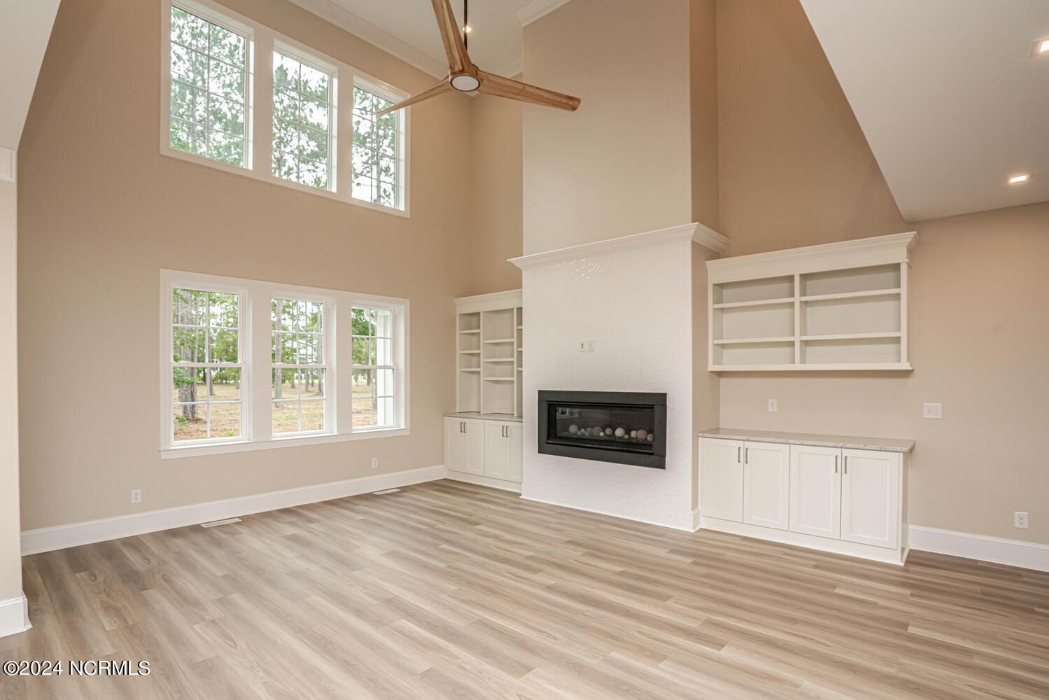 - Master Downstairs, Walk-In Closet(s), Tray Ceiling(s), High Ceilings, Entrance Foyer, Bookcases, Kitchen Island, Ceiling Fan(s), Pantry, Walk-In Shower, Kitchen/Dining Combo