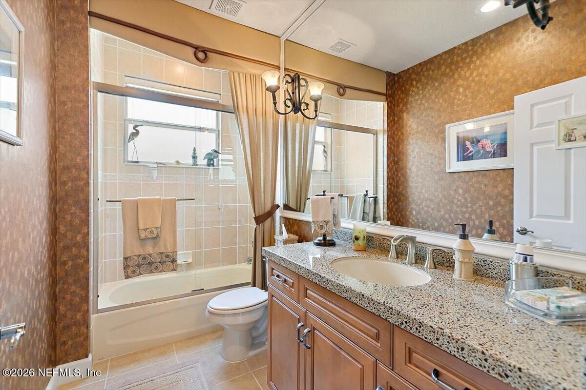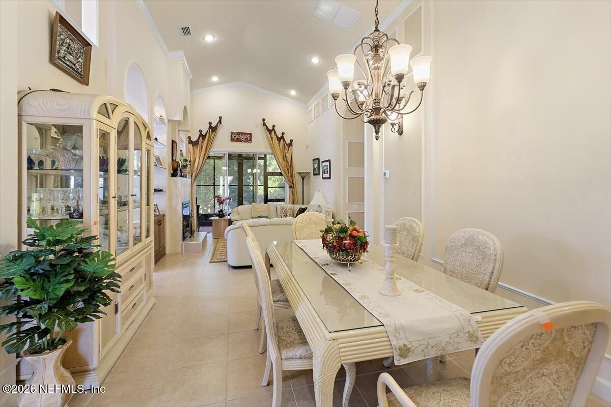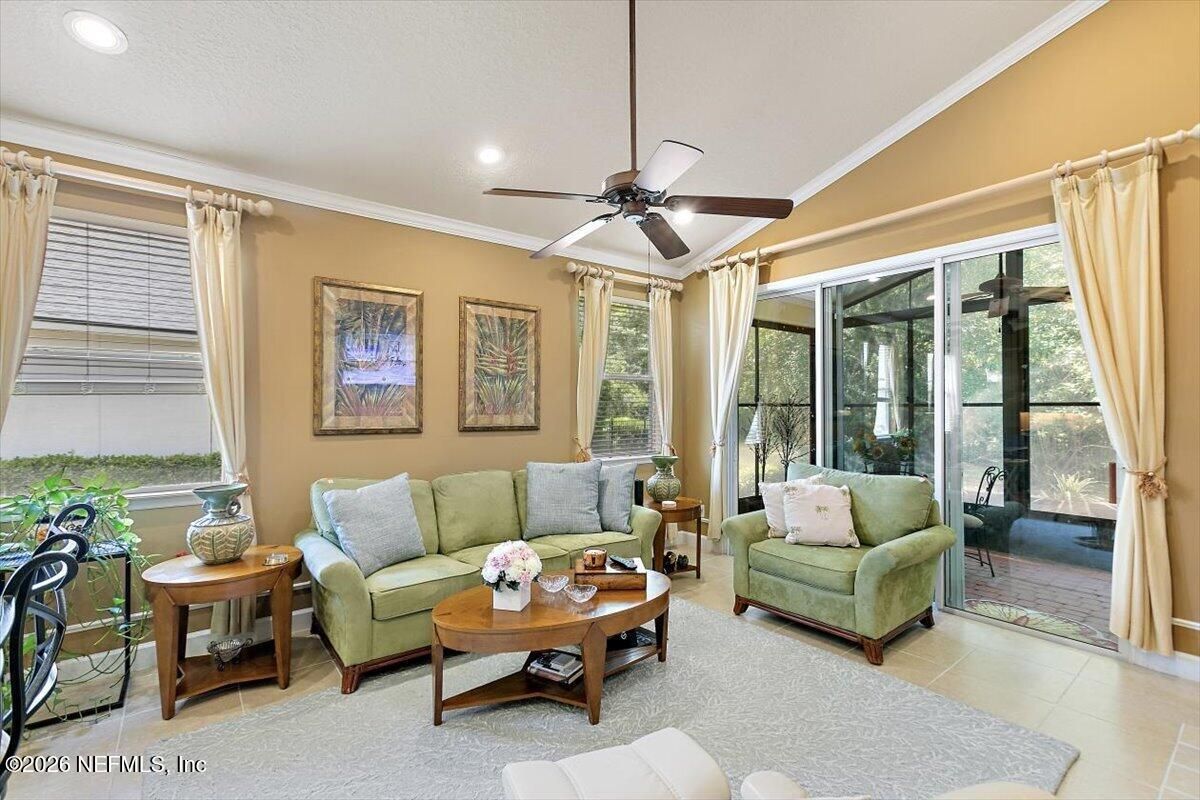 Welcome to this beautifully upgraded former model home in the highly sought-after 55+ community of The Cascades at World Golf Village--featuring NO CDD fees! From the moment you arrive, you'll be charmed by the stunning stained glass front door and inviting curb appeal. Inside, this thoughtfully designed home showcases exceptional upgrades throughout, including crown molding, chair rails, box molding details, and custom window treatments that add elegance to every room. The gourmet kitchen is a standout, featuring gorgeous 42'' maple cabinetry with crown molding, an electric cooktop, double ovens, newer microwave and dishwasher, and a black stainless refrigerator--perfect for both everyday living and entertaining. The spacious family room offers a unique see-through electric log fireplace, creating a warm and inviting atmosphere. Step outside to the screened lanai overlooking a peaceful conservation area, the perfect spot to relax and enjoy nature with added privacy. The owner's suite is a true retreat with vaulted ceilings, two closets, dual vanities with granite countertops, a soaking tub, and a separate shower. 3rd bedroom being used as an office with built-ins and wall detail. Major updates include a roof (2018), AC and water heater approximately 3-4 years old, providing peace of mind for years to come. Enjoy worry-free living with HOA-covered exterior landscaping and irrigation, along with gated security. This home is also located in an area where flood insurance is not required, adding even more value. And the lifestyle? Simply unmatched. Residents of The Cascades at World Golf Village enjoy a private, resort-style experience with a 30,000 sq. ft. clubhouse, indoor and outdoor pools, fitness center, tennis, pickleball, bocce, billiards, arts & crafts studio, and a full calendar of social activities. Don't miss this opportunity to enjoy carefree living in one of World Golf Village's premier active adult communities--schedule your private showing today!