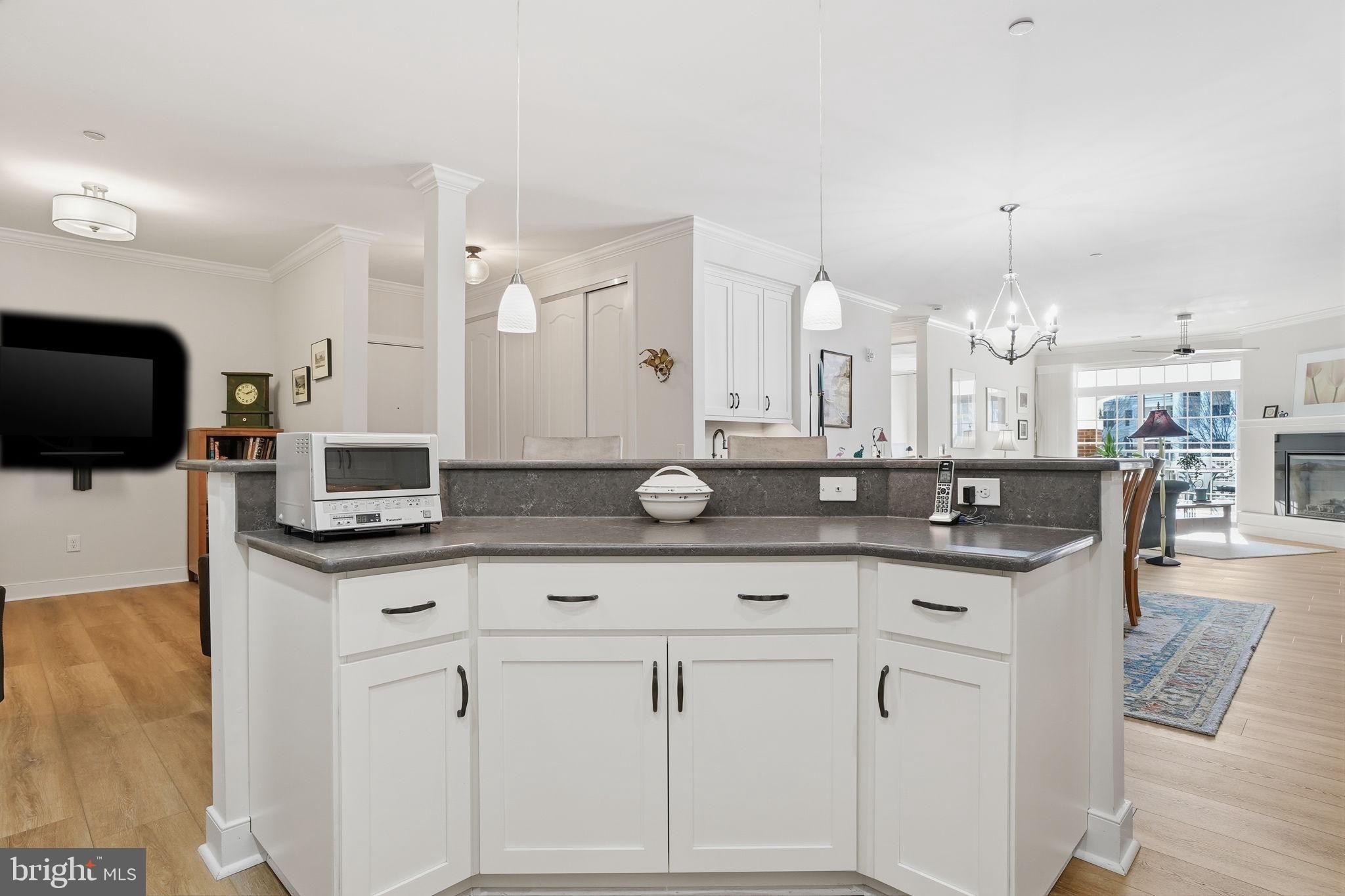 Welcome to this exquisite 2-bedroom, 2-bathroom residence in one of the newest buildings at the highly sought-after Meridian of Valley Square, a premier 55+ community in the heart of Bucks County. A welcoming foyer introduces the spacious, light-filled interior, where the open dining and living rooms showcase gleaming floors, a wet bar, a charming corner electric fireplace and sliding glass doors that open to a private balcony overlooking the beautiful courtyard. The gourmet kitchen is a chef’s delight, featuring top-of-the-line stainless steel appliances, including a gas cooktop, custom cabinetry, elegant countertops, a casual dining island with seating . The luxurious primary suite offers a tranquil retreat, a sunlit sitting area framed by a triple window, an expansive walk-in closet, and two additional closets for ample storage. The spa-inspired en suite bath is beautifully appointed with a double vanity and soaker tub. The second bedroom, privately situated on the opposite side of the home, makes for the perfect guest suite with plenty of light and a large closet. An adjacent full bathroom and a conveniently located laundry room—complete with full-size stackable washer and dryer. This home includes a private full-size garage with interior access, as well as a nearby dedicated storage unit. The Meridian lifestyle is unparalleled, offering secure entry, elevators, walking and jogging trails, a saltwater pool, and a clubhouse with a billiard room, fitness center, library, and more. Perfectly located within walking distance to Wegmans and the shops and dining of Valley Square, with easy access to major commuting routes and just minutes from historic Doylestown Borough, this home is a rare offering in one of Bucks County’s most desirable communities.