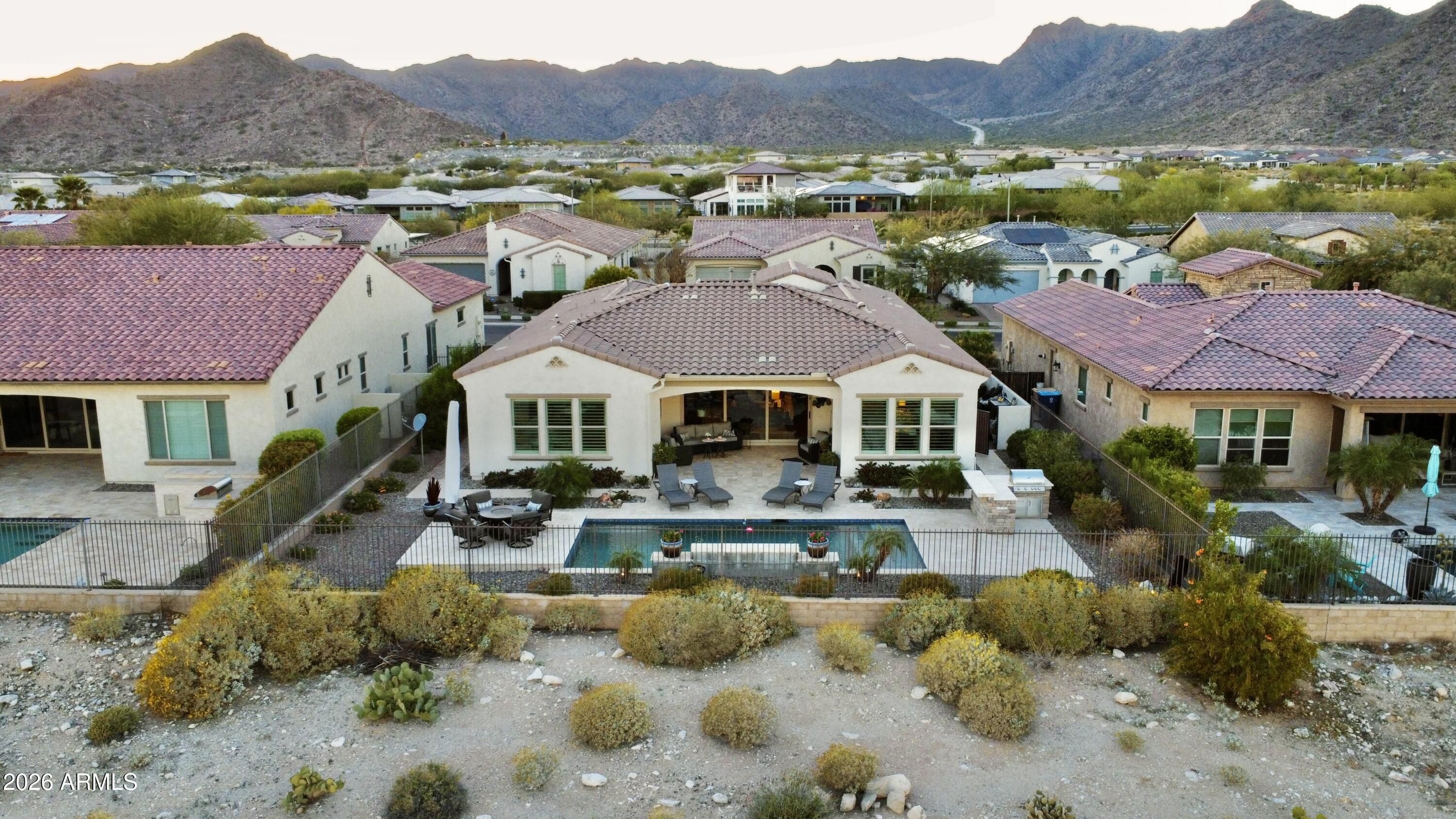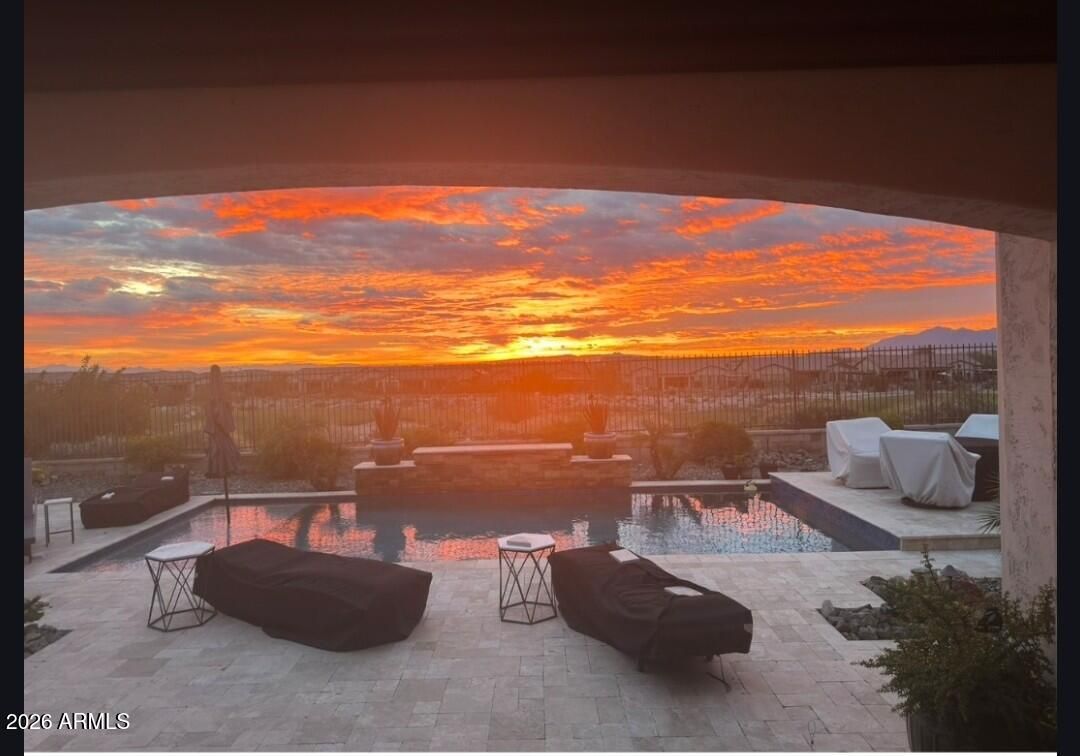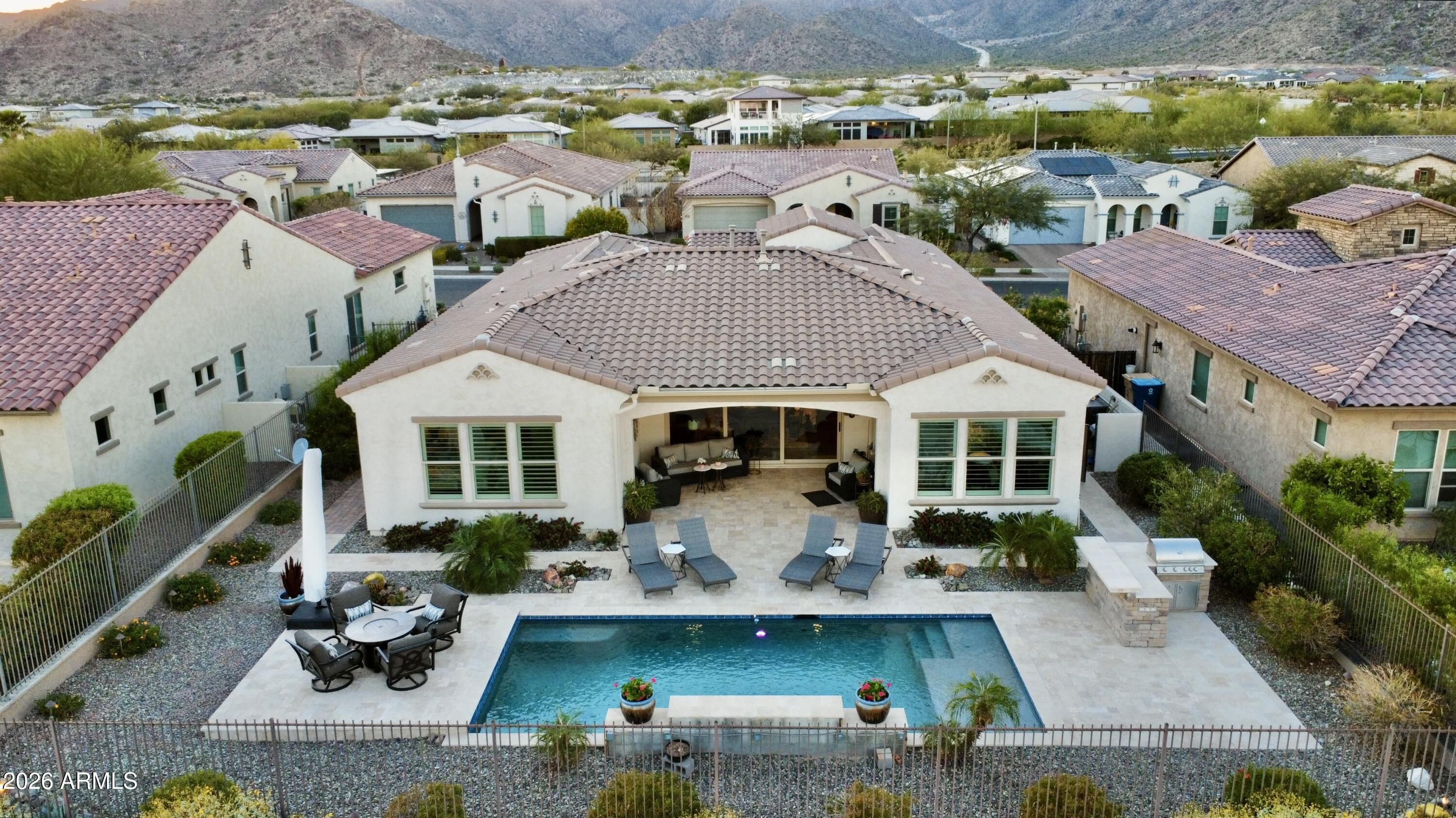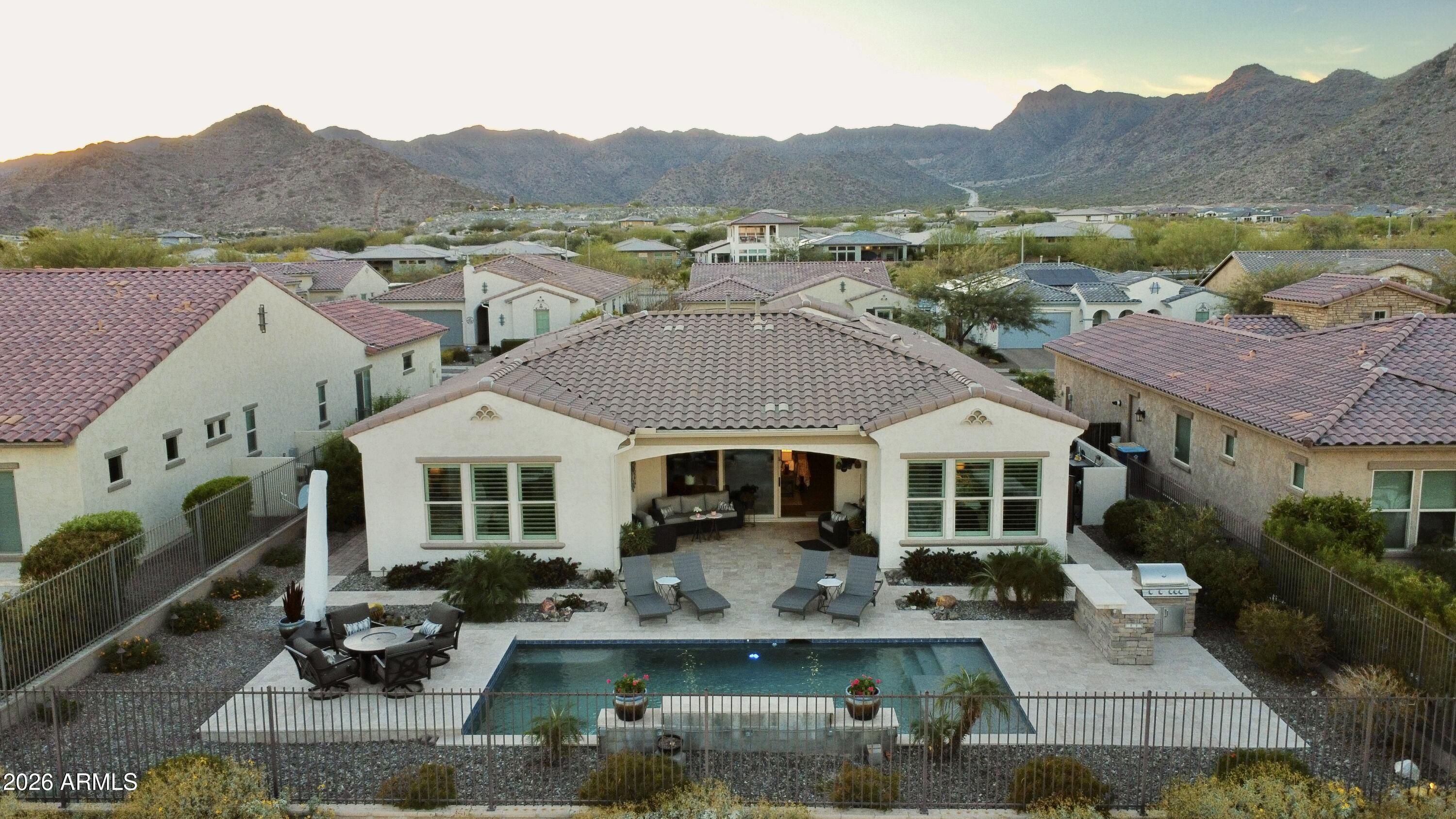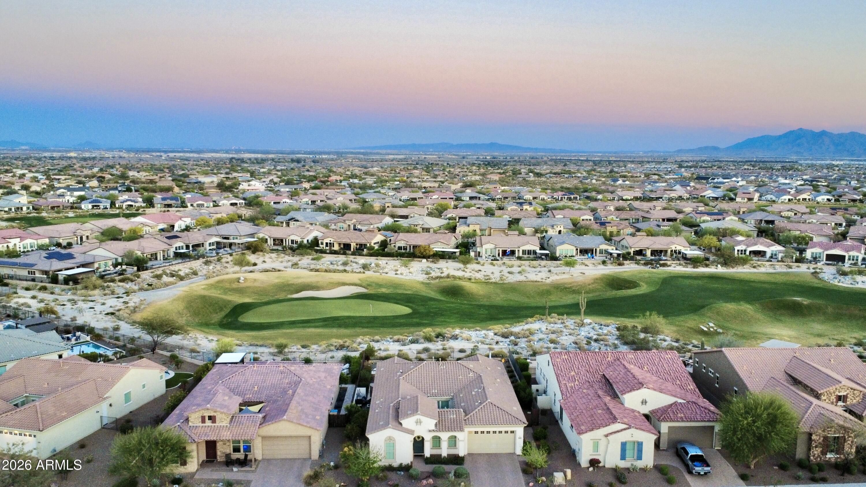 GOLF COURSE LOT WITH EXPANSIVE VIEWS FROM THIS STUNNING HOMESITE! The Pride of homeownership with Original Owners shows in this elegant home positioned within the exclusive 55+ Victory at Verrado Active adult Resort Style community. Nestled in the White Tank Mountains the views are glorious with a golf course backdrop backyard. THE ultimate Entertainers delight with backyard Pool, pavers & built in BBQ & covered patio with Triple sliders from Living room. Split Floor plan, with master bdrm walk out & enormous walk-in closet with spa like bathroom (dual sinks). Gourmet Kitchen with inviting gathering island that has highly upgraded cabinetry. (too many features to mention- pls wait for home to go up for sale approx 3/20/26)!!! Additional features: Tray Ceilings, over 7 ceiling fans!!! built in surround sound, central home courtyard with patio door with gutters & Travertine pavers!!! tankless H20 & whole house h20 softener. Outside patio has fancy huge sun blind with remote = nice! A Raised pool deck to enhance view of GOLF course, sunsets galore! * Upgraded tankless water heater with instant 10 second pump for instant hot H20! * Garage is insulated with epoxy floors &.. a AC mini split Perfect for those car / garage enthusiasts. Home is priced to sell!!