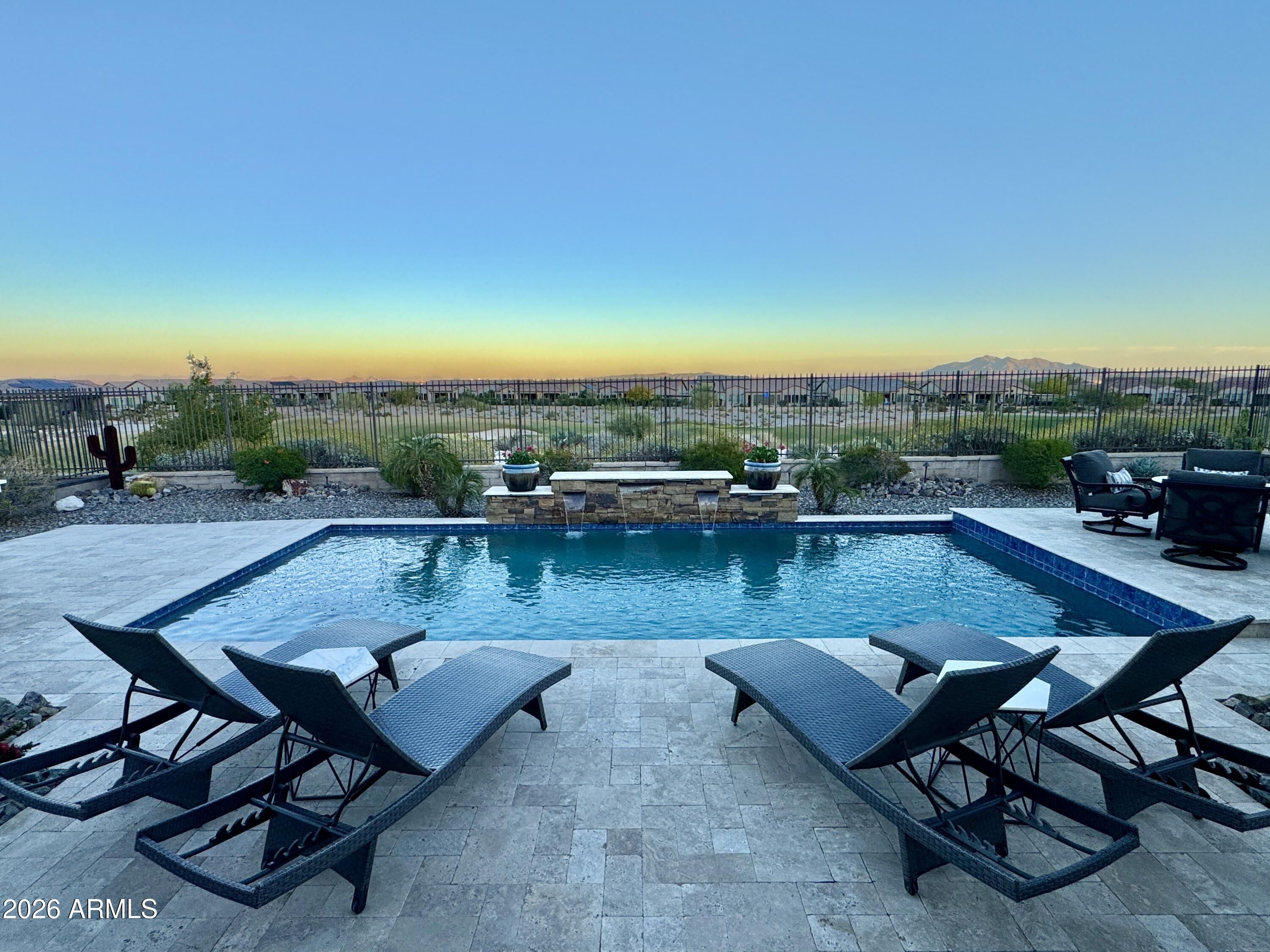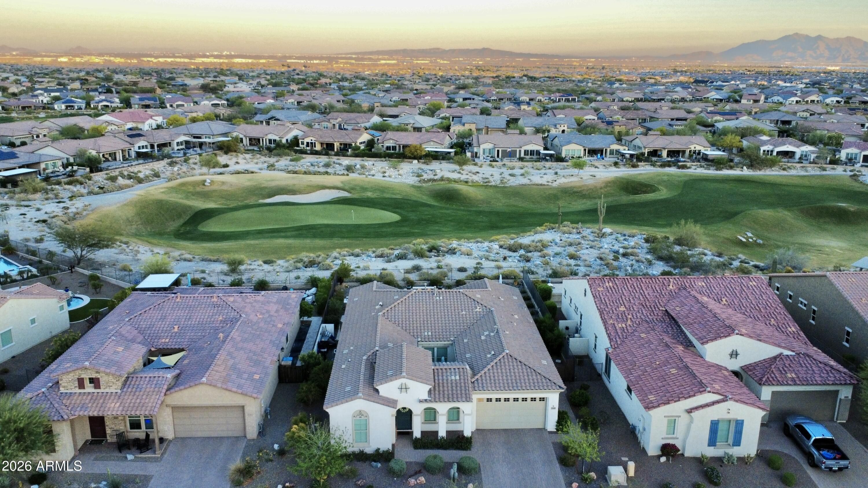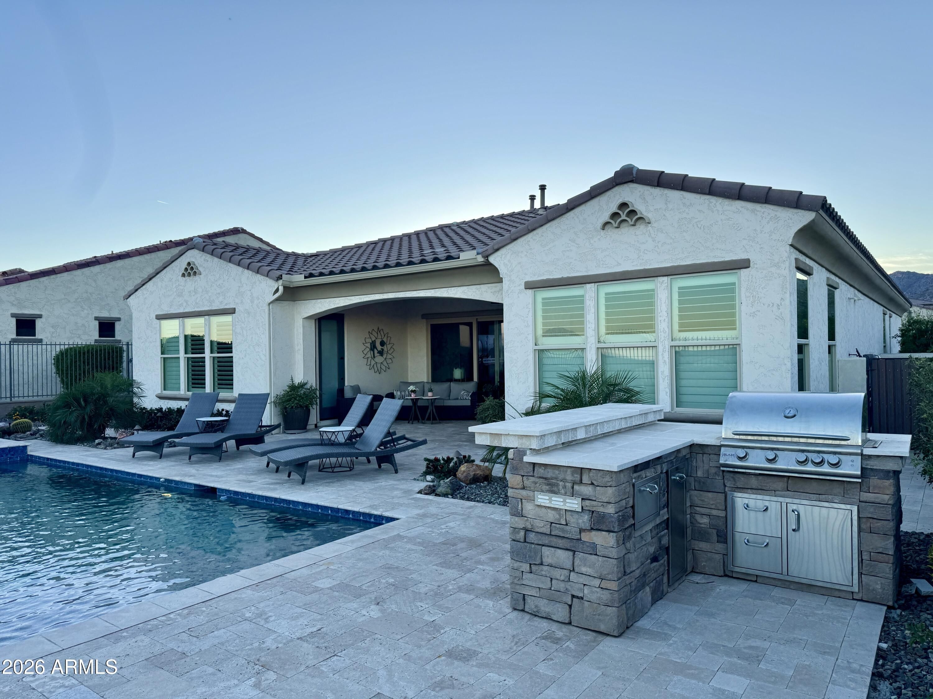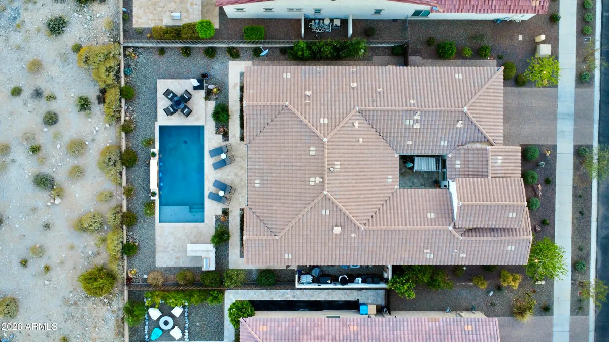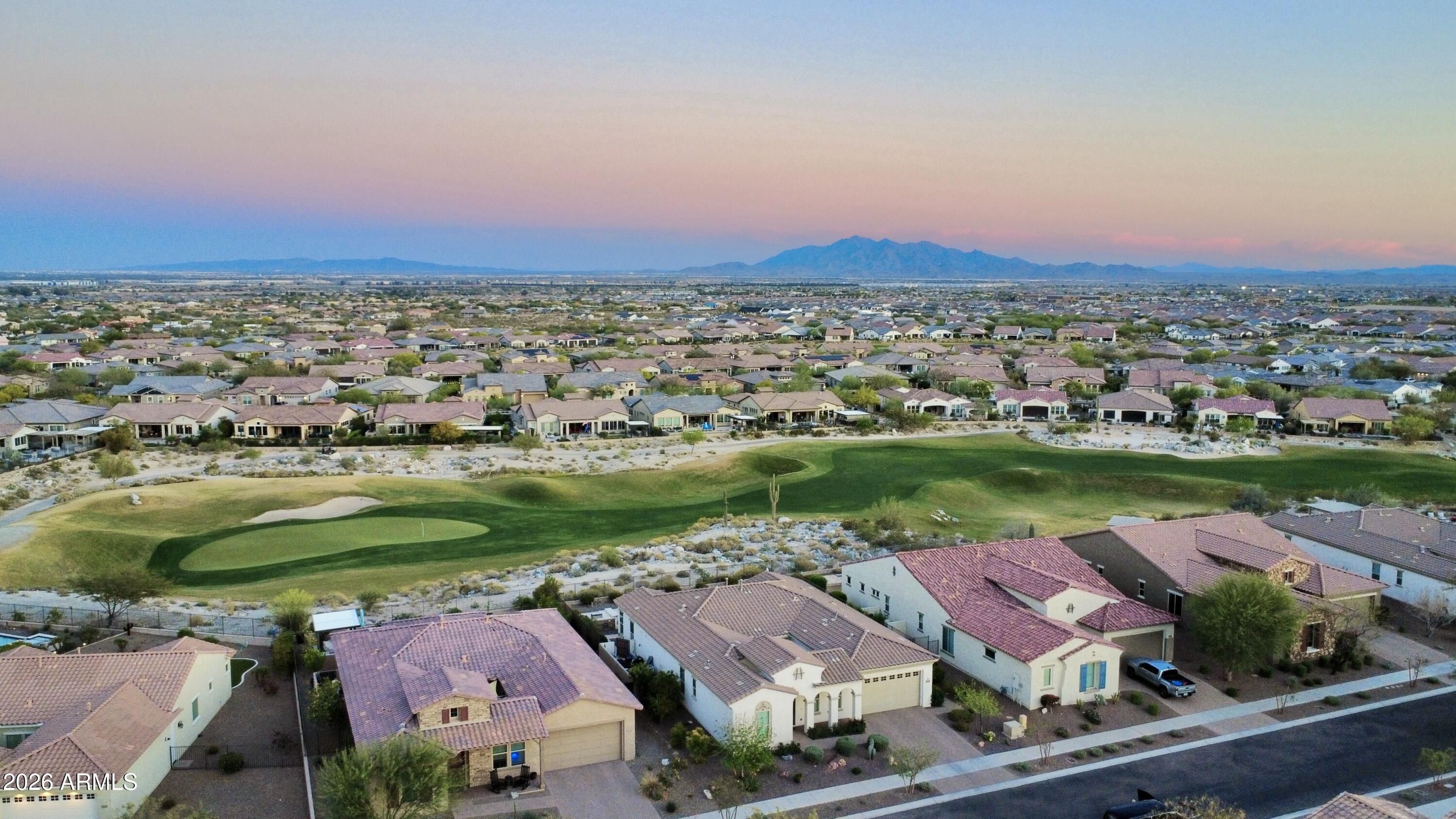 GOLF COURSE LOT WITH EXPANSIVE VIEWS FROM THIS STUNNING HOMESITE! The Pride of homeownership with Original Owners shows in this elegant home positioned within the exclusive 55+ Victory at Verrado Active adult Resort Style community. Nestled in the White Tank Mountains the views are glorious with a golf course backdrop backyard. THE ultimate Entertainers delight with backyard Pool, pavers & built in BBQ & covered patio with Triple sliders from Living room. Split Floor plan, with master bdrm walk out & enormous walk-in closet with spa like bathroom (dual sinks). Gourmet Kitchen with inviting gathering island that has highly upgraded cabinetry. (too many features to mention- pls wait for home to go up for sale approx 3/20/26)!!! Additional features: Tray Ceilings, over 7 ceiling fans!!! built in surround sound, central home courtyard with patio door with gutters & Travertine pavers!!! tankless H20 & whole house h20 softener. Outside patio has fancy huge sun blind with remote = nice! A Raised pool deck to enhance view of GOLF course, sunsets galore! * Upgraded tankless water heater with instant 10 second pump for instant hot H20! * Garage is insulated with epoxy floors &.. a AC mini split Perfect for those car / garage enthusiasts. Home is priced to sell!!
