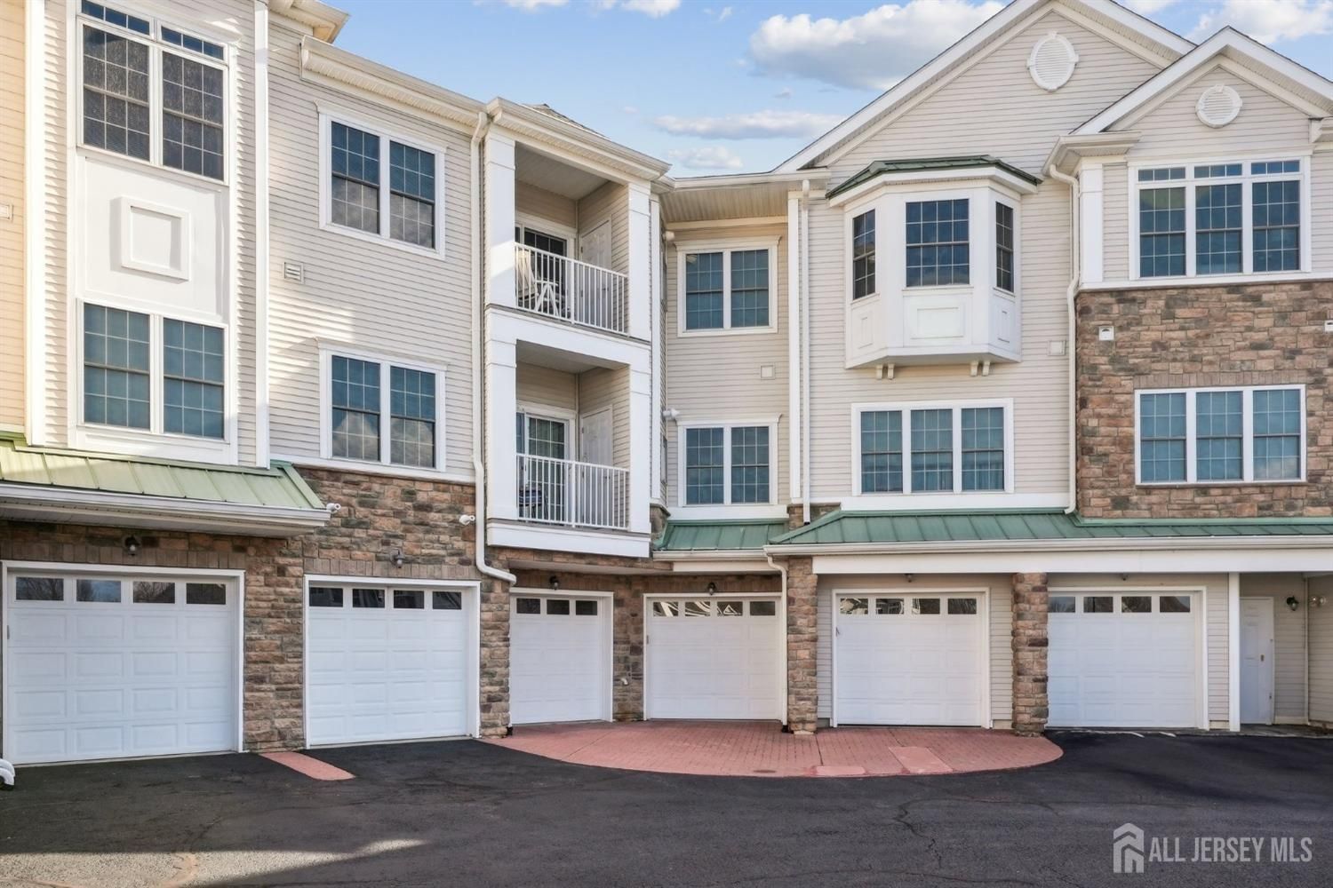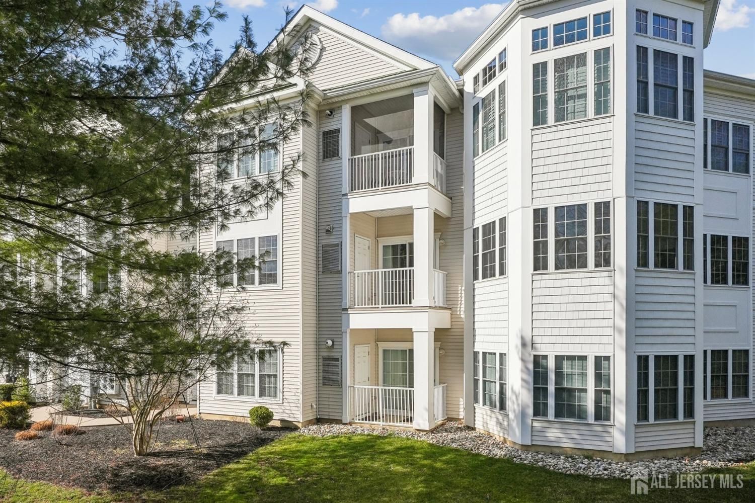 For the discerning luxury condominium home buyer seeking an adult community, one-floor living and a desirable location, this elegant residence is not to be missed. Rare opportunity to own in Building 5! An architecturally pleasing 3 floor elevator building with upscale secure lobby, library, cozy lounge and BUILT IN GARAGE offering DIRECT ACCESS TO BUILDING. This extraordinary DEL CAMPO unit is located on the 2nd level with a terrace and offers bucolic and private views. This model features 2 bedrooms, 2 full baths, open concept living areas, high ceilings, laundry in unit, and freshly painted. Gorgeous living room design with three walls of windows allowing for plenty of sunlight. Formal dining room and open kitchen with breakfast bar and granite countertops. Sought after split bedroom layout. The spacious primary suite offers a large closet and luxury primary bath with double vanity, tub, and stall shower. The second bedroom, situated near the second bath, also offers ample closet space and privacy. Owners enjoy access to beautifully maintained resort like indoor and outdoor amenities; club house with ballroom, billiard room, gym, outdoor pool, tennis court and recently added area for pickleball. Short drive to NJ shore towns! Close to all shopping. Best value in the area! One level living at its best, like new, move in ready condition!