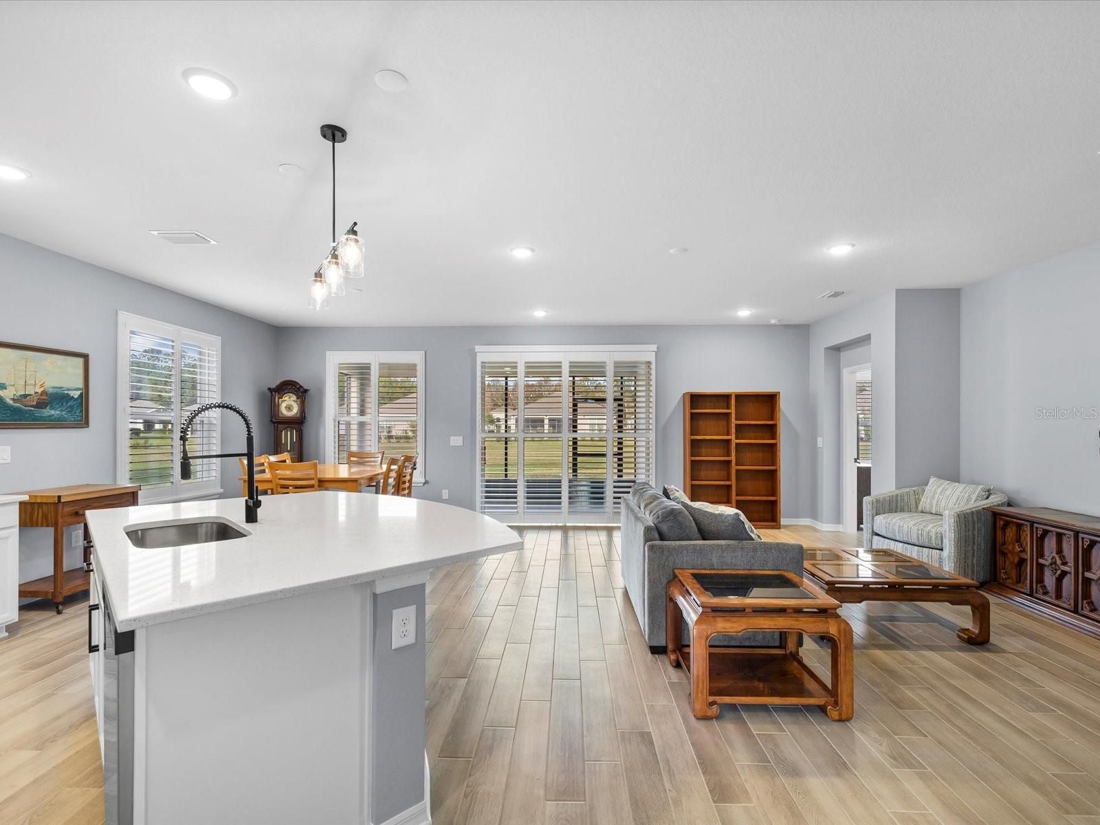 Immaculate Single-Family Home located in the 55+ Gated Community of the Cascades at Southern Hills Plantation, offering maintenance-free, low-stress Florida living with a reasonable HOA. This 2-bedroom, 2-bath home with a flex room features a light and bright open floor plan, 2" plantation shutters throughout, and a desirable split-bedroom layout for privacy. The kitchen is beautifully appointed with quartz countertops, 42-inch cabinetry, stainless steel appliances, natural gas range, breakfast bar, and a closet pantry. Additional upgrades include a whole-home water filtration system, gutters, and fresh interior paint. The primary suite offers a large walk-in closet and an en-suite bath with dual sinks, a spacious walk-in shower, and a private water closet. The secondary bedroom and flex room provide versatility for guests, an office, or hobby space. Enjoy relaxing on the screened rear porch, perfect for year-round enjoyment. Coming in from the garage, you’ll appreciate the convenient drop zone area and a laundry room pre-plumbed for a sink. HOA includes: lawn care, pest control, irrigation, cable & internet, and access to resort-style amenities including a clubhouse, pool, pickleball, bocce ball, fitness center, meeting room, and kitchen area—plus many organized community activities to stay social, active, and have fun. Residents are just minutes from the Southern Hills Plantation Club, home to a Pete Dye–designed Championship Golf Course, with optional membership available at a discounted rate. Conveniently located near shopping, hospitals, and schools, and approximately 45 minutes north of Tampa, this home delivers comfort, convenience, and an active adult lifestyle all in one.