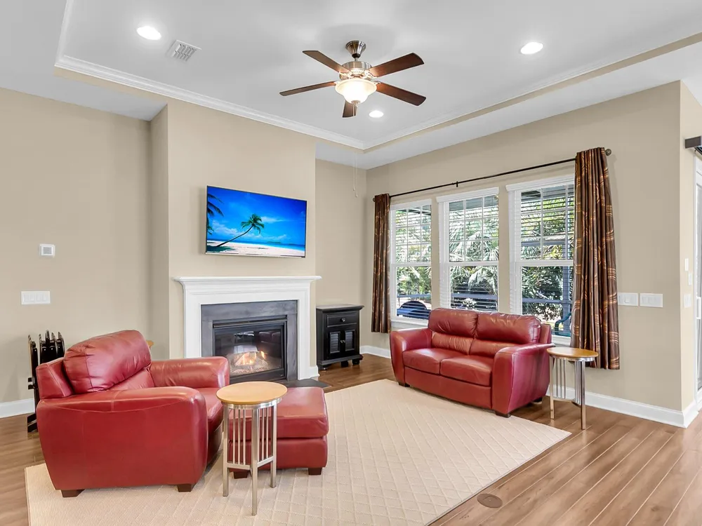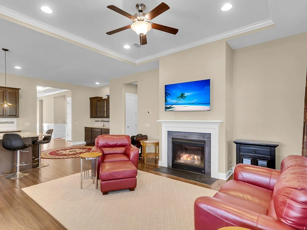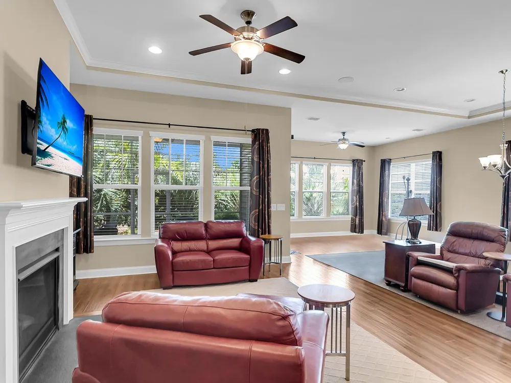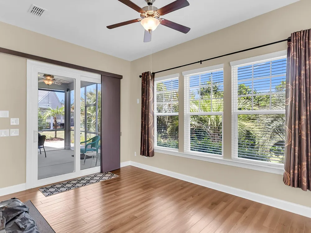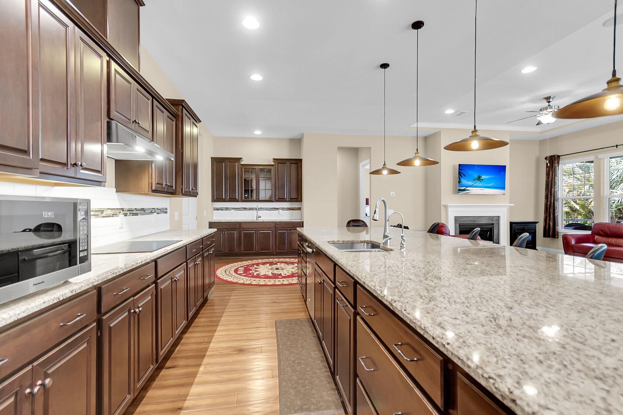 Live the Resort Life Every Day in The Four Seasons at Cane Bay!Welcome to your next chapter in this beautifully designed, single-story home nestled in one of the Lowcountry's premier 55+ resort communities. The Four Seasons at Cane Bay offers unmatched amenities including a 24,000 sq. ft. clubhouse, three sparkling pools, state-of-the-art fitness center, lighted tennis and pickleball courts, a 300-acre lake for fishing and kayaking, an outdoor kitchen, amphitheater, ballroom, pool table, and more. With a full-time lifestyle director and a calendar full of daily activities, retirement here is anything but boring!Inside the Home:This thoughtfully laid-out residence offers 2 spacious bedrooms, each with its own private bath plus a third room that can be a bedroom or office (no closet).The secondary suite is enhanced with a top-of-the-line $21,000 Safe Step hybrid tub/shower for ultimate comfort and accessibility. The primary suite is privately situated at the back of the home and features a tray ceiling, abundant natural light, a step-in shower, dual vanities, and a generous walk-in closet with pull-down attic access for extra storage. The inviting foyer leads to both the 1st bedroom and also to the second bedroom/office with French doors. You'll also find a convenient half bath. The foyer ultimately opens into an entertainer's dream -a massive kitchen with a 14'x5' island, butler's pantry/wet bar area, and an expansive great room with dining and sunroom-style living space. This is all accented by warm wood flooring. The seamless flow continues out to a screened porch and patio, surrounded by lush landscaping and mature trees, all maintained by an irrigation system and buffered by a private rear berm. Bonus Features: Oversized 0.30-acre lot -one of the largest in the community 3rd car garage - perfect for a golf cart, hobby space, workout area, or extra storage Whole-home Generac generator with transferable warranty Culligan water filtration system Washer and dryer convey Main garage includes a wet sink Hall closet is pre-framed for future loft addition Location Perks: Conveniently located near top-rated hospitals, shopping, dining, and just a short drive to Charleston's historic downtown and beautiful beaches, this home offers the perfect blend of peaceful retreat and accessible adventure. Don't miss your chance to own a rare floor plan that's no longer being built on one of the most desirable lots in the neighborhood. Retire in style and comfort while staying as active as you like!
