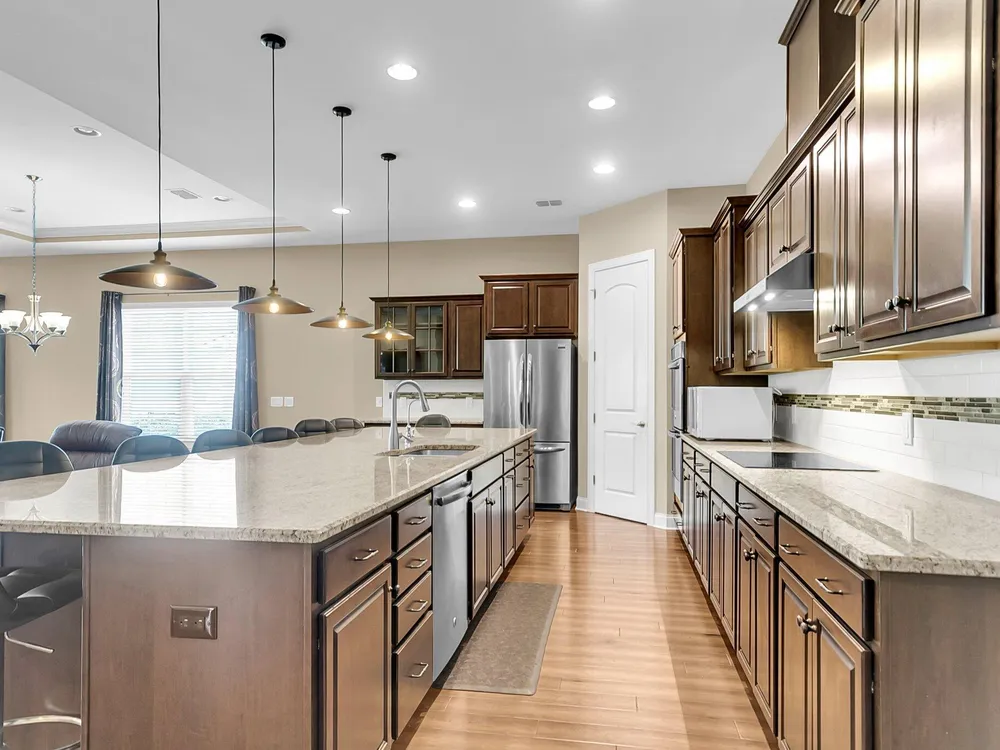 - Smooth Ceilings, Tray Ceiling(s), High Ceilings, Kitchen Island, Walk-In Closet(s), Wet Bar, Ceiling Fan(s), Eat-in Kitchen, Family Room, Entrance Foyer, Great Room, Home Office, Pantry, Study, Utility Room