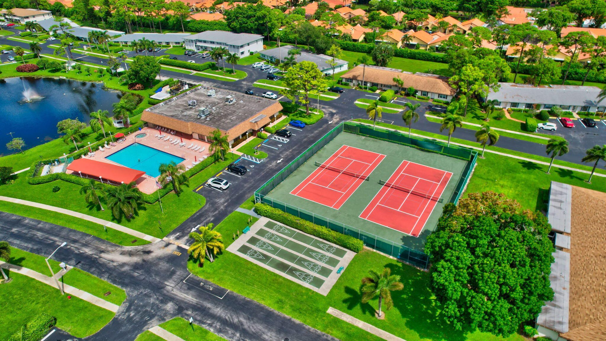 - Includes: Billiard Room, Clubhouse, Fitness Center, Game Room, Parking, Pool, Shuffleboard Court, Spa/Hot Tub, Tennis Court(s), Community Room, Pickleball