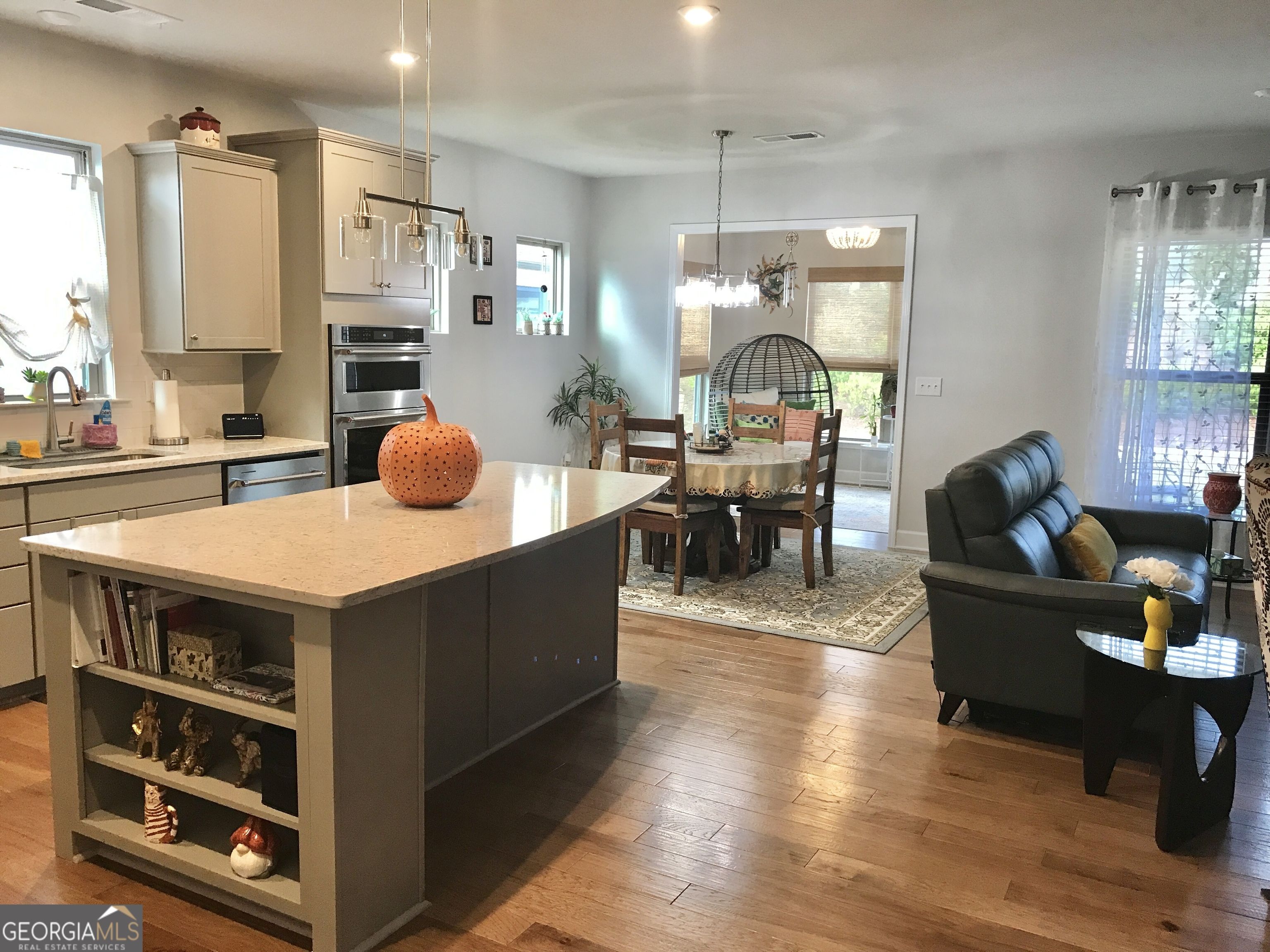This beautiful Abbeyville home, located in the popular 55+ Active Adult Community of Del Webb Chateau Elan, offers you numerous unique features. It was built in 2023 and aside from the marvelous open floor plan, it stands alone because of these "unique" features. Namely, Fandelier fans in the master bedroom and sun porch; motion lights in the master bedroom closet and garage; Samsung refrigerator with beverage dispenser; ceiling fans in all rooms; under ground sprinklers; a garden tub and a separate shower in the master bathroom; drawers in master bathroom; storage shoe rack in mud room; Blink door bell and cameras; all window blinds and treatments, EXCEPT the window treatments in the master bedroom, remain. Gourmet kitchen with easy close drawers. Light colored hardwood floors and carpeting in the bedrooms. This open spaced floor plan ensures a smooth flow for family and friends to easily interact. A few activities include: pickleball, tennis, bocce, golf, arts and crafts, chorus, performing arts, culinary Mexican train, ladies and men's poker, line dancing, and bridge. Playground for children and Fitness center for the residents. This adult community thrives on being active. As you check out the photos of the house, there are also some photos showing the awesome landscaping that the members enjoy each day as they walk, bicycle or drive through their community. You can close quickly and MOVE IN NOW!