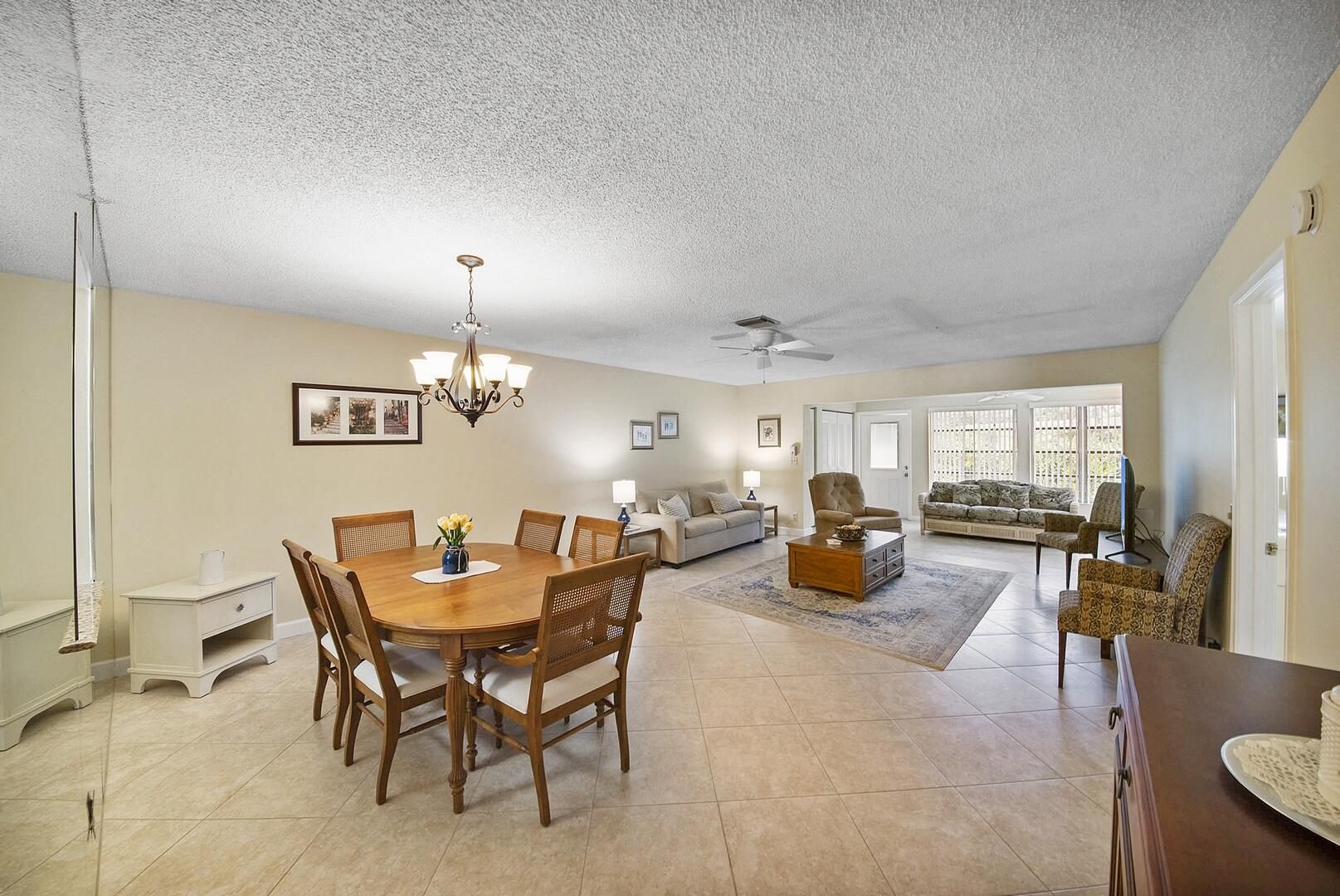Welcome to this beautifully updated 2-bedroom, 2-bath furnished home in the desirable Bridgeview community. This charming residence features a spacious living room, dining room, and a versatile bonus room perfect for a home office or den. The modern kitchen boasts granite countertops, rich wood cabinets, stainless steel appliances, a cozy breakfast nook, and a convenient pass-through to the dining area. The primary suite offers comfort and privacy with his and her walk-in closets and a private ensuite bath. Neutral flooring and smooth walls throughout provide a clean, modern feel, while accordion shutters add peace of mind. Enjoy resort-style living with community amenities including a clubhouse, gathering room, tennis courts, and a sparkling pool.