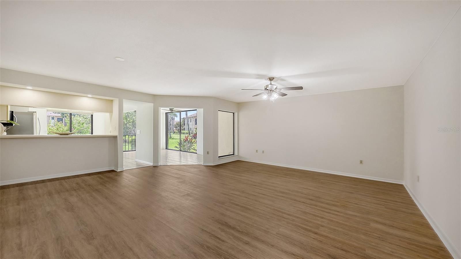 - Ceiling Fan(s), Eat-in Kitchen, Living/Dining Room, Open Floorplan, Main Level Primary, Split Bedrooms, Walk-In Closet(s), Window Treatments