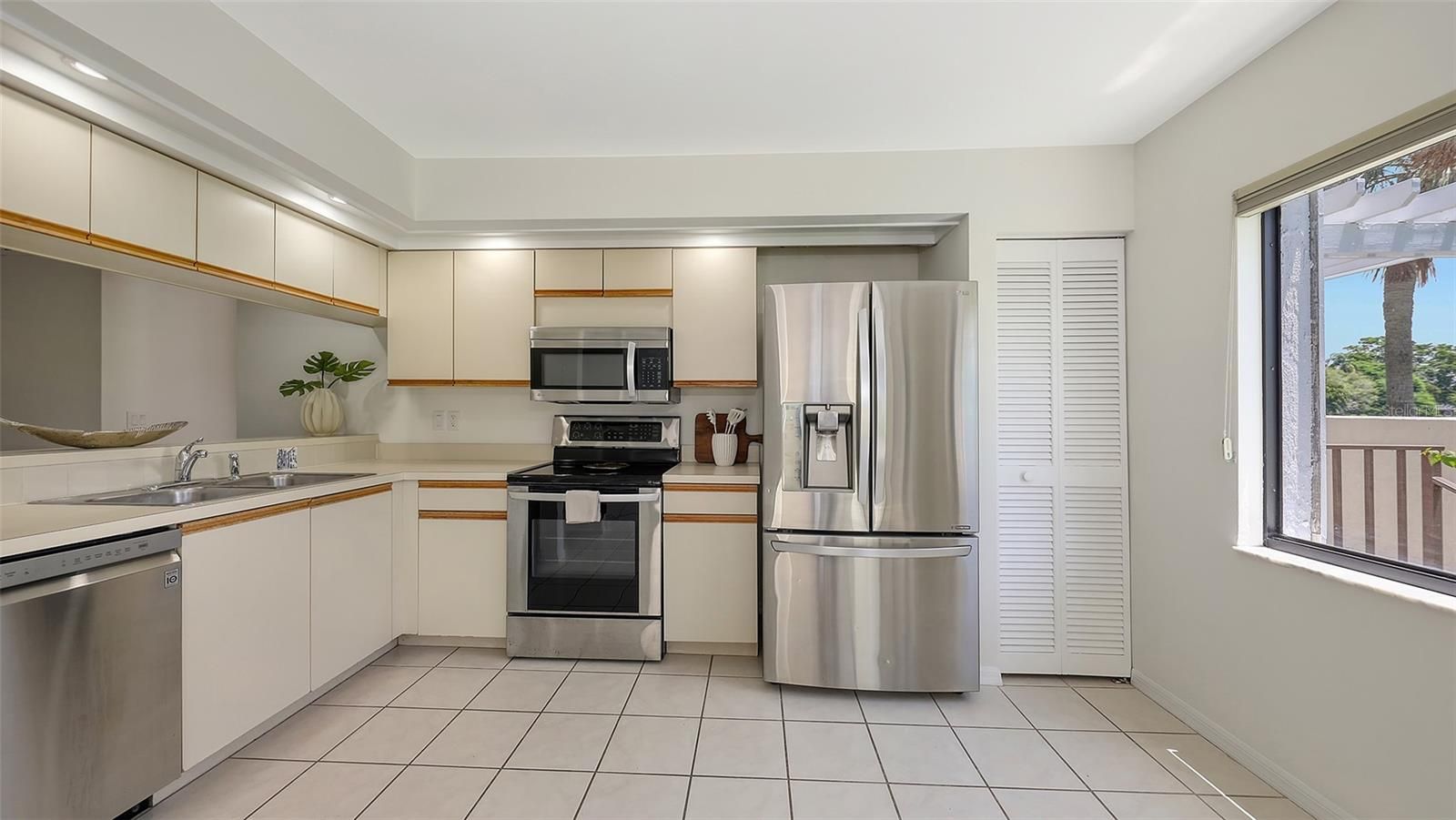 PRICED TO SELL!!! GREAT LOCATION, next to walkway to intracoastal waterway - *FIRST FLOOR COACH HOME with interior WATER VIEW, *** THE BEST VALUE IN THE LANDINGS ****2023 ROOF, *2024 AC, *NEW EXTERIOR & INTERIOR PAINT. Light-filled and inviting, this first-floor 2-bedroom, 2.5-bath coach home with 1 car garage is move-in ready! Freshly painted throughout including walls, trim, doors, and even the garage this home shines with thoughtful updates. The popcorn ceilings have been removed and refinished, new LED lighting was added in the kitchen and baths, and the sliding glass doors have been serviced for ease of use. Enjoy beautiful views, updated flooring, and a bright open layout. The kitchen features stainless steel appliances, and the spacious design makes this home perfect for both everyday living and entertaining. Located just around the corner from The Landings Racquet Club, you will have access to a vibrant lifestyle: social activities, a library, exercise facility, geothermal pool and hot tub, plus 8 Har-Tru tennis courts and pickleball courts. All of this is found within the gated community of The Landings one of Sarasota's most sought-after neighborhoods. Total fee breakdown: The Landings, $2000/yr; The Landings South 1, $2,434.28/qtr; Racquet Club fee, required, $2210/yr. For 2026 Condo Fees will be $2464.04 per Quarter.