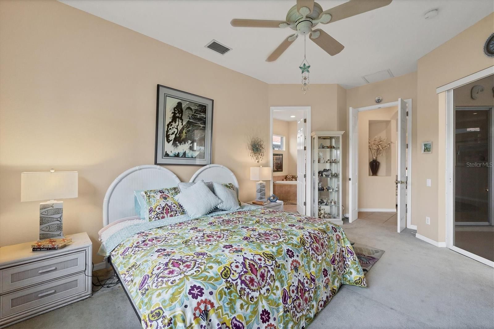 - Ceiling Fan(s), High Ceilings, Solid-Wood Cabinets, Split Bedrooms, Stone Counters, Walk-In Closet(s), Window Treatments