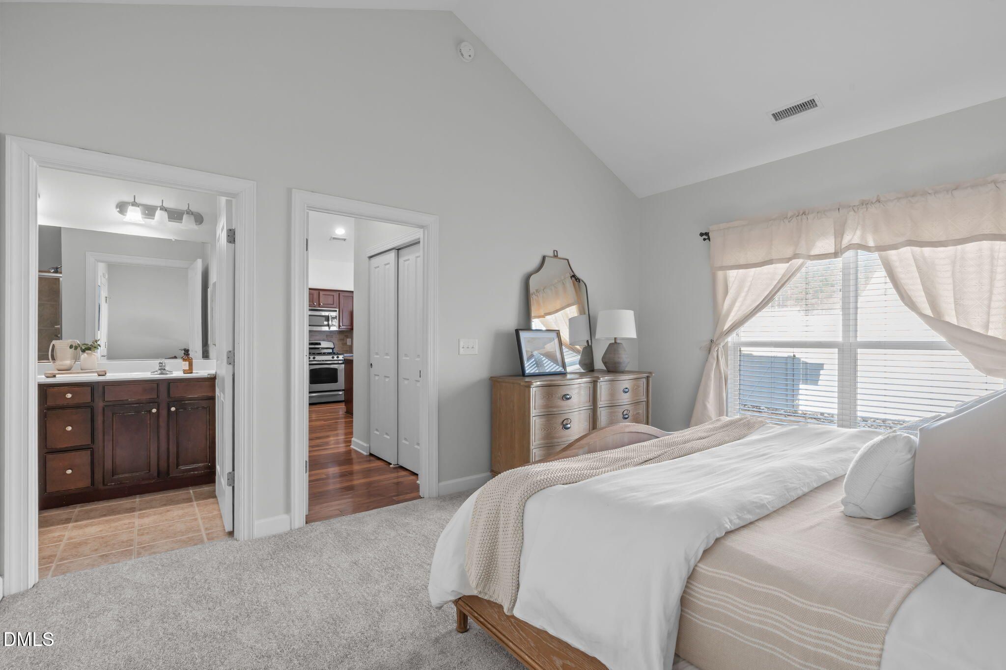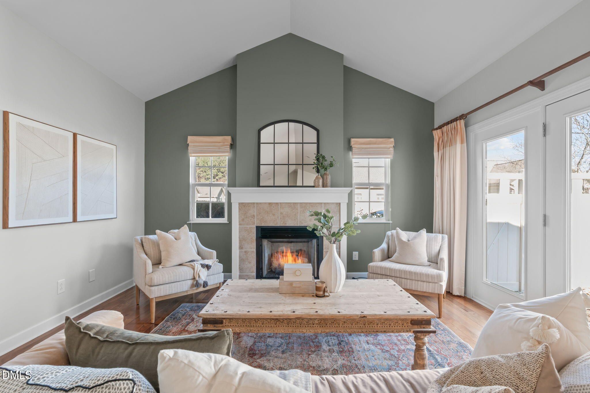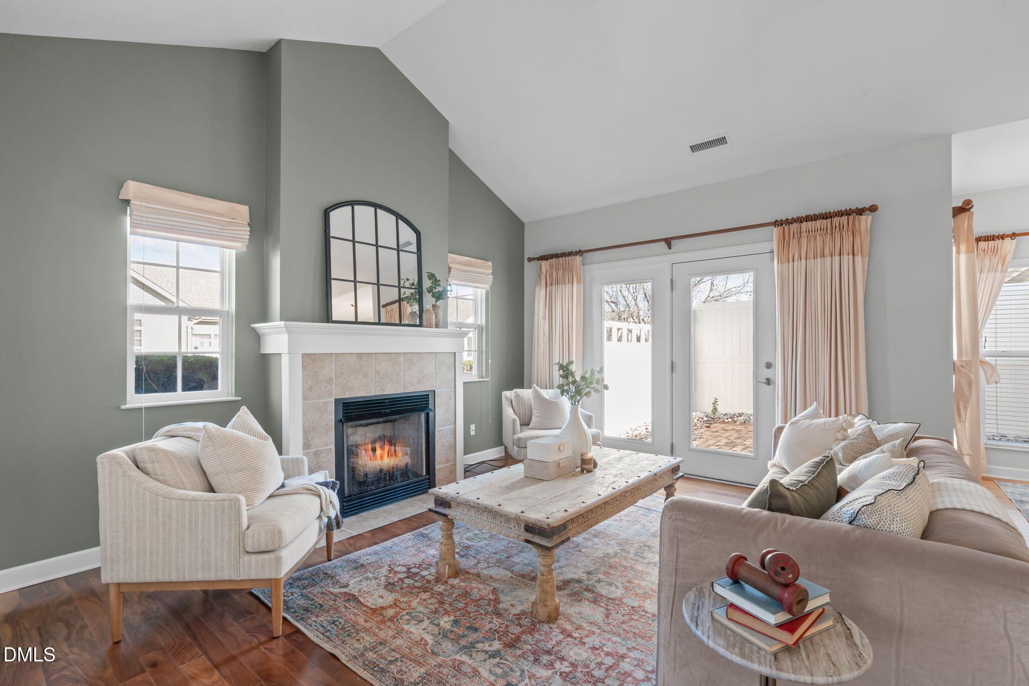 Freshly painted and truly move-in ready, this one-level home beautifully blends classic design with modern conveniences. Enjoy no city taxes and a low-maintenance lifestyle where association services cover exterior building maintenance, lawn care, irrigation, and even water and sewer, giving you more time to enjoy the outstanding community amenities. This highly sought-after floor plan features an open layout with vaulted ceilings. At the front of the home, a home office with French doors and a guest bedroom offer flexibility to suit your needs. Seamless hardwoods flow through the main living areas, while brand-new carpet adds warmth to the bedrooms. The dreamy kitchen is equipped with stainless steel appliances, a gas range, granite countertops, a spacious center island with seating, pantry, and a newly installed dishwasher. The cozy family room features a gas fireplace and abundant natural light, with access to a private patio that extends your living space outdoors. The private owner's suite, tucked quietly at the back of the home, showcases a neutral palette, walk-in closet, and an ensuite bath with a dual-sink vanity and a step-in glass shower. A hall bath near the front bedroom, a laundry room with extra storage, and a utility closet near the garage entry complete the interior. Conveniently located near I-40 and NC-54, you're just minutes from Chapel Hill, Durham, shopping, dining, and recreation. This vibrant 55+ active-adult community offers a rich array of amenities, including a clubhouse with fitness and game rooms, meeting spaces, a community kitchen, an outdoor pool, walking trails, scenic ponds, and an active social calendar.