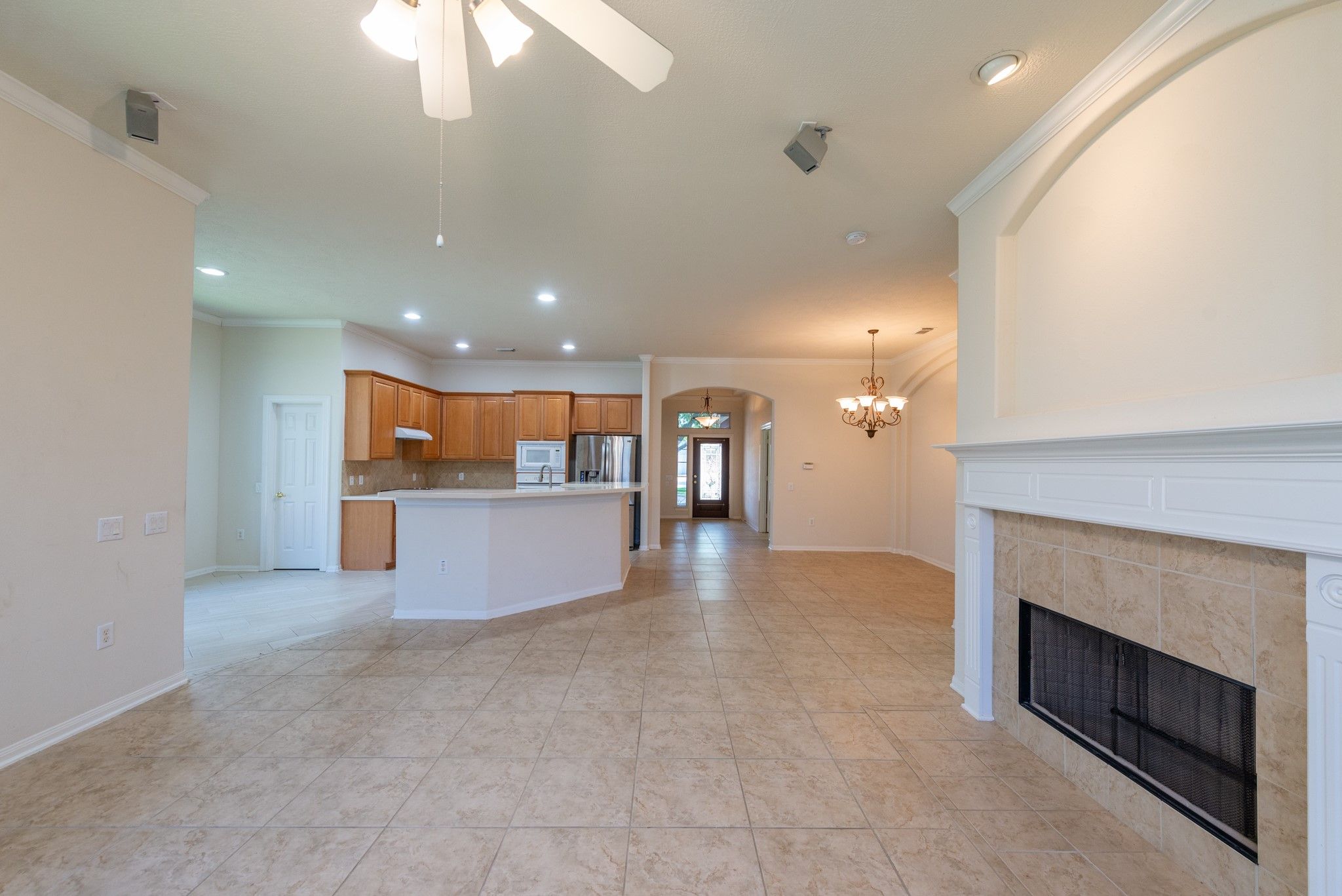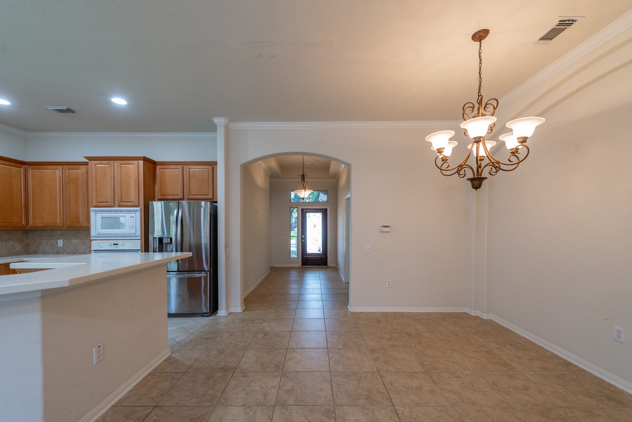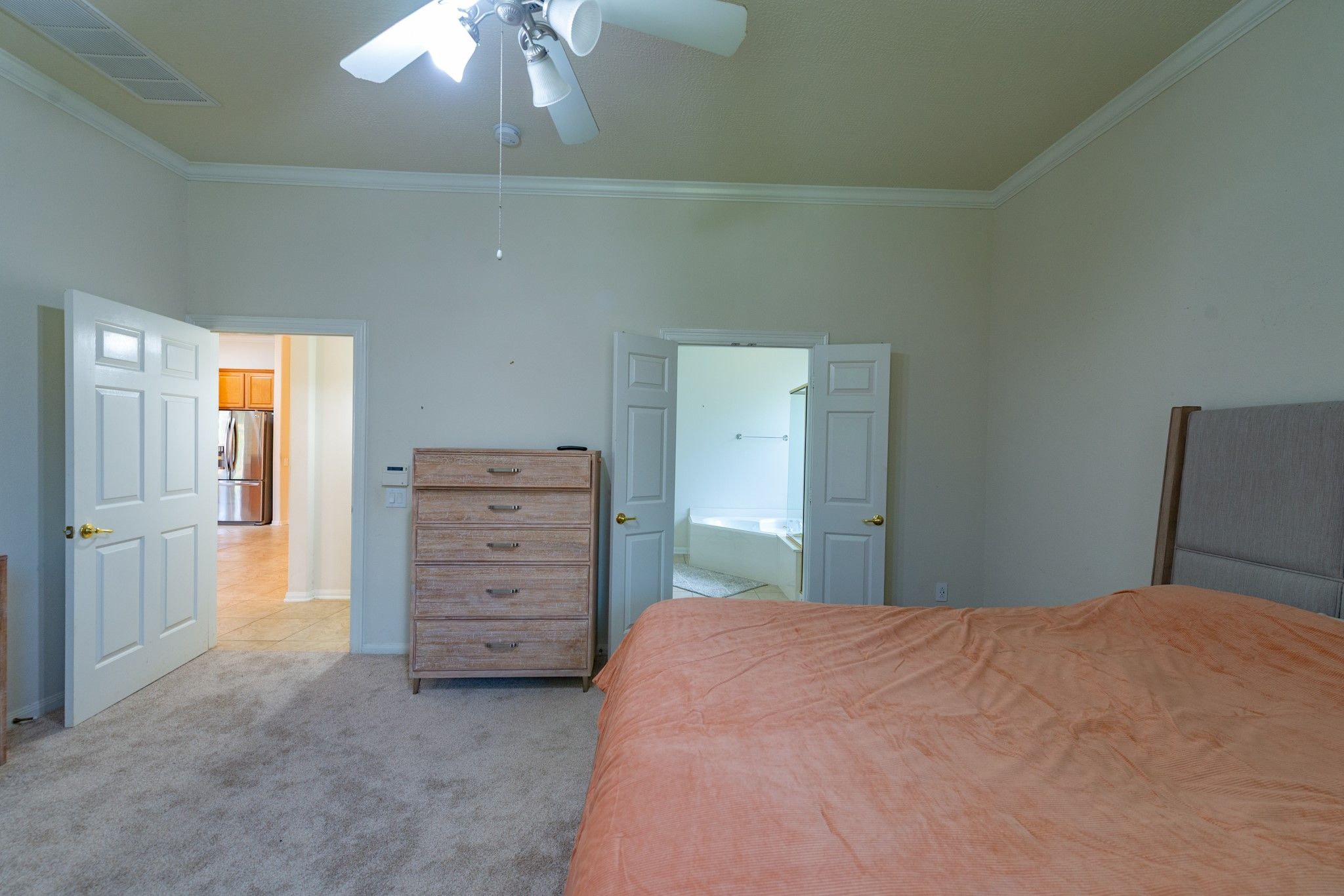 - Breakfast Bar, Crown Molding, Double Vanity, Entrance Foyer, High Ceilings, Jetted Tub, Kitchen/Family Room Combo, Pantry, Separate Shower, Tub Shower, Walk-In Pantry, Ceiling Fan(s), Kitchen/Dining Combo, Programmable Thermostat