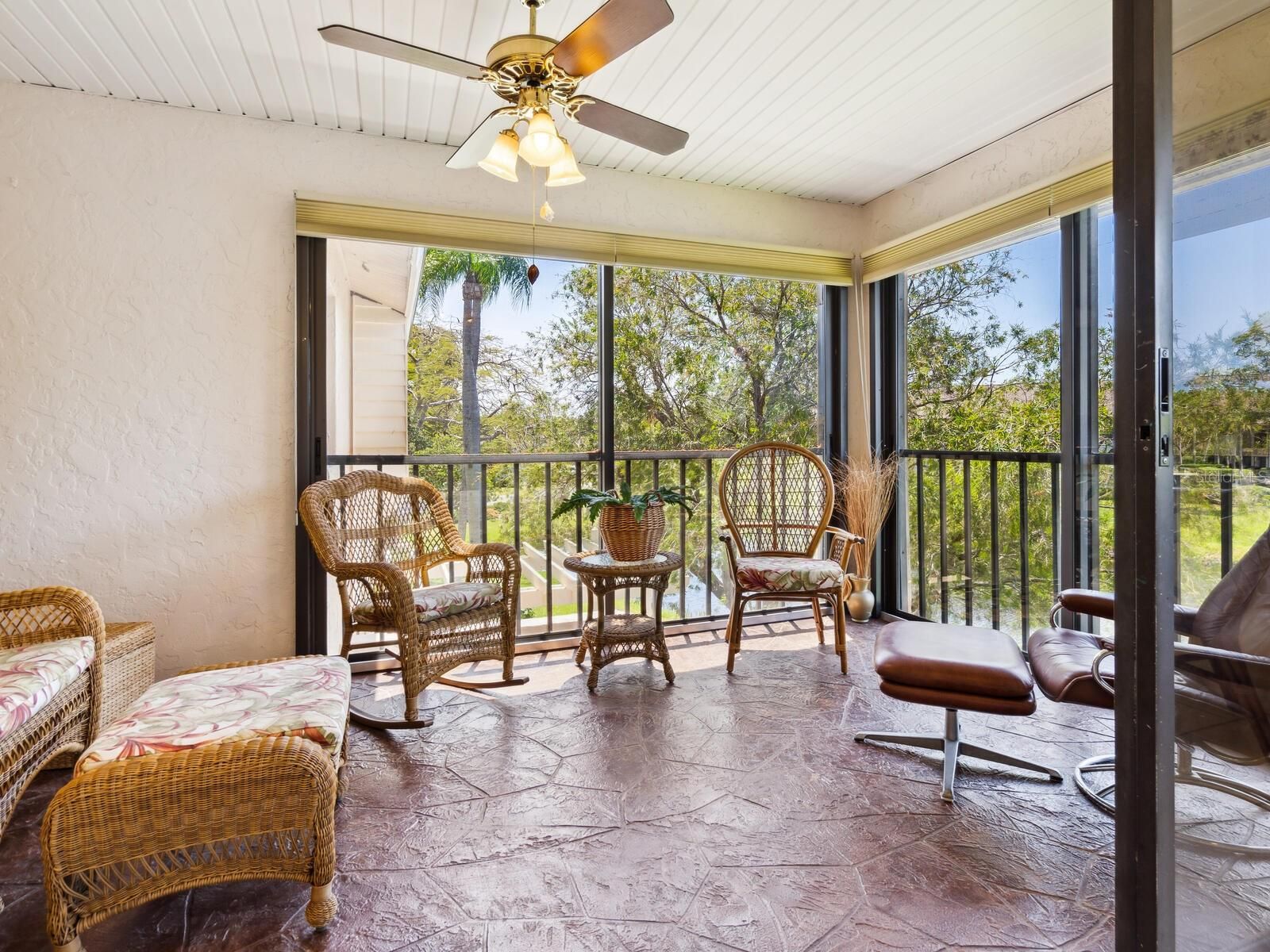 Light, bright and open, this second-floor 2 bed/2.5 bath coach house has a western exposure overlooking the Heron Lake. Stunning views from the three main rooms allow you to enjoy the wildlife and the amazing Florida sunsets. Located equal distance from both the Landings Racquet Club and the Landings’ Nature Trail. Meander down the trail pathway where you can stow your kayak for journeys on the nearby Intracoastal Waterway or enjoy fishing from the private gazebo or better yet just relax and watch the boats go by. Upstairs, delight in the stunning water views across Heron Lake. Cooks will be delighted with the open kitchen which has been updated with contemporary wood cabinets, granite countertops, stainless appliance package, and room for a breakfast table to enjoy this sunny spot. The lanai is glassed enclosed for a year-round opportunity to entertain your guests and enjoy the view. The master bedroom with ensuite has dual sinks and a generous walk-in closet. The guest bedroom also has an ensuite and its own glassed-in balcony. A powder room, separate laundry room, and private garage round off this comfortable space. The roof and HVAC are newer. A quick stroll and you’re at The Landings Racquet Club where you’ll be enticed by all of its social activities, library, exercise facility, thermal dynamic pool and hot tub. Try your skills on the 8 HarTru tennis and pickle ball courts. You will find all this, and more, within the gates of The Landings.