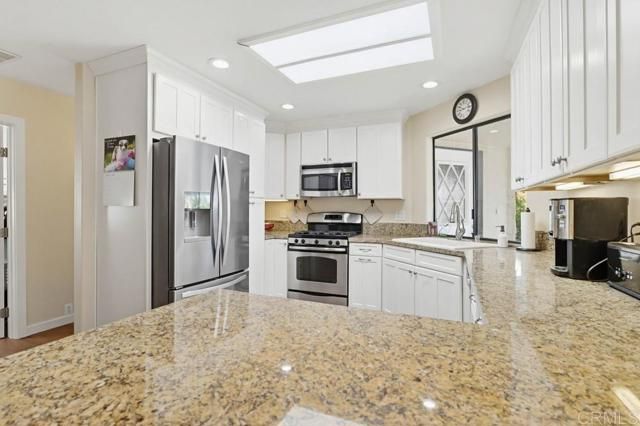 Welcome to your beautifully updated retreat in the heart of Carlsbad! This thoughtfully improved 2-bedroom, 2-bathroom home blends comfort, style, and coastal charm in one of North County's most desirable communities. Step inside to discover a bright, refreshed interior featuring new paint throughout, elegant Coretec luxury vinyl plank flooring, and stylish new light fixtures that elevate every space. Brand-new interior doors and frames add a crisp, modern finish, while updated ceiling fans enhance comfort year-round. The inviting living and dining areas flow seamlessly into the kitchen, where a new kitchen faucet complements the home's many tasteful upgrades including granite counters. Both bathrooms have been enhanced with new Kohler toilets, and the secondary bath has been beautifully reimagined with a new tiled shower and added ceiling heater for spa-like comfort. The primary bedroom has been thoughtfully modified to include additional storage and a convenient coat closet, creating both functionality and organization without sacrificing space or style. A second modified bedroom w/ organized closet and full bath provide flexibility for guests, family, or a home office. Outside, the improvements continue with new landscaping that enhances curb appeal and outdoor enjoyment. The