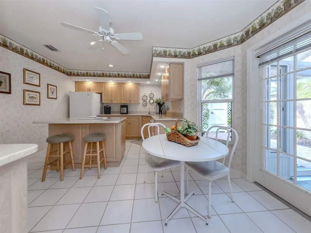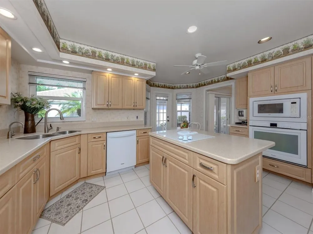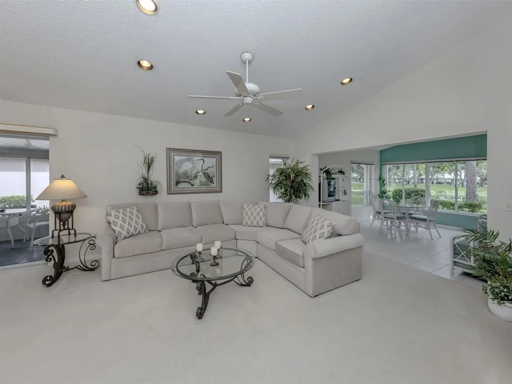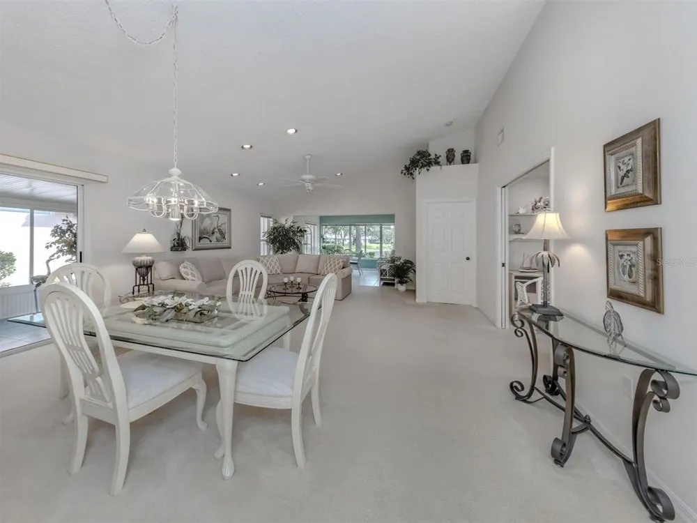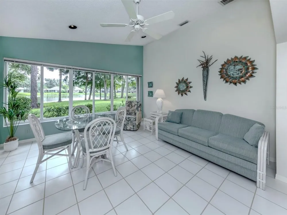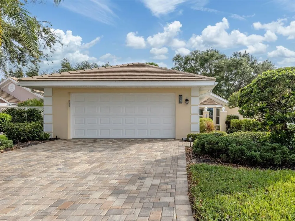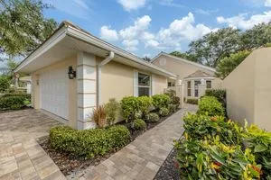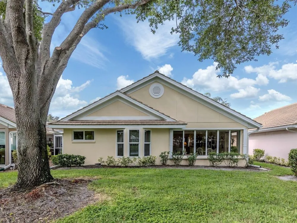 Location, Location, Location! Clubside at the Plantation is a GATED, MAINTENANCE FREE community, adjacent to the Plantation Golf and Country Club in Venice, Florida. This immaculate WATER VIEW home offers 2 bedrooms and a den or optional 3rd bedroom, plus a Florida room, side lanai, outdoor cooking area and a 2 car attached garage. It is in the best location in Clubside with the front facing south for maximum natural light, and a beautiful center view of the large pond and fountain from the great room and Florida room. The straight pavered driveway has been widened 3 feet to improve vehicle access. A pretty pavered walkway and entrance welcome you inside. The bright open floor plan with a great room, air conditioned Florida room, and covered enclosed or screened side lanai offer many options for larger gatherings or peaceful sitting areas for more intimate conversation. Updated kitchen with solid surface counters, lots of cabinets with pullout drawers, Whirlpool appliances, and a water filtration system for the kitchen sink and refrigerator. The cozy kitchen nook and a breakfast bar create comfortable seating for informal occasions. The home has a gracious primary suite with double vanities, walk-in closet and built in closet, and a walk-in shower with grab bars, all with a view of the big pond! The guest bedroom is privately located with its own bathroom with a tub/shower. The den or optional 3rd bedroom provides a flexible living space to suit your needs. Many upgrades and improvements are evident as you tour this home. Roof replaced- 2017. Bow windows in each bedroom. Recessed lighting in all rooms except the guest bedroom. Ceiling fans. HURRICANE SHUTTERS and/or HURRICANE WINDOWS ON ALL OPENINGS. HURRICANE RESISTANT DOORS. Reinforced and insulated garage door. Pull down access to the attic. Comfort height toilets with bidets. Gutter guards. Coated garage floor. Screened inside door for side garage door. See through hurricane window in shower of master bath to enjoy the pond view. New A/C 2024. New washer and dryer in 2025 with extended warranty. 50 gallon water heater with 10 yr warranty. Clubside has its own join clubhouse, community pool, and regular events. If you wish to join Plantation Golf and Country Club, a variety of memberships are available. You can choose from a wide selection of events, dining venues, and activities. 2 golf courses, driving range, pickleball, tennis, bocce, fitness, junior Olympic pool, spa, and a full social calender. A perfect opportunity to make lifr long friends! A perfect location with Florida Gulf beaches, historic Downtown Venice, Downtown Wellen Park, Cool Today Stadium, limitless restaurants, shopping, services, events, and recreation all nearby!