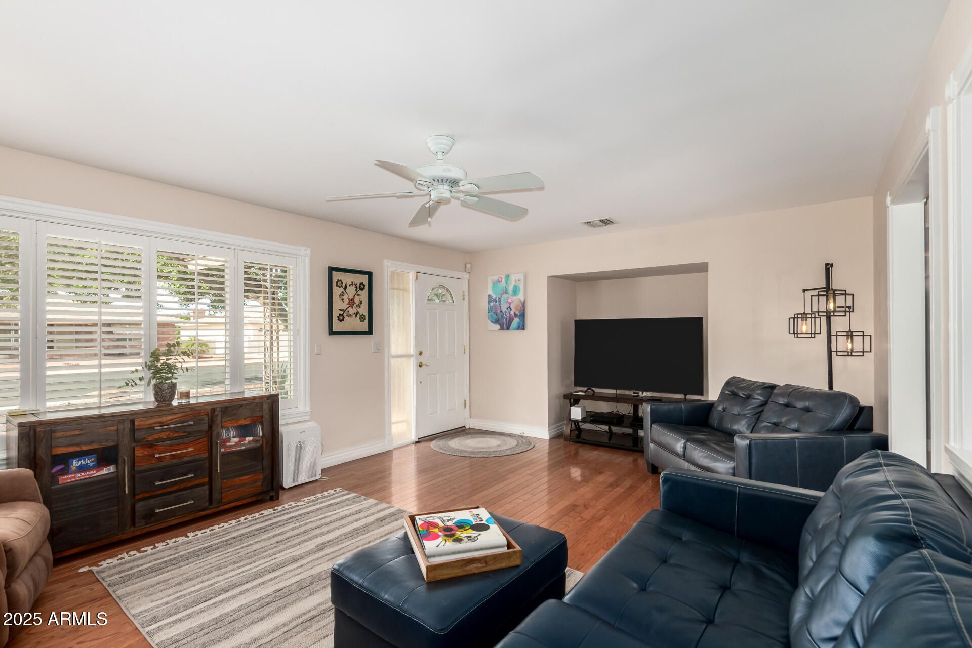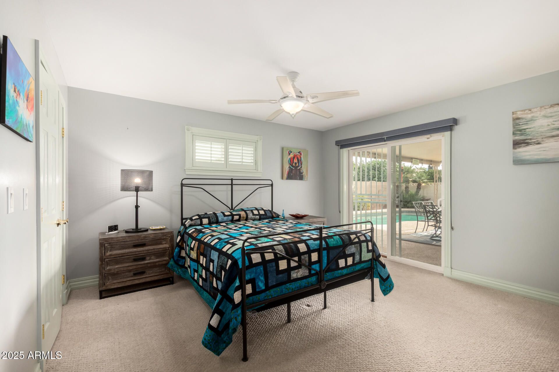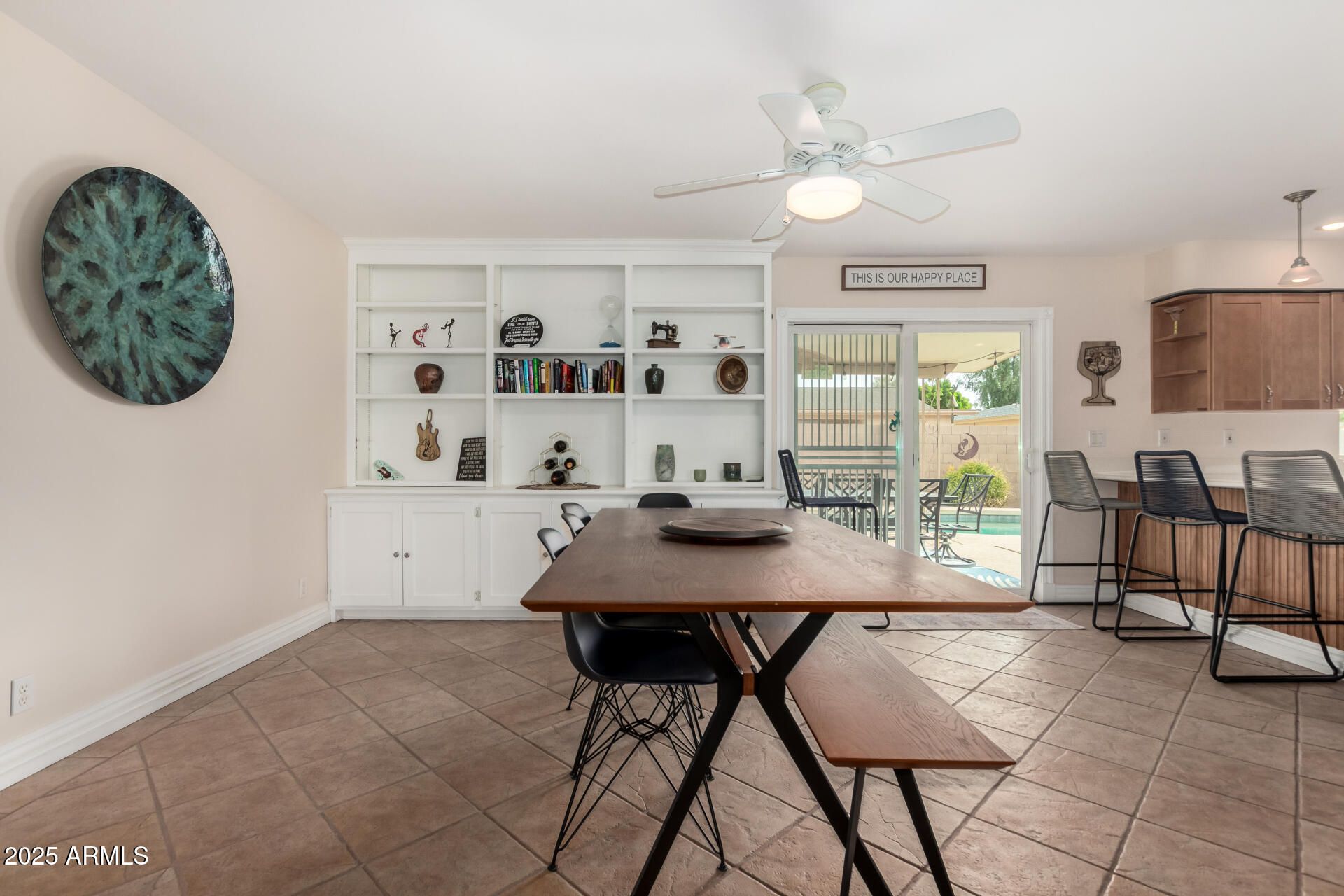 Welcome to this adorable 2-bedroom fully furnished home that beautifully combines comfort and style with a heated pool! Discover an inviting living room filled with abundant natural light. Neutral tone, plantation shutters, ceiling fans, and a tasteful blend of wood & tile flooring are worth mentioning. The kitchen displays built-in appliances, recessed lighting, abundant cabinets & cupboards, a breakfast bar, and a dining area with sliding glass doors leading to the back patio, perfect for indoor-outdoor living. Head to the sizable primary bedroom, which includes plush carpet, direct outdoor access, and a private bathroom. Relax under the covered patio or cool off in the sparkling pool, your own outdoor oasis awaits. This gem has it all! Don't miss it!